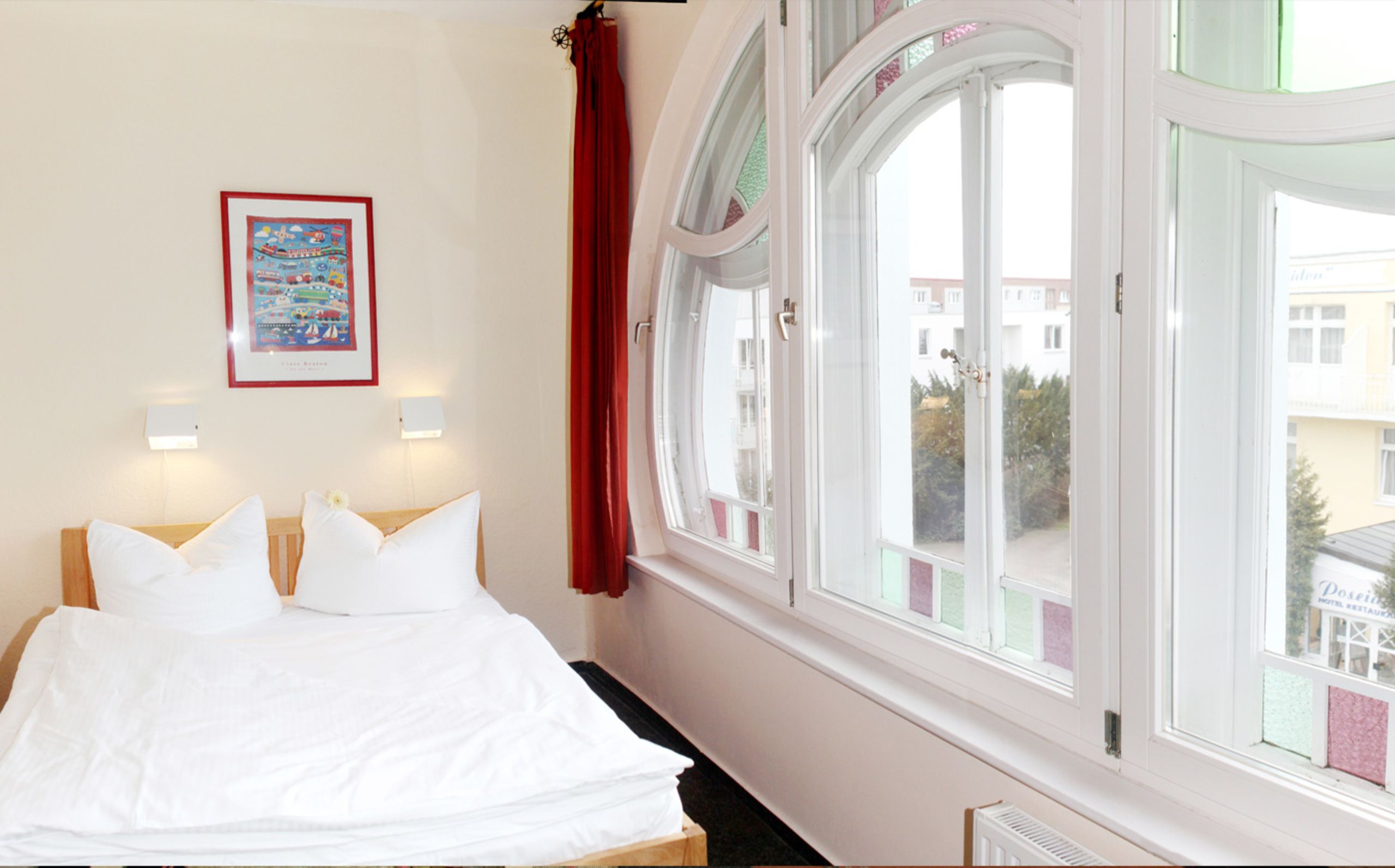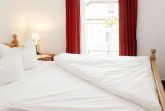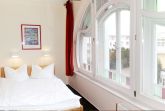 Die beiden Schlafräume sind jeweils mit einem Doppelbett ausgestattet. Ein Schlafraum hat einen kleinen Südbalkon, auf dem Sie die Sonne bis in die Abendstunden genießen können. Im zweiten Schlafzimmer ist die besondere Atmosphäre durch das große, geschwungene Jungenstilfenster geprägt.