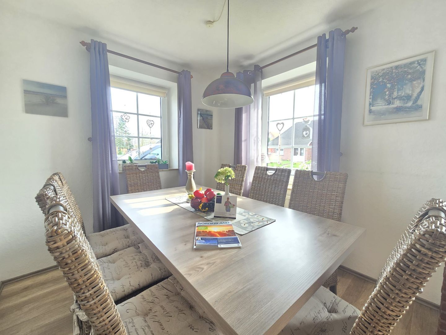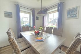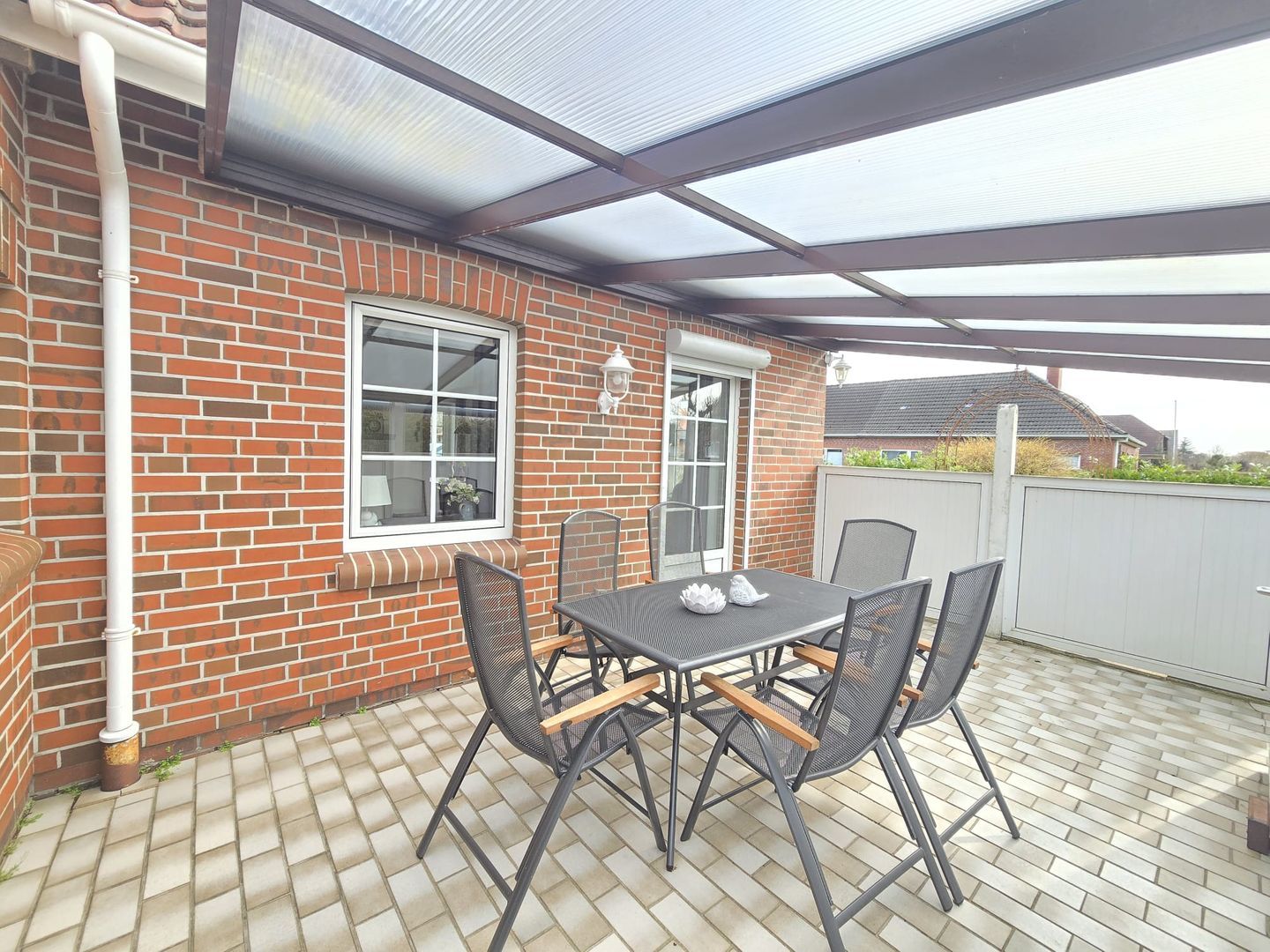 Ein Highlight ist die große, sonnige Terrasse, die mit bequemen Sitzmöbeln und einem Tisch ausgestattet ist – der perfekte Ort, um bei einer Tasse Kaffee den Tag zu beginnen oder abends bei einem Glas Wein die frische Nordseeluft zu genießen.