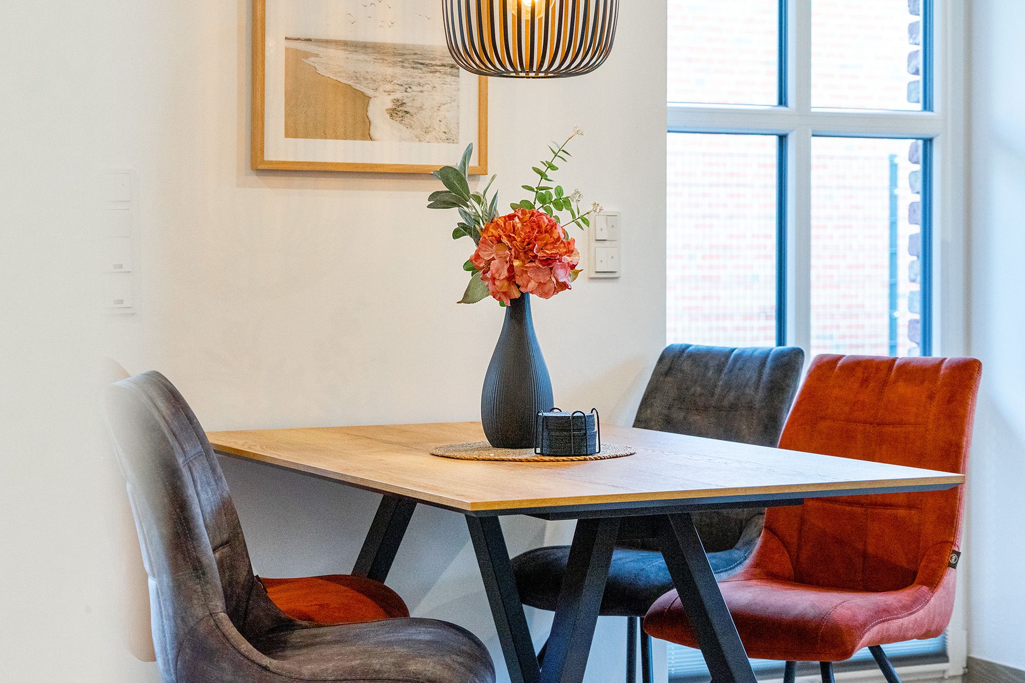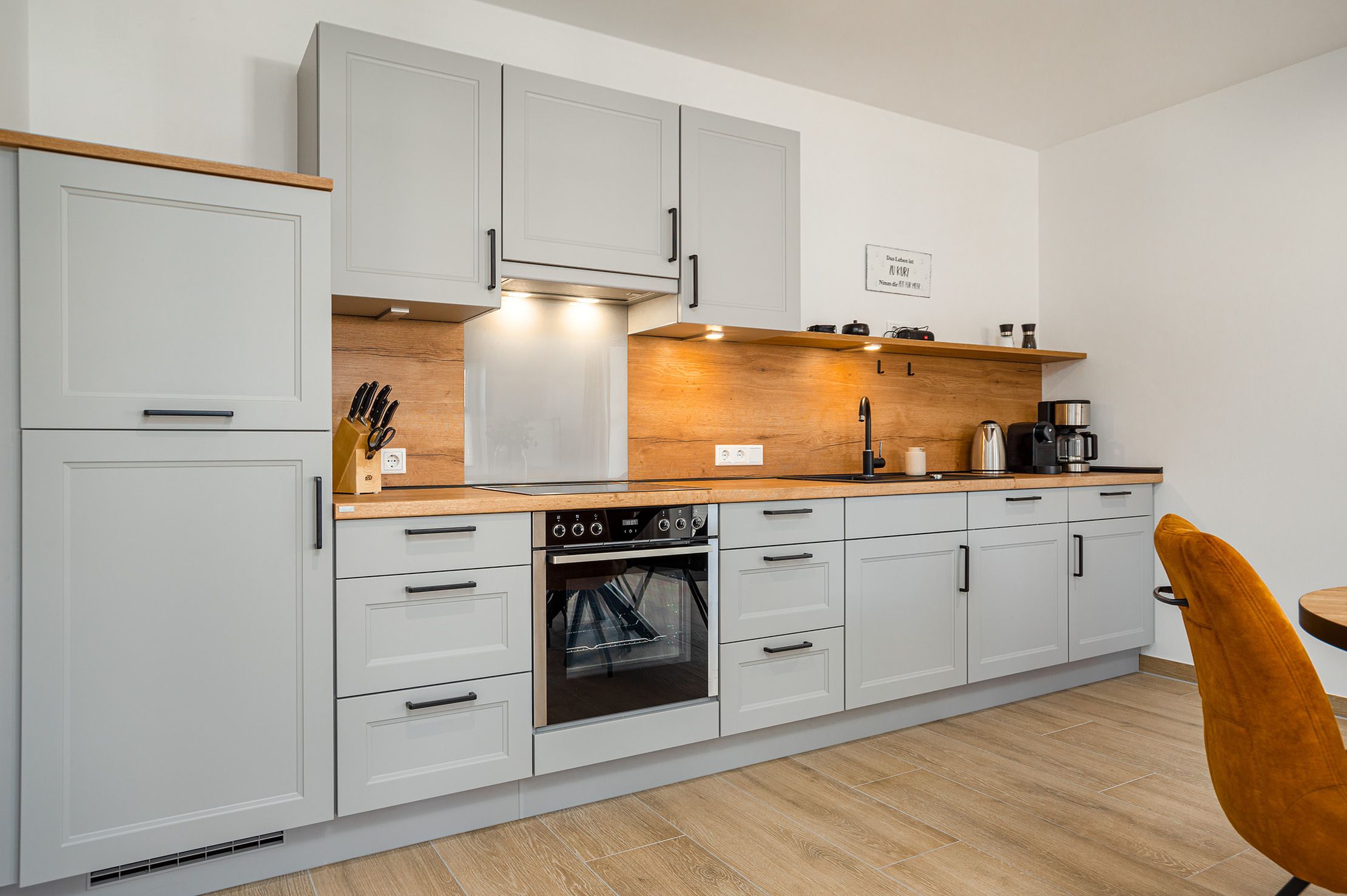 Die neue Ferienwohnung „Tjark“ bietet auf 70qm Wohnfläche im Erdgeschoss modernen Komfort und viel Platz für einen erholsamen Urlaub. Durch die durchdachte Raumaufteilung ist sie ideal für Paare, Familien oder Freunde. Die Wohnung verfügt über zwei gemütliche und geräumige Schlafzimmer mit Doppelbetten, die für erholsame Nächte sorgen. Mittelpunkt der Wohnung ist der helle und großzügige Wohn- und Essbereich mit einer hochwertigen und voll ausgestatteten Küchenzeile, einem großen Esstisch und einem bequemen Sofa für gesellige Stunden. Von hier aus gelangen Sie direkt auf die Terrasse mit angrenzendem Garten, wo Sie entspannte Stunden im Freien genießen können. Das moderne Tageslichtbad ist mit einer ebenerdigen Dusche ausgestattet. Ein separater Abstellraum innerhalb der Wohnung bietet praktischen Stauraum während Ihres Aufenthalts sowie eine Waschmaschine. Auch im Außenbereich ist alles auf einen entspannten Urlaub ausgerichtet: neben dem Garten mit Terrasse steht für Fahrräder ein abschließbarer Abstellraum zur Verfügung und ein reservierter Parkplatz direkt am Haus gehört ebenfalls zur Ferienwohnung. Dank der ruhigen und zugleich günstigen Lage ist die Ferienwohnung „Tjark“ ein idealer Ausgangspunkt für Ausflüge in die Umgebung und besonders für Familien ideal, da sich Attraktionen wie z.B. der Abenteuerspielplatz nur wenige Schritte entfernt befinden. Die Ferienwohnung „Tjark“ verbindet somit modernes Wohnen, komfortable Ausstattung und eine attraktive Lage – perfekt für einen erholsamen Urlaub.