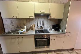 Helle, gemütliche Ferienwohnung für 2 - 4 Personen (1 Schlafraum mit Doppel- und Etagenbett), modernem Bad und einem freundlichen Wohn-Essbereich. Die gut ausgestattete Küche bietet zwei Kochplatten, einen kleinen Backofen, eine Senseo-Kaffeemaschine und einen Kühlschrank mit Gefrierfach. Eine eigene Terrasse lädt zum Entspannen ein - ideal für Paare, Familien und alle, die eine komfortable Unterkunft mit Wohlfühlatmosphäre suchen.