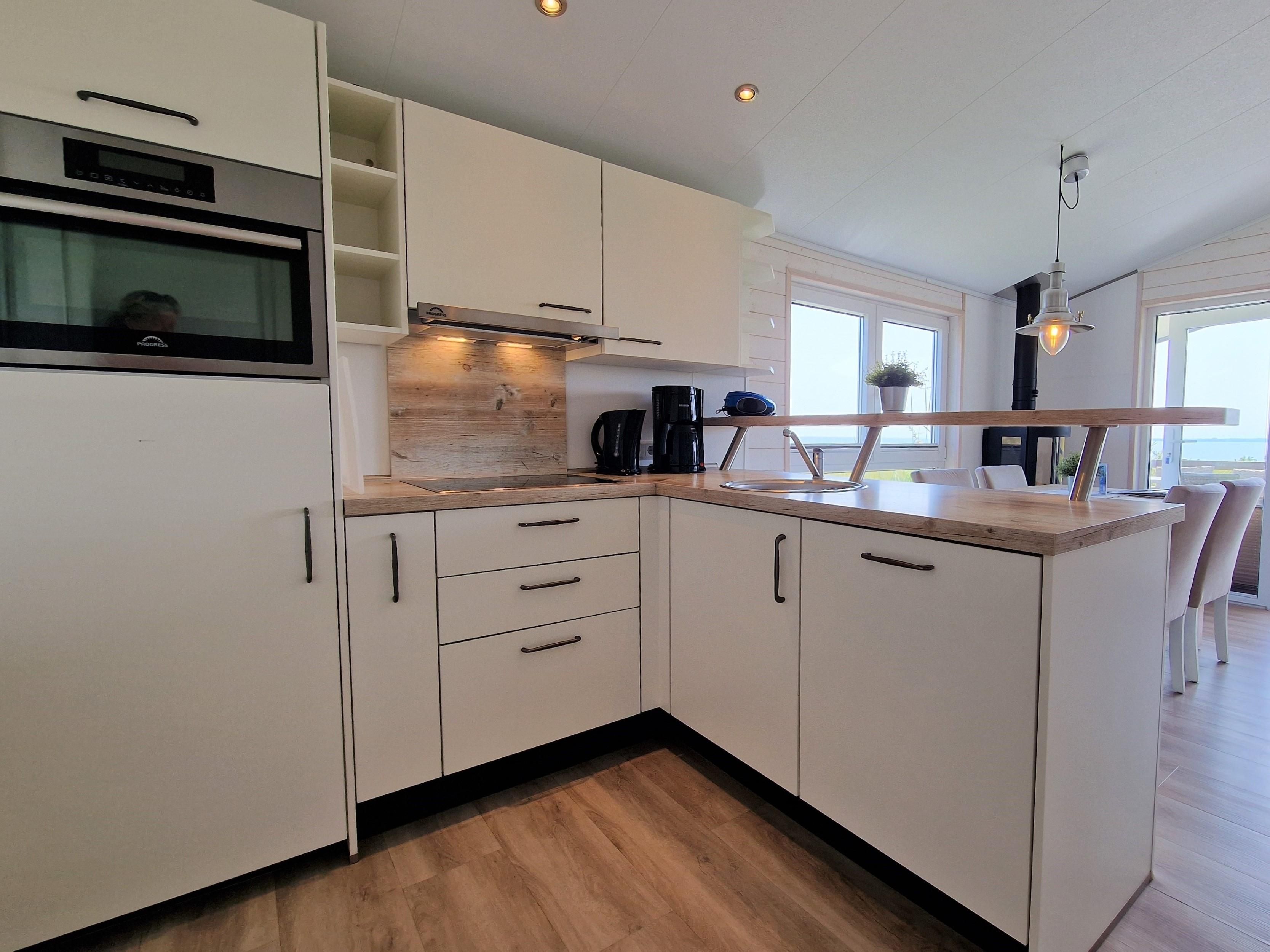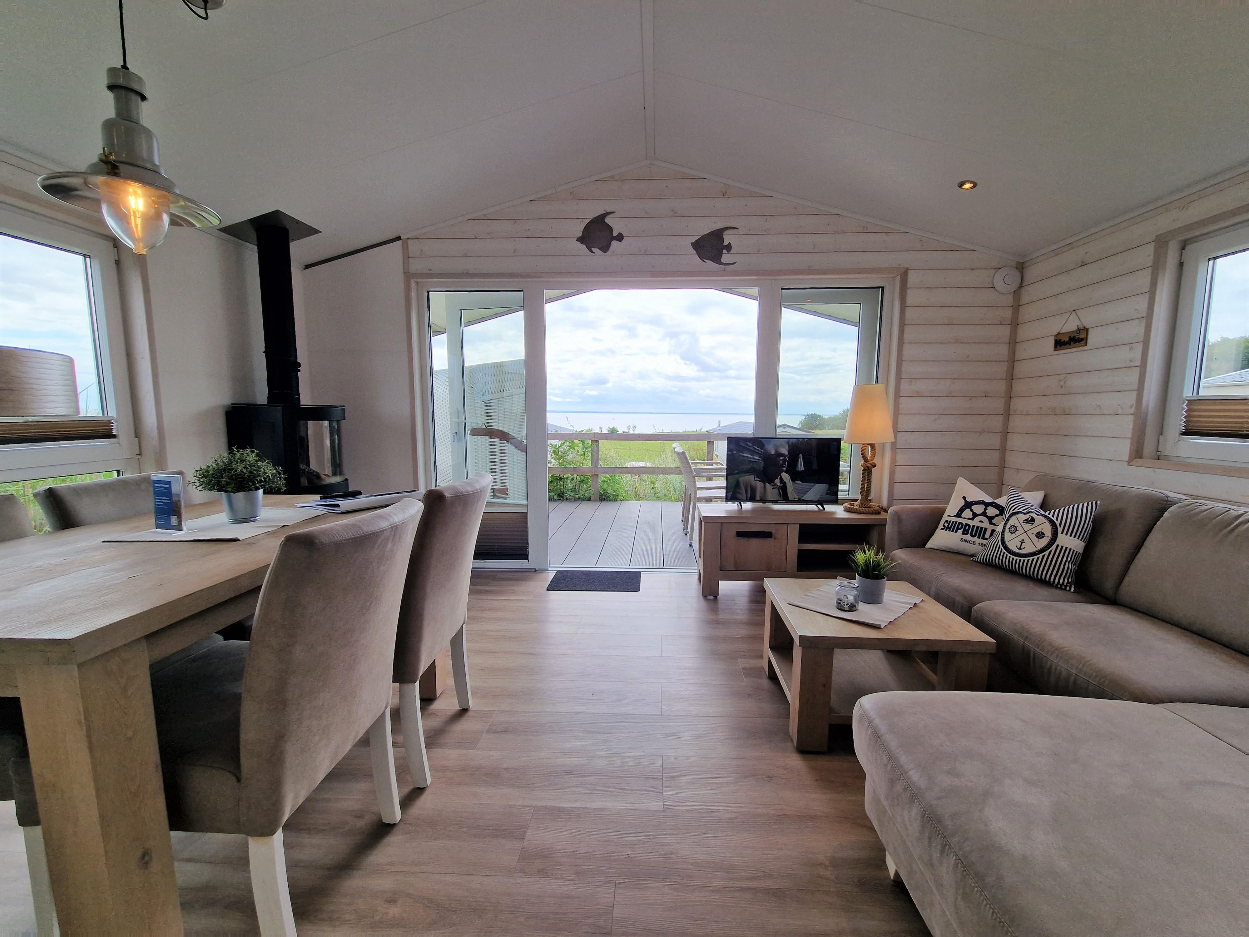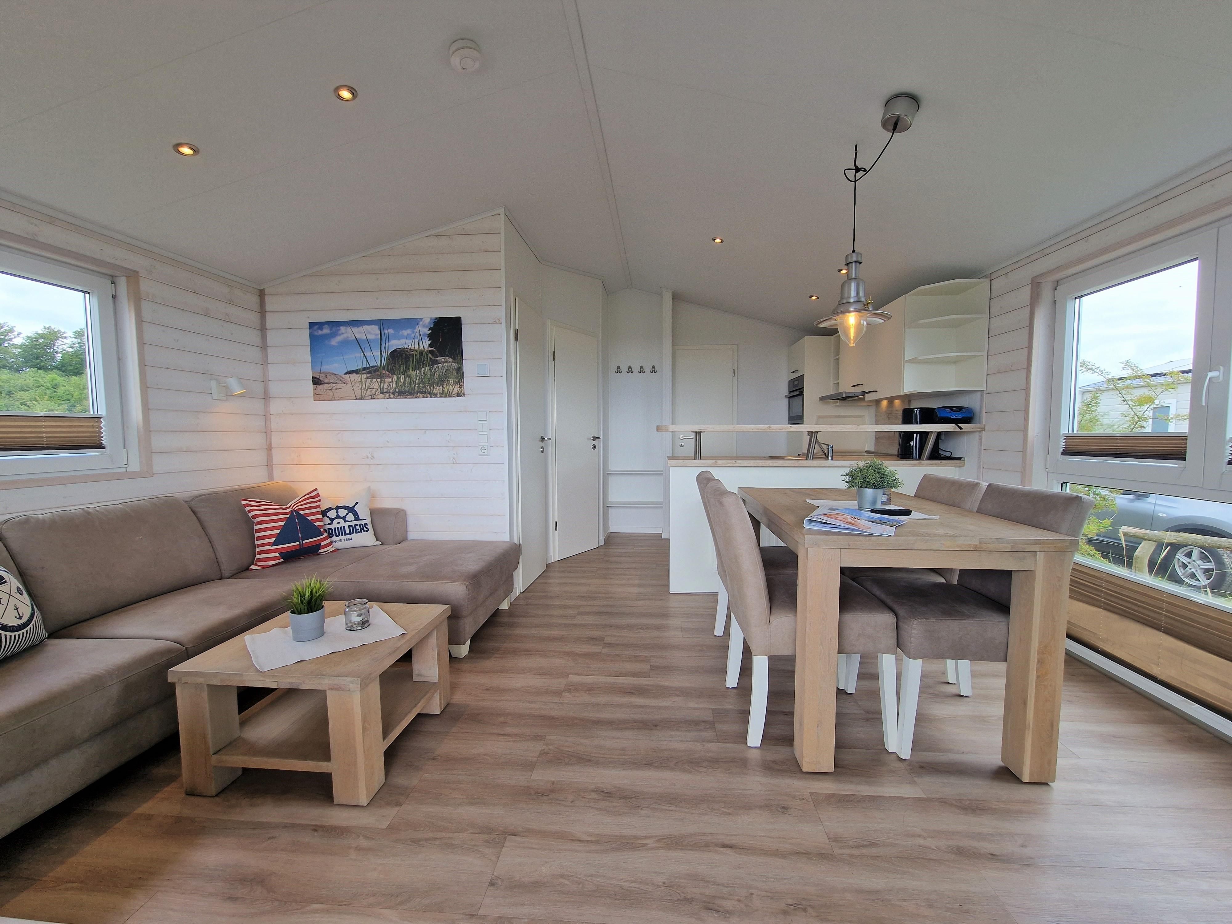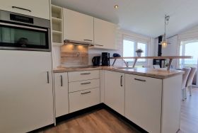 - Wohnzimmer: Gaskamin, Esstisch, Sofaecke mit Schlaffunktion (1,10 m für max. 1 weitere Person), TV Küche: großer Kühlschrank mit Gefrierfach, Backofen, teilweise mit Mikrowellenfunktion, Geschirrspülmaschine, Toaster, Wasserkocher, Filterkaffeemaschine, Ess-/Kochgeschirr Schlafzimmer 1: 1 Doppelboxspringbett (2 x 80x200 cm) mit Bettdecken und Kopfkissen, TV