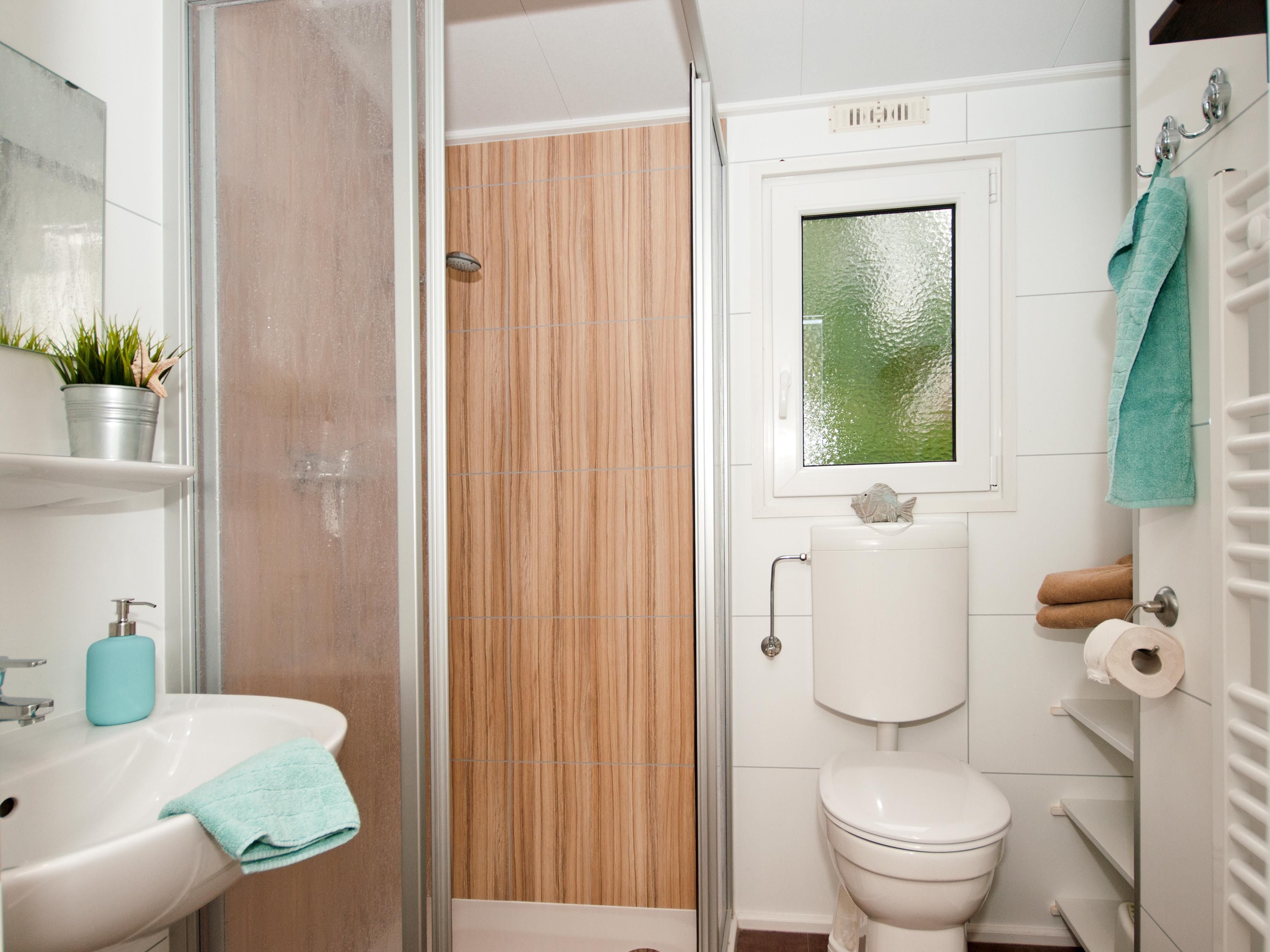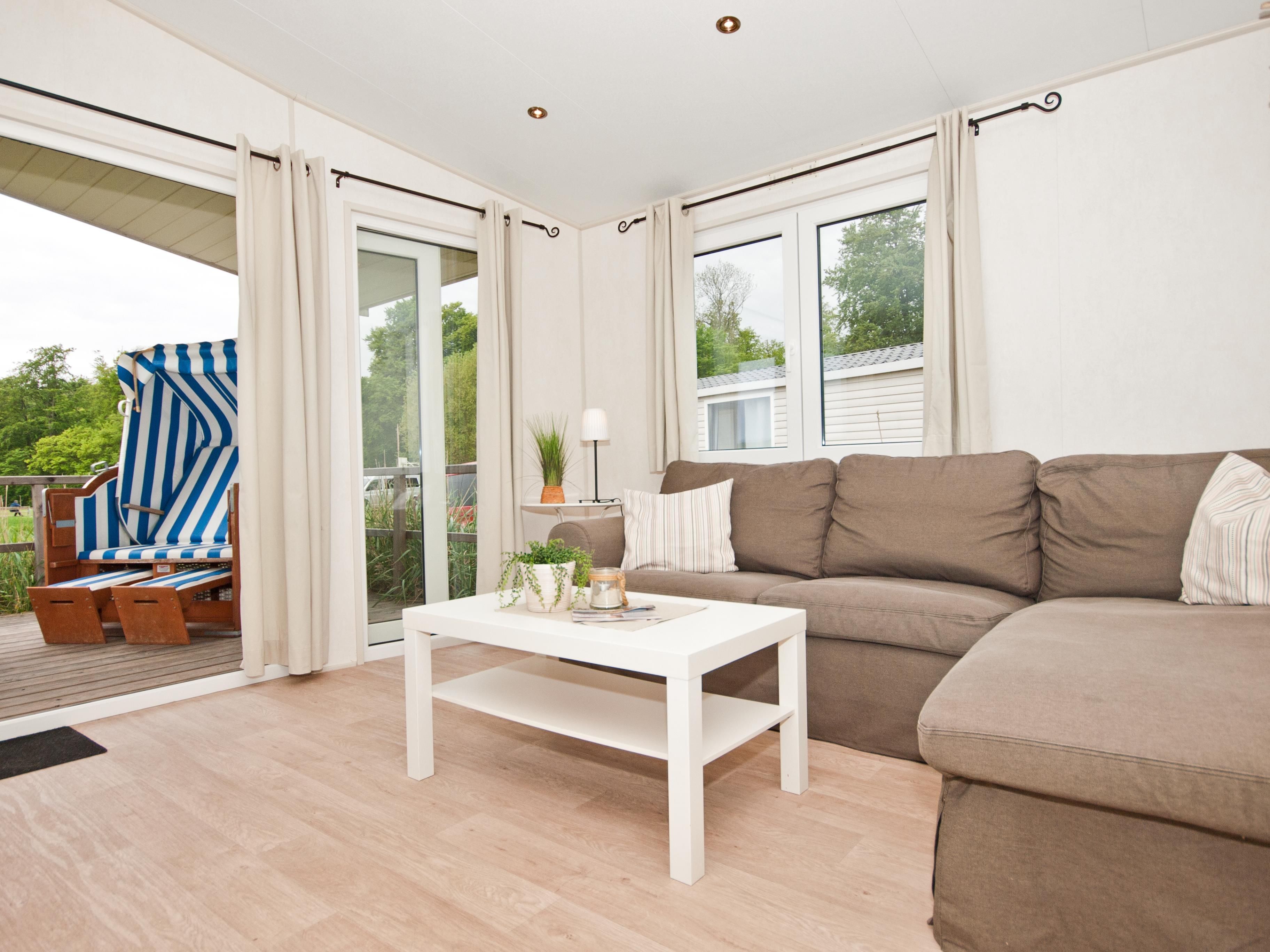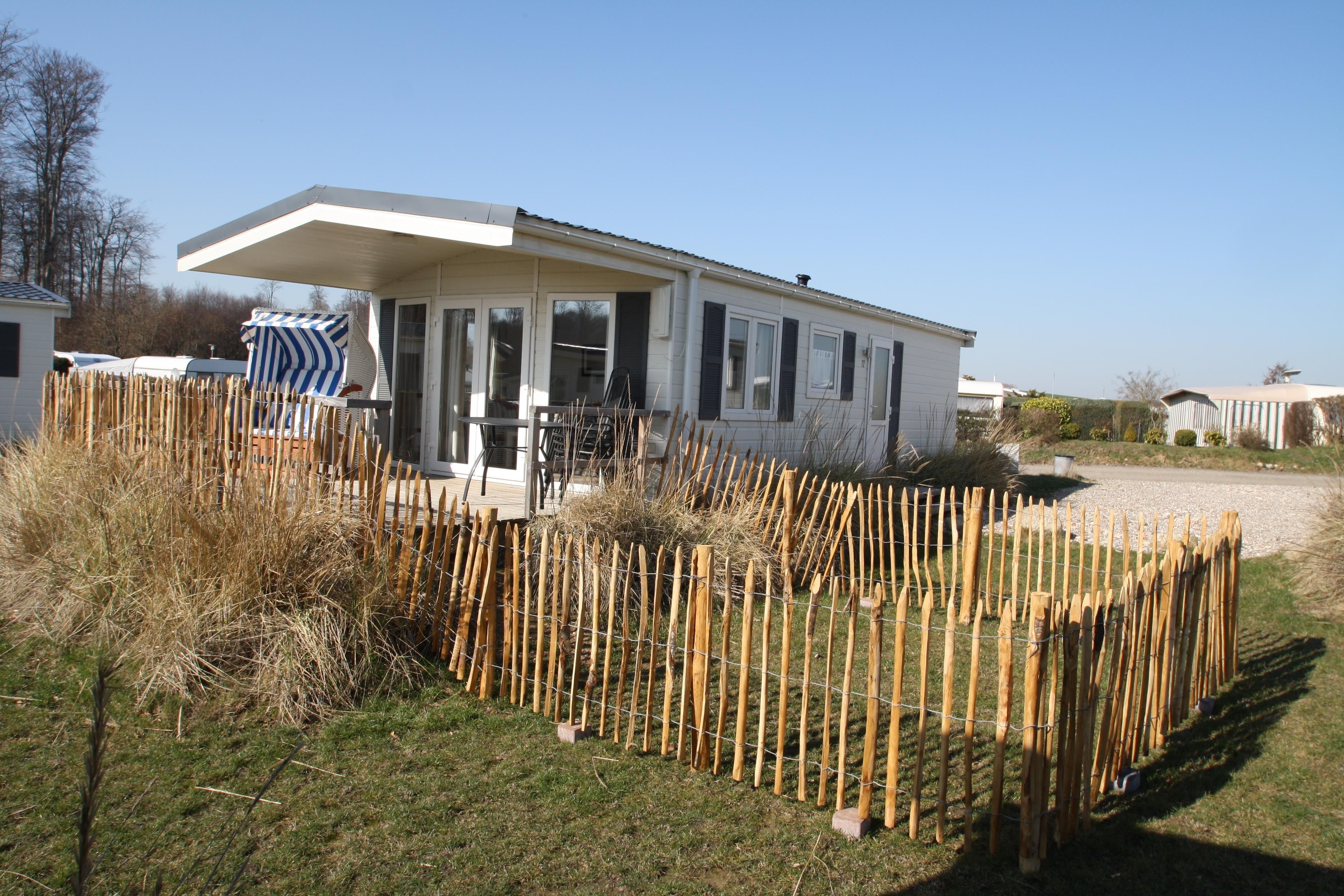 - Bad: Dusche, Waschbecken, Spiegel, WC Terrasse: teilweise Teilüberdachung, Gartenmöbel, Strandkorb. Kein Sonnenschirm vorhanden!