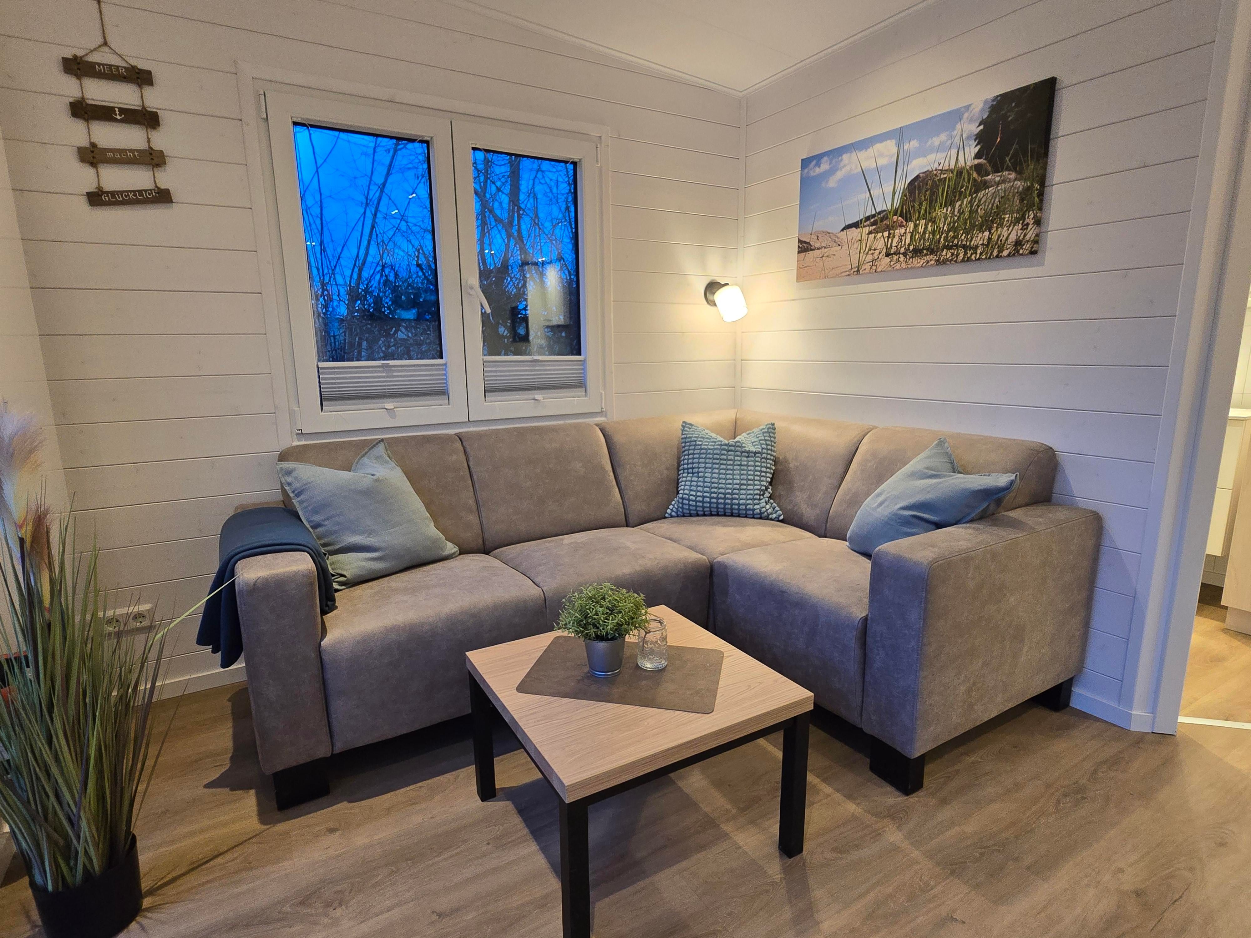 - Wohnbereich: Gaskamin, Esstisch, gemütliche Sofaecke, TV;
