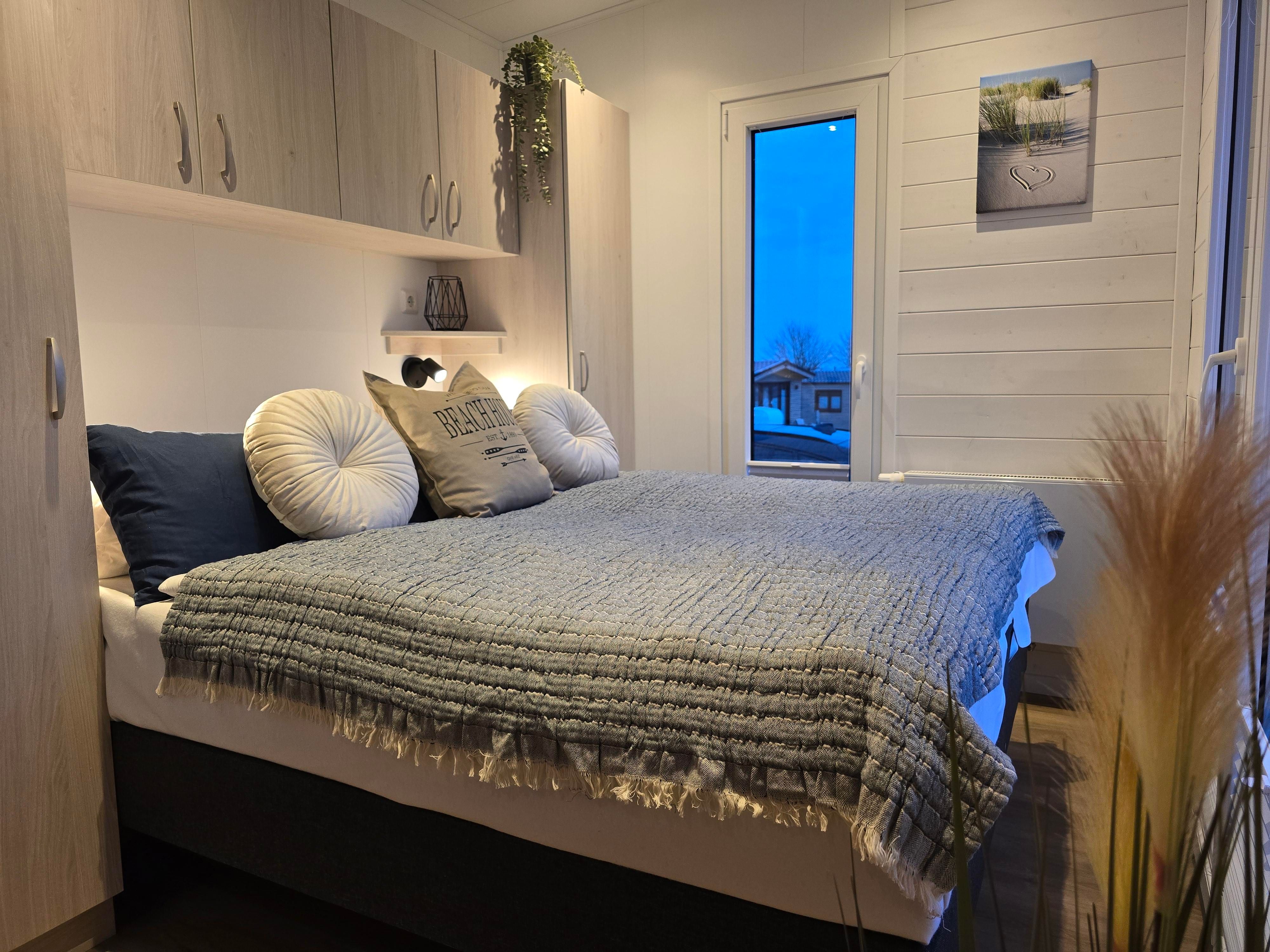- Schlafbereich: 1 Doppelboxspringbett (2 x 80x200 cm) mit Bettdecken und Kopfkissen, TV