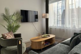 - Wohnbereich mit gemütlicher Sitzecke und TV