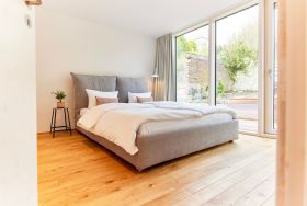 Auch die moderne Design-Küche ist ein echter Gewinn für Hobbyköche. Ausgestattet mit hochwertigen Markengeräten bietet sie alles, was man braucht, um leckere Gerichte zuzubereiten, während der Blick über das Wasser und die vorbeiziehenden Schiffe schweift. Für die Erfrischung nach einem Tag an der See sorgt das hell gestaltete Badezimmer mit einer ebenerdigen Dusche .