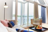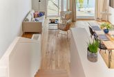 Auch die moderne Design-Küche ist ein echter Gewinn für Hobbyköche. Ausgestattet mit hochwertigen Markengeräten bietet sie alles, was man braucht, um leckere Gerichte zuzubereiten, während der Blick über das Wasser und die vorbeiziehenden Schiffe schweift. Für die Erfrischung nach einem Tag an der See sorgt das hell gestaltete Badezimmer mit einer ebenerdigen Dusche .