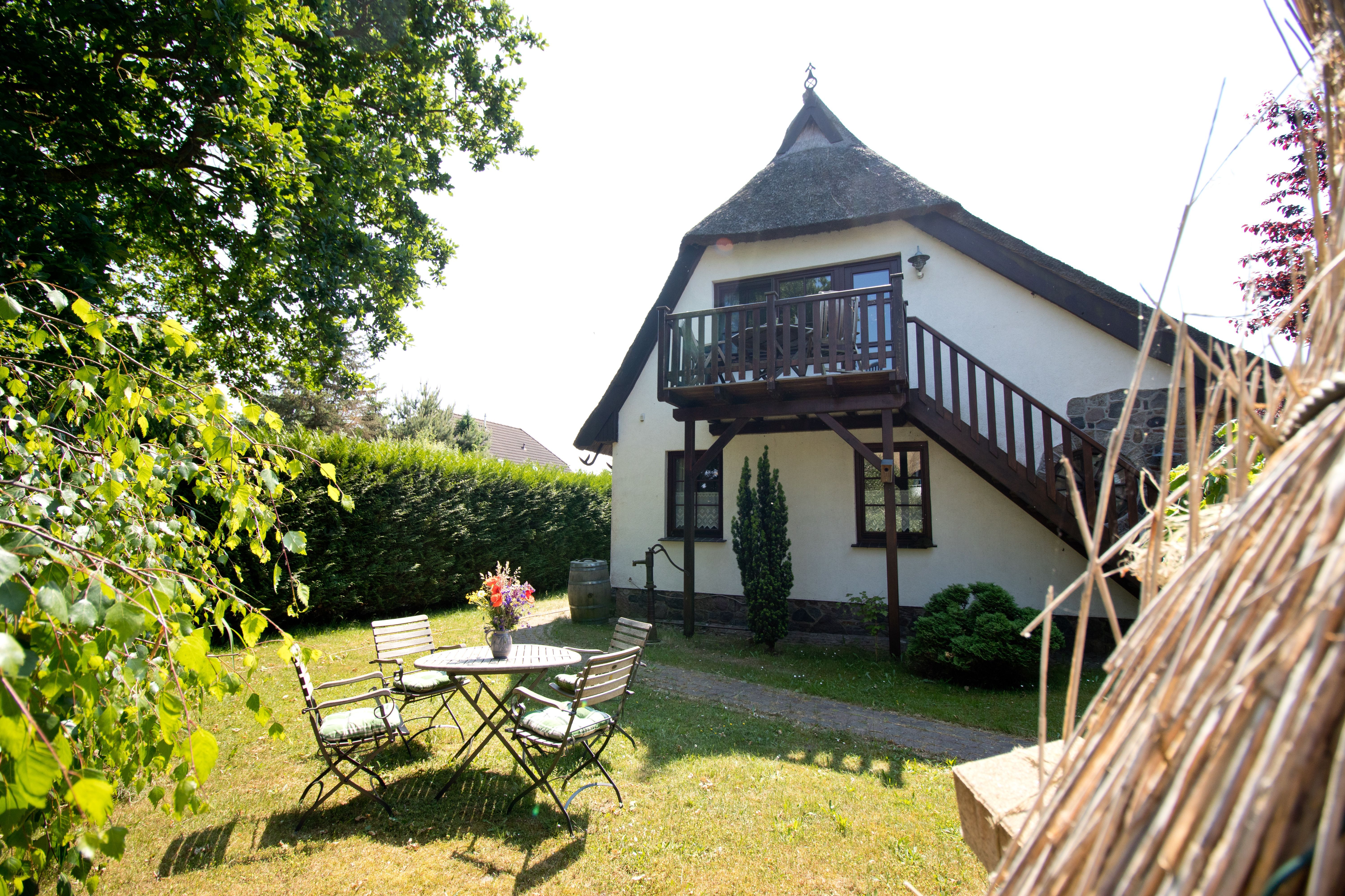 Zur Wohnung gehört ein Balkon mit Sitzmöbeln. Zusätzlich steht den Gästen im Garten eine separate, ruhige Sitzecke mit Holzkohlegrill zur Verfügung.
