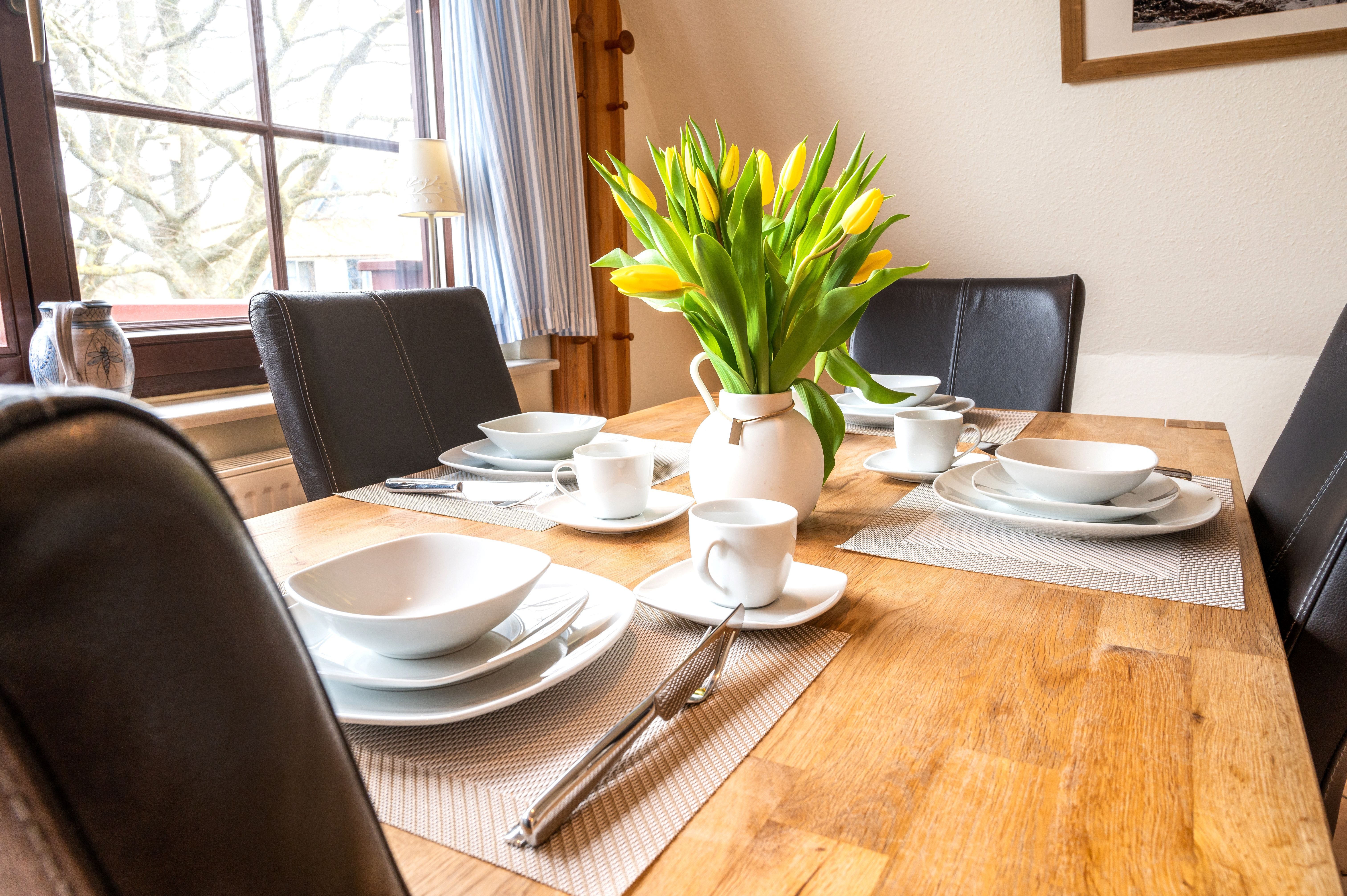 Zur weiteren Ausstattung gehören WLAN, Smart TV, DVD Player, Musikanlage, eine kleine Bücher und Spielesammlung sowie praktische Haushaltsgeräte wie Wäscheständer, Staubsauger und Reinigungsutensilien. Bettwäsche, Handtücher und Geschirrtücher sind ebenfalls vorhanden. Ein eigener Parkplatz am Haus sowie ein Stellplatz für Fahrräder im Carport stehen kostenfrei zur Verfügung.