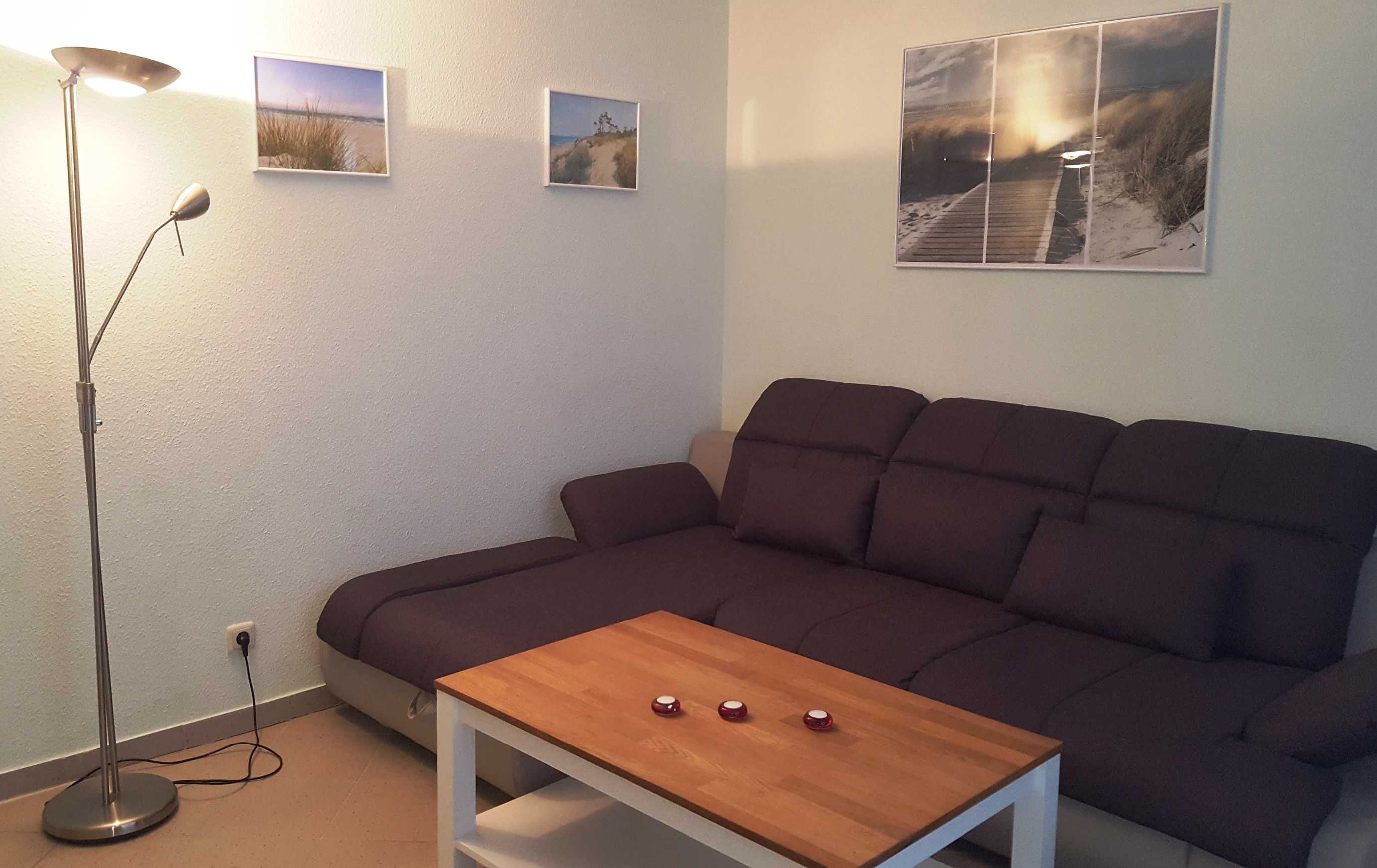 - Wohnraum mit Schlafcouch und intergrierter Küche