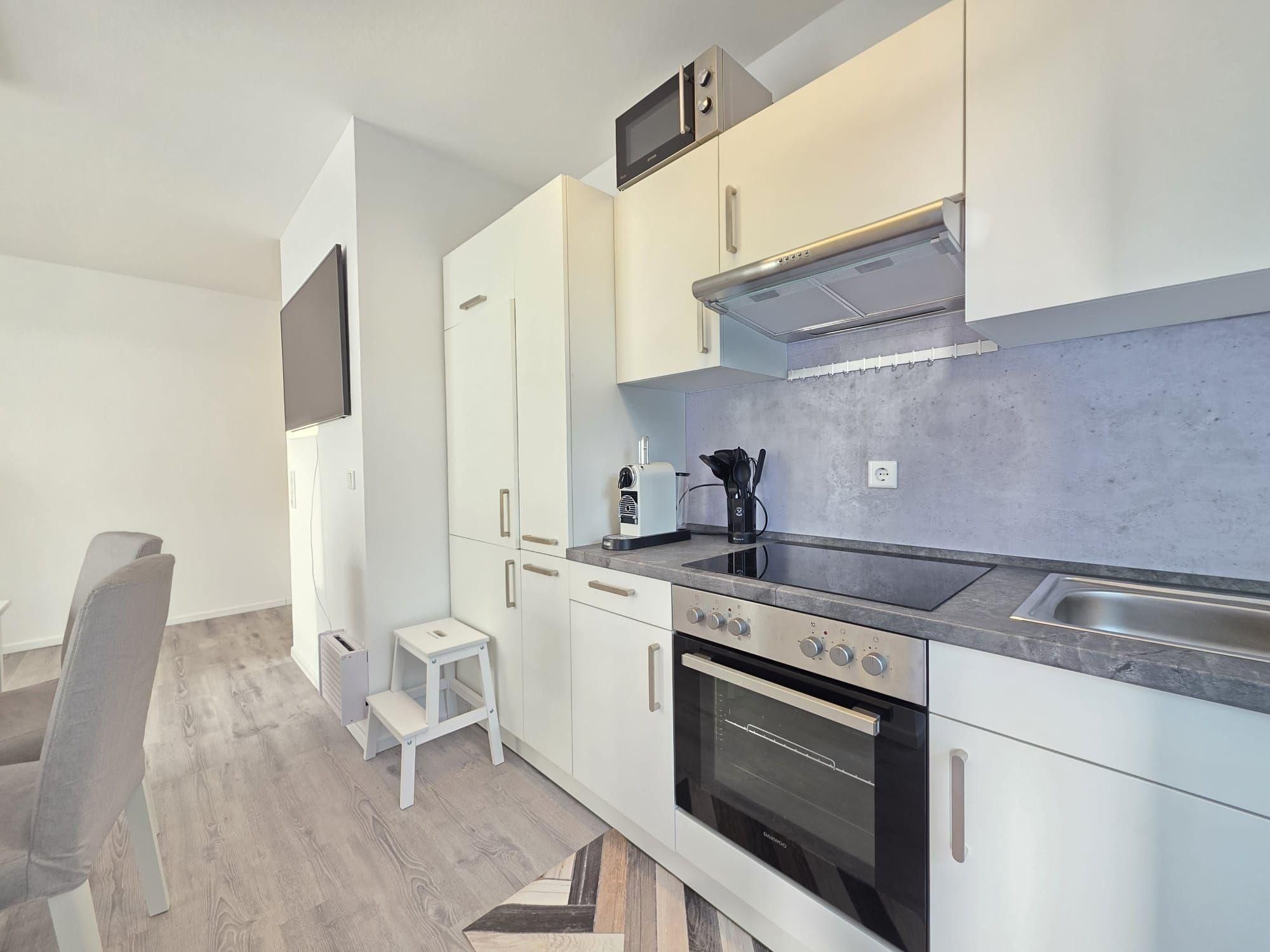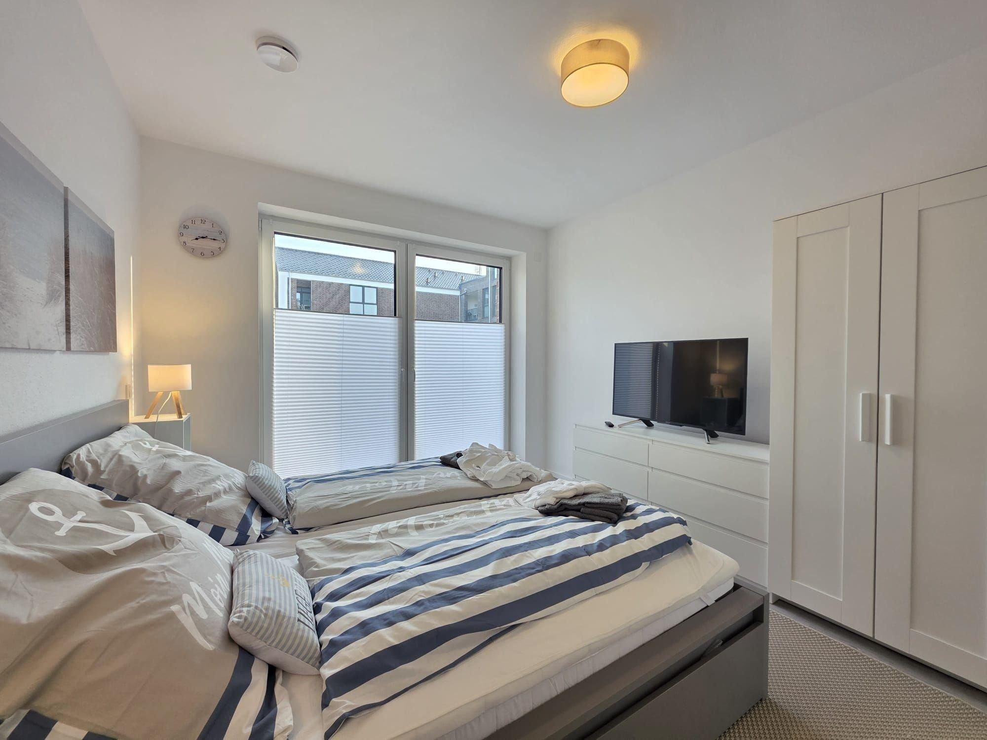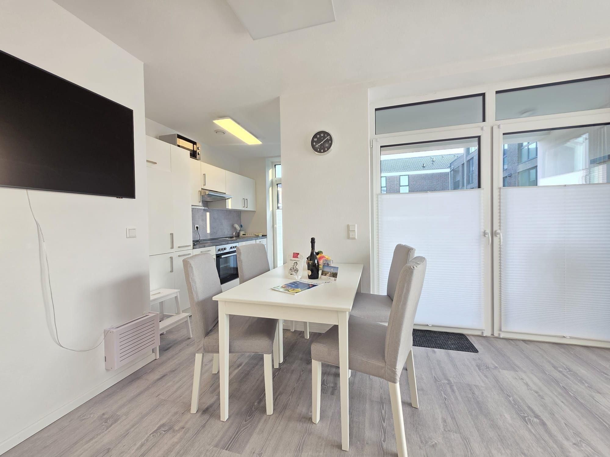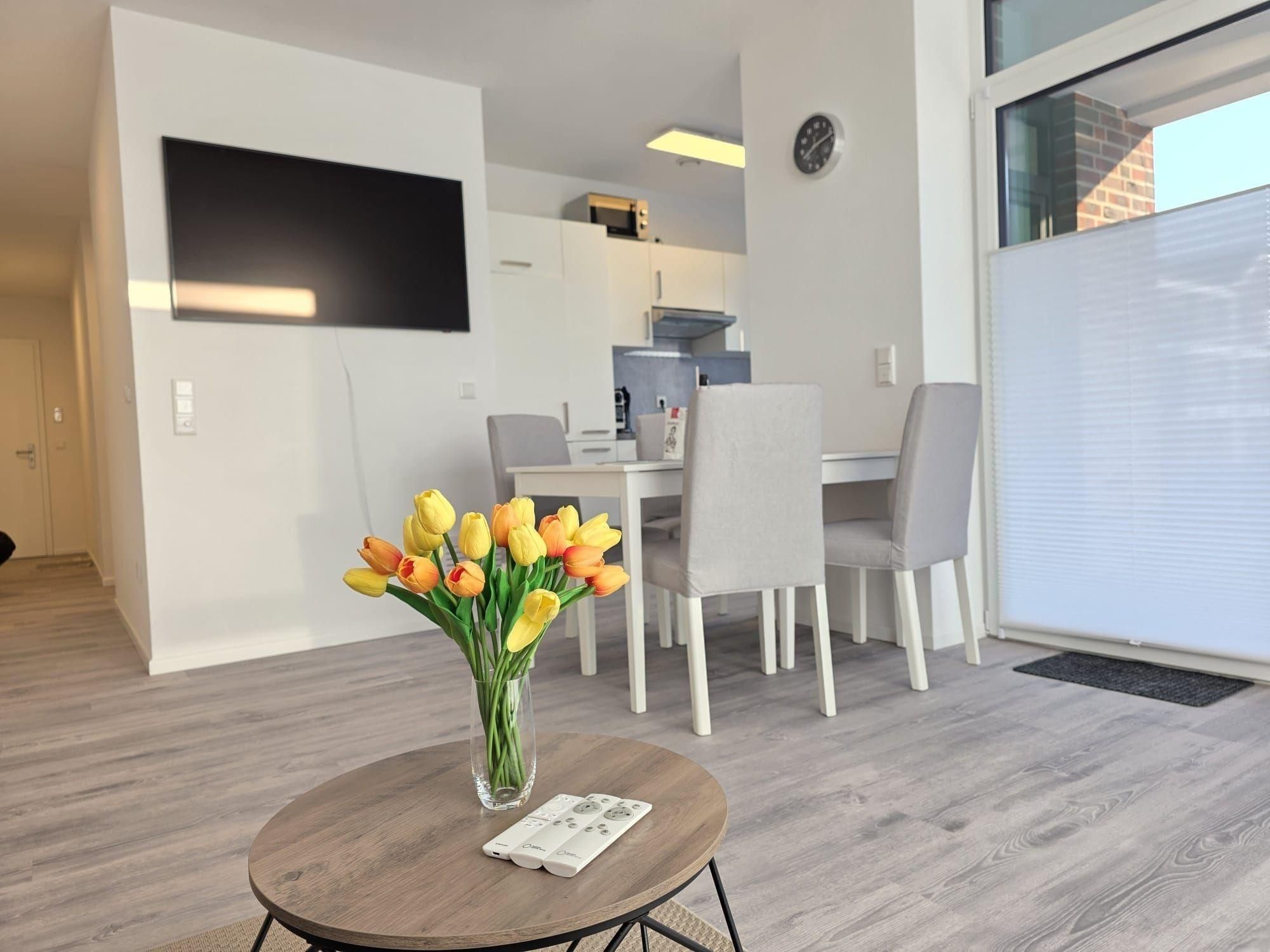 Die Ferienwohnung NordTroll ist eine moderne, stilvoll eingerichtete Erdgeschosswohnung in Norden, die 2025 fertiggestellt wurde. Mit 80 m² Wohnfläche bietet sie viel Platz zum Entspannen. Das Schlafzimmer verfügt über ein komfortables Bett (180 x 200 cm) und einen Flachbild-TV sowie direkten Zugang zur großen Terrasse. Das großzügige Badezimmer ist mit einer modernen, begehbaren Dusche ausgestattet und sorgt für ausreichend Tageslicht.