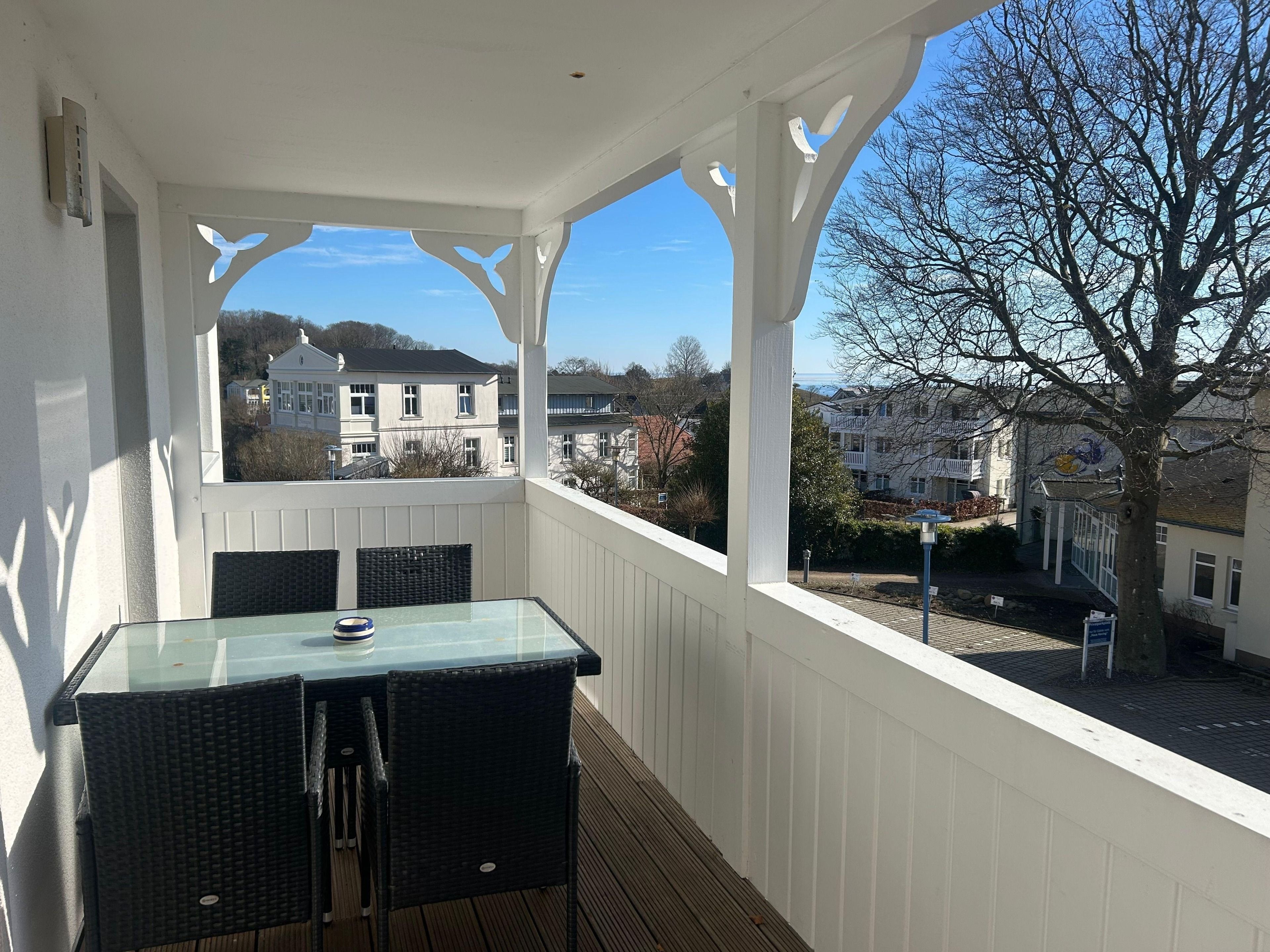 Die Ferienwohnung mit tollem Teil-Meerblick liegt ruhig und dennoch zentral in Göhren. Das Ortszentrum, Restaurants, Cafés, die Seebrücke sowie Einkaufsmöglichkeiten wie REWE und der Bäcker Junge sind in ca. 4–6 Gehminuten erreichbar. Der kultivierte Nordstrand mit Minigolfanlage sowie der naturbelassene Südstrand mit Hundestrand liegen ebenfalls nur 4–6 Gehminuten entfernt und bieten Badevergnügen im Sommer sowie gesundheitsfördernde Spaziergänge im Frühjahr, Herbst und Winter. Die Haltestelle des berühmten Rasenden Roland erreichen Sie in wenigen Gehminuten. Die Strandpromenade lädt zu Spaziergängen mit Ostseeblick bis nach Baabe oder Sellin ein, auch die Baaber Heide ist ideal für Gassirunden. Tennisplatz und das Tennisstübchen, das La Terrazza befinden sich in der Nähe. Ausflugsziele wie Sellin (ca. 4–5 km), Binz (ca. 15 km), Karls Erlebnis-Dorf (ca. 16 km), Erlebnisbauernhof Bauer Lange in Lieschow (ca.35 km), der Golfplatz Karnitz (ca. 26 km), der Königsstuhl (ca. 28 km), die Galileo Wissenswelt Prora sowie das Ozeaneum Stralsund (ca. 60 km) sind gut erreichbare, interessante Ausflugsziele.