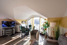 Unser sehr liebevoll und komfortabel eingerichtetes Ferienapartment Sonnenschein (42 qm, komb. Wohn-/Schlafraum, Balkon, Bad mit Dusche/WC, Küchenzeile, max. 2 Erw. und ein Kind bis 17 J.