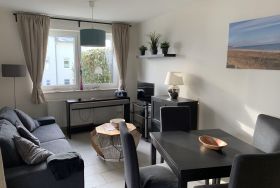 Ca. 58 qm große Ferienwohnung bis zu 5 Personen und Hunde, Ideal für Paare und Familien, die Meer und Natur genießen möchten, 3 Zimmer ,EG mit großzügigem Balkon, Parkplatz, Fahrradständer. 4–6 Gehminuten Strand