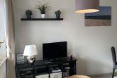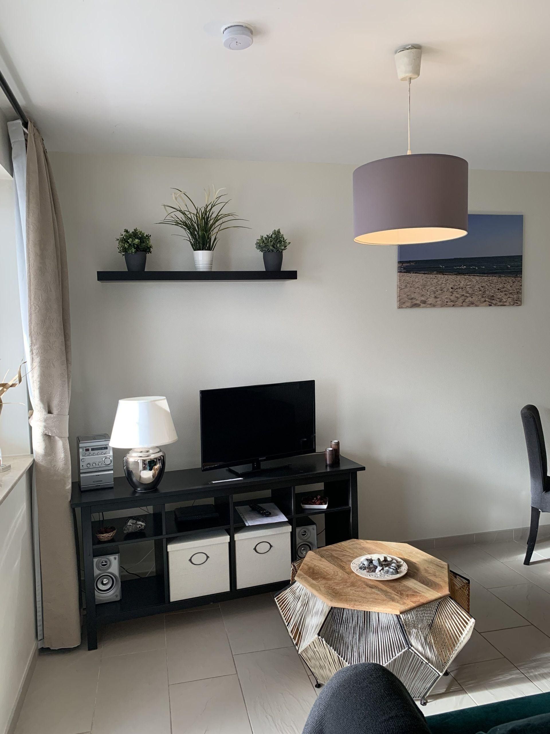 Die Wohnung ist hell, modern und hochwertig eingerichtet. Im Wohnzimmer lädt eine gemütliche Couch zum Entspannen ein – ob nach einem Strandspaziergang, einem Ausflug oder einfach für einen ruhigen Abend genießen. Am Esstisch lässt sich gemeinsam frühstücken, spielen oder der Tag entspannt ausklingen.