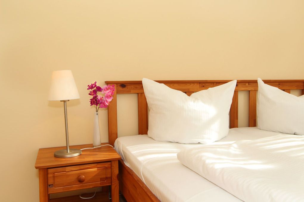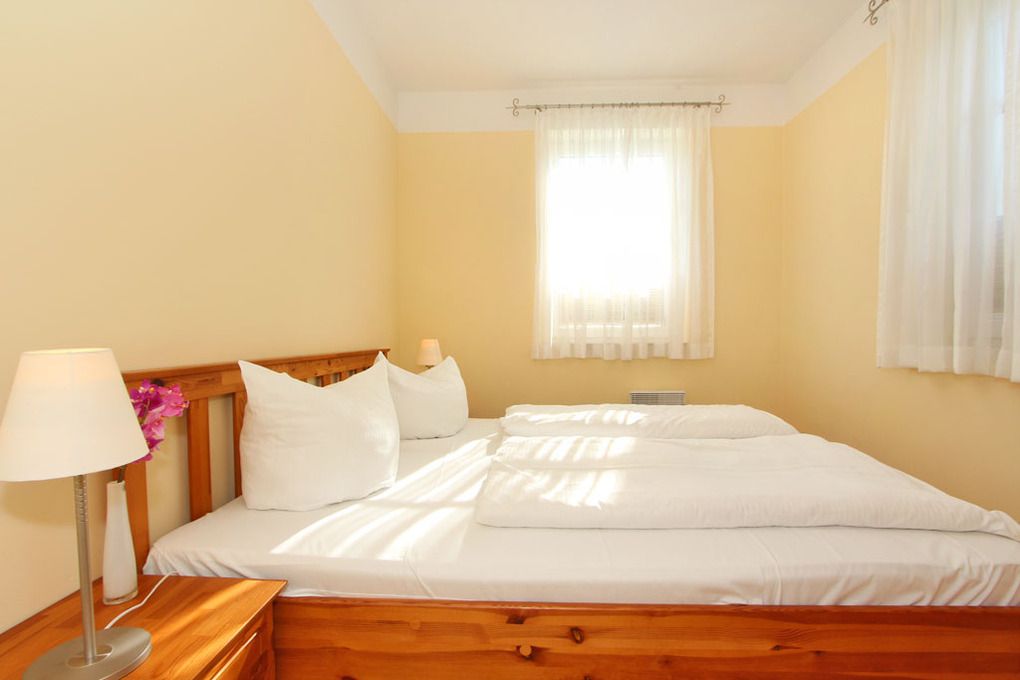 Im Schlafzimmer erwartet Sie ein gemütliches Doppelbett und ein Kleiderschrank für Ihre Garderobe.