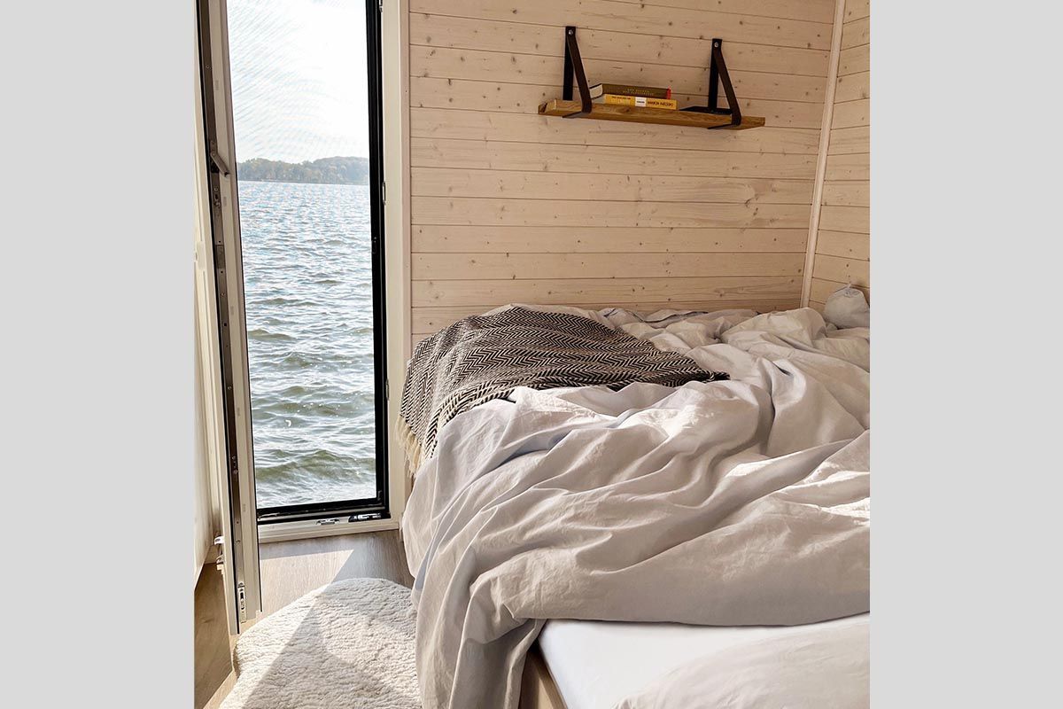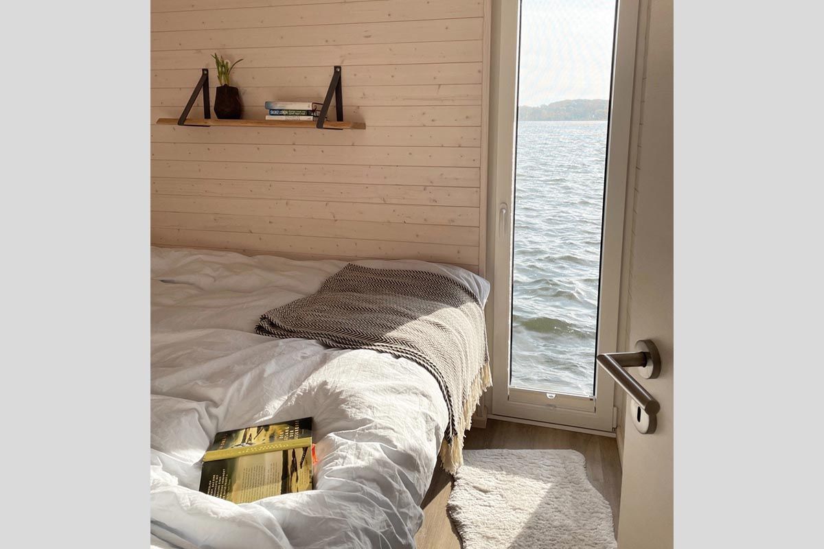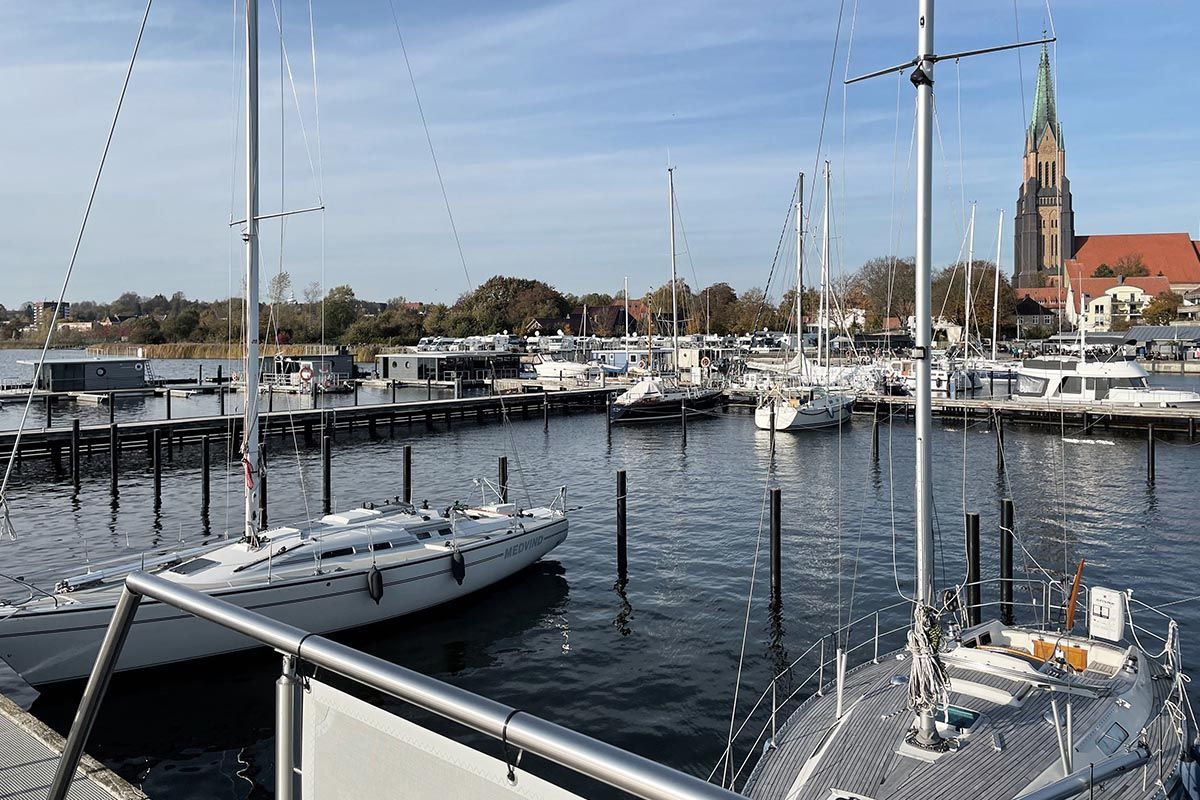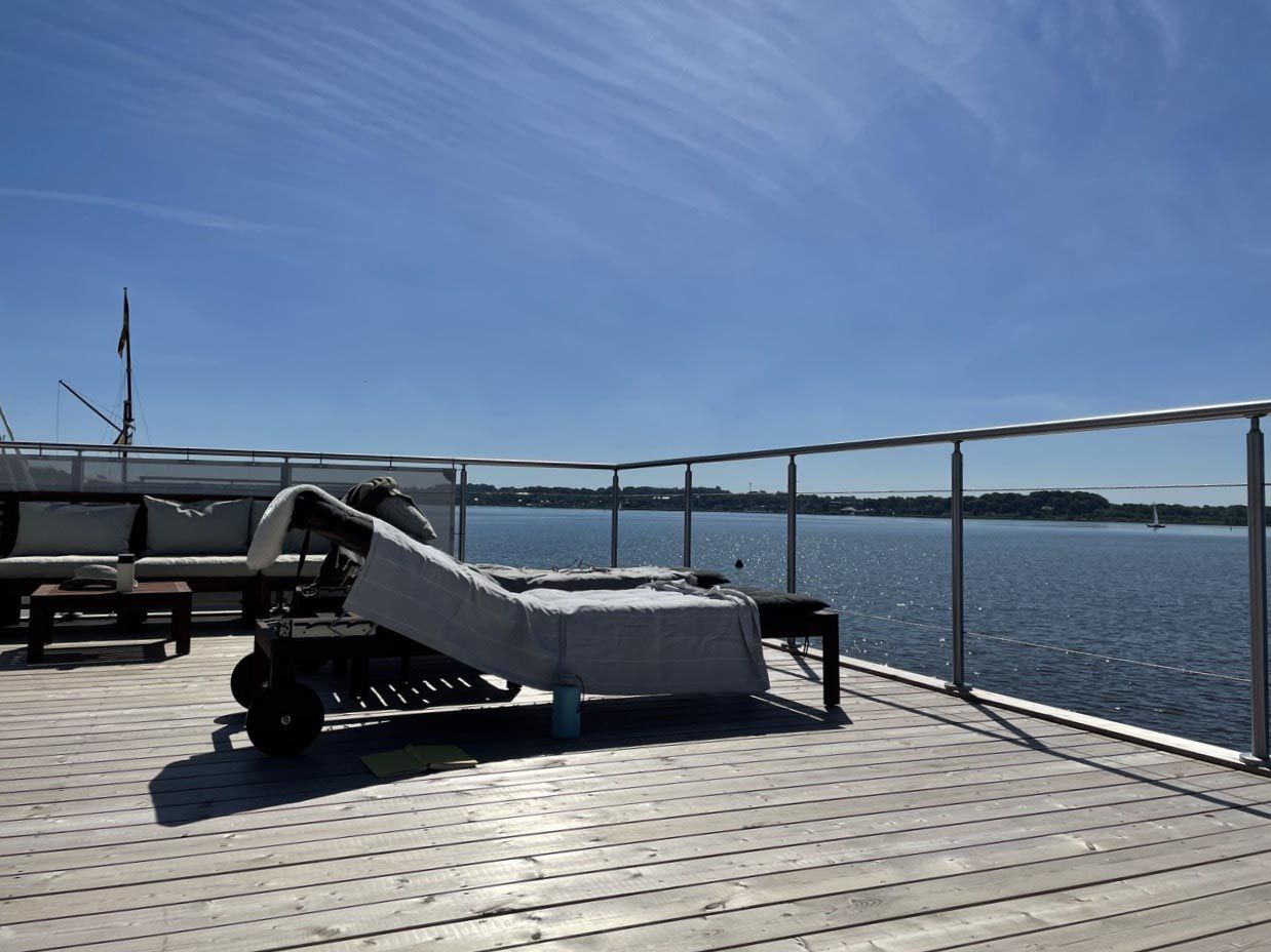 Urlaub auf dem gemütlichen Stern Hausboot bikini in der ersten Reihe auf dem Ostseefjord Schlei im Schleswiger Stadthafen bedeutet Entspannung und Erholung, Freiheit oder Abenteuer für Urlaub mit Freunden, Familien oder Paare.