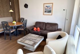 LACHMÖWE – die ca. 74 m² große Ferienwohnung bietet Platz für bis zu 4 Personen und liegt in zentraler Strandlage in Wenningstedt. Über zwei Ebenen erstreckt sich eine gemütliche, helle Inneneinrichtung. Im Erdgeschoss befindet sich der Wohnbereich samt Sofaecke, Essbereich und TV. Von dort aus erreichen Sie die Terrasse, von der Sie die untergehende Sonne mit Blick Richtung Meer genießen können. Die Morgensonne begrüßt Sie in der separaten Küche, die mit allen wichtigen Utensilien ausgestattet ist (Cerankochfeld, Mikrowelle, Geschirrspüler, Kühlschrank mit Gefrierfunktion, Elektroküchengeräten) ‒ bitte bedachten Sie, dass kein Backofen vorhanden ist. Ein Gäste-WC inkl. Waschmaschine befindet sich ebenfalls im Erdgeschoss. Über eine Treppe gelangen Sie ins Untergeschoss, welches zwei Schlafzimmer sowie ein Tageslichtbad für Sie bereithält. Das großzügige Schlafzimmer verfügt über ein 180x200 cm Doppelbett und einem geräumigen Wandschrank, der genügend Stauraum für einen Sylturlaub bietet. Das kleinere Doppelzimmer hält ein 140x200 cm Bett für Sie bereit. Das Tageslichtbad verfügt über eine Dusche, ein WC sowie ein Waschbecken. Das kostenfreie WLAN sowie ein PKW-Stellplatz runden das Angebot ab. Haustiere sind leider nicht erlaubt.