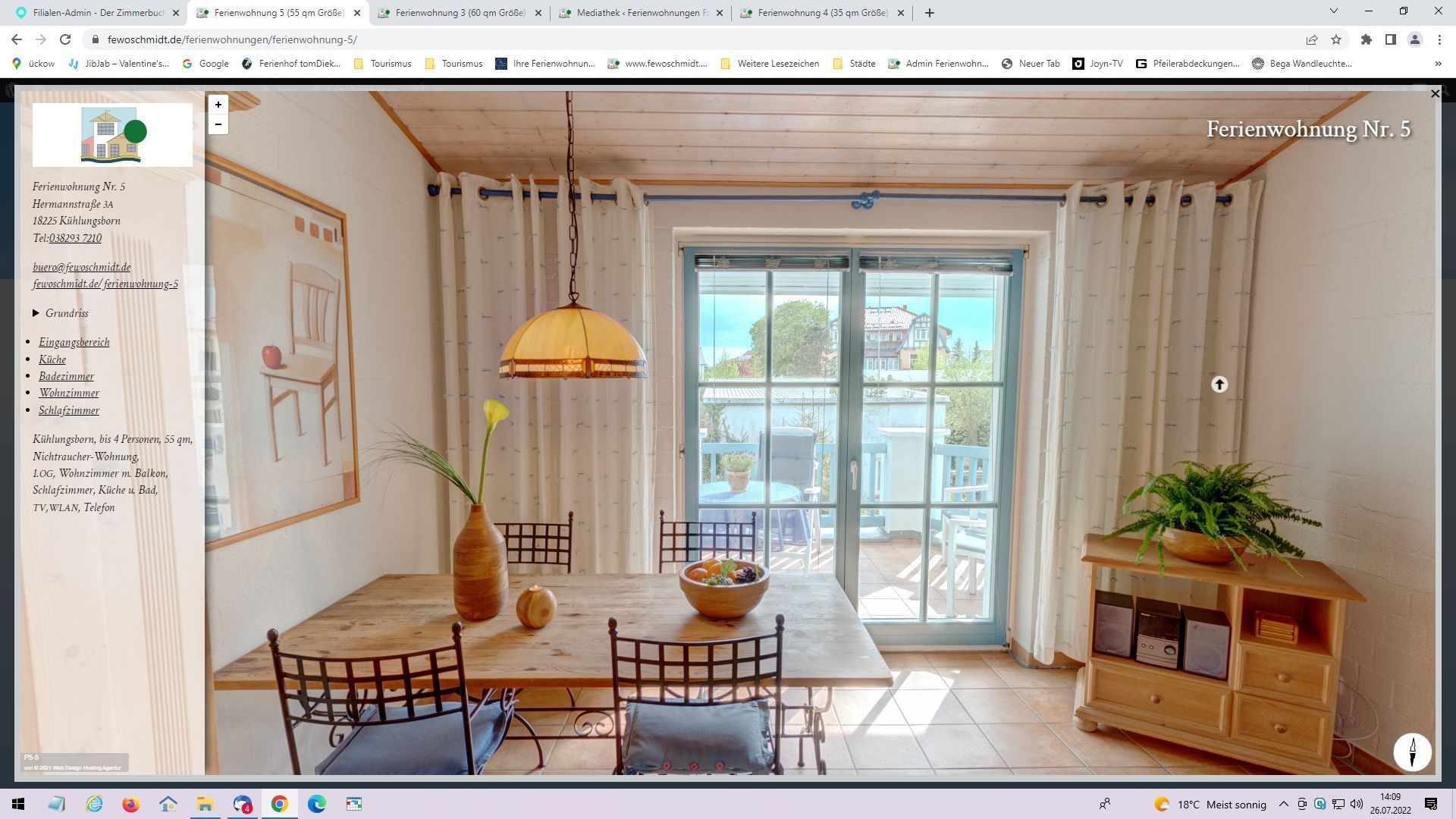 Die Wohnungen Nr. 3 und 7 sind in einem Ferienhaus im EG liegende Ferienwohnungen von ca. 60 qm Größe, bestehend aus Wohnzimmer mit Erker und Terrasse inkl. Strandkorb, Schlafzimmer und Küche.