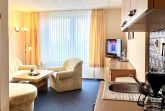 Die komfortabel ausgestatteten Feriendomizile haben einen großzügigen Wohn-/Schlafraum mit TV, eine kleine Küchenzeile mit Mikrowelle, wenn Sie sich einmal selbst versorgen wollen, ein Bad mit Dusche und WC sowie einen oder zwei weitere Schlafräume.