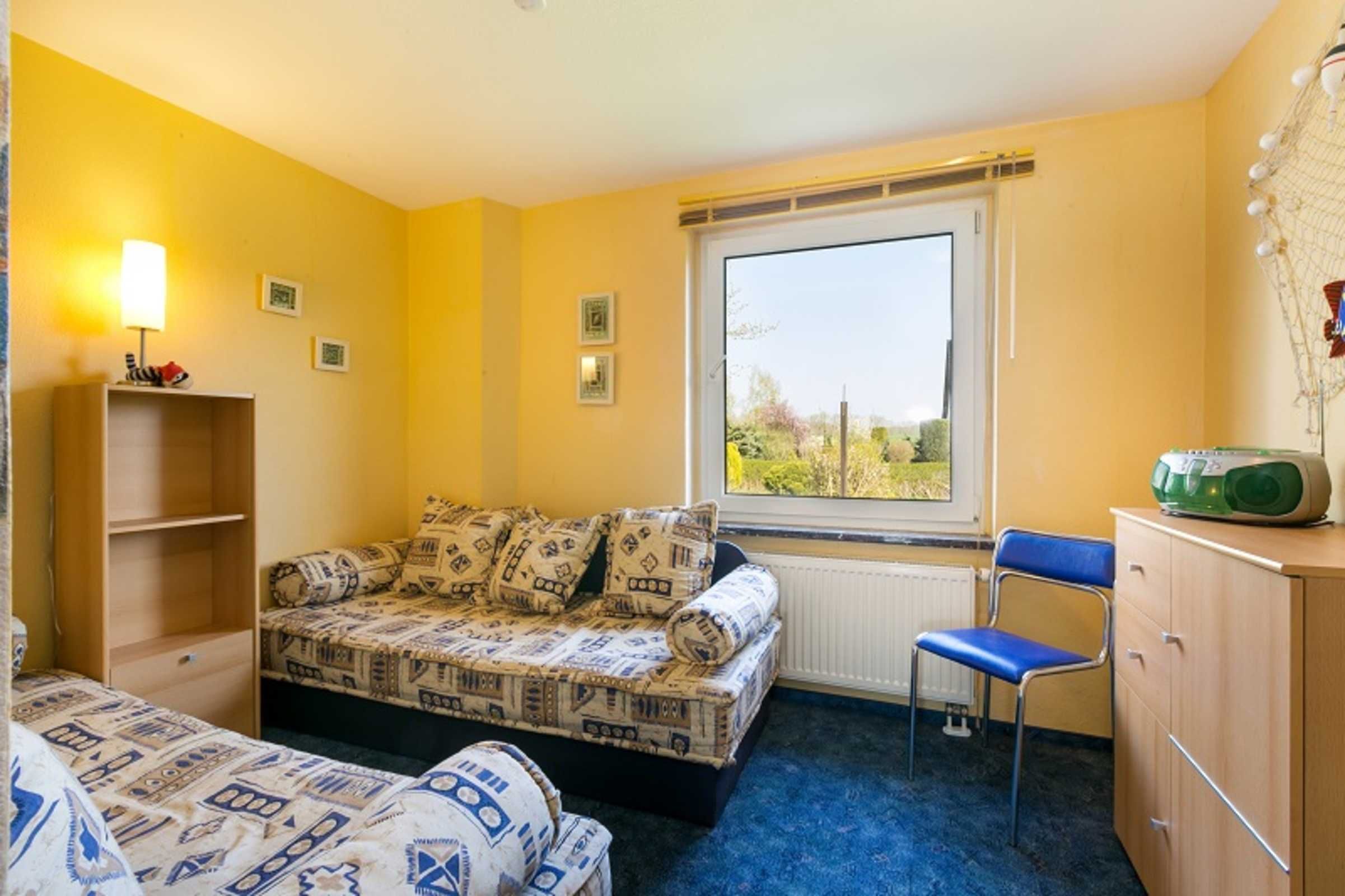 geräumiges Schlafzimmer mit Doppelbett (1,80 x 2,00 m), großem Schrank, Stühlen und Nachtschränken, Kofferablage, Möglichkeit der Aufstellung eines Kinderbettes, 2. Schlafzimmer  mit 2 zusammenschiebbaren Schlafsofas (0,70 x 1,80)