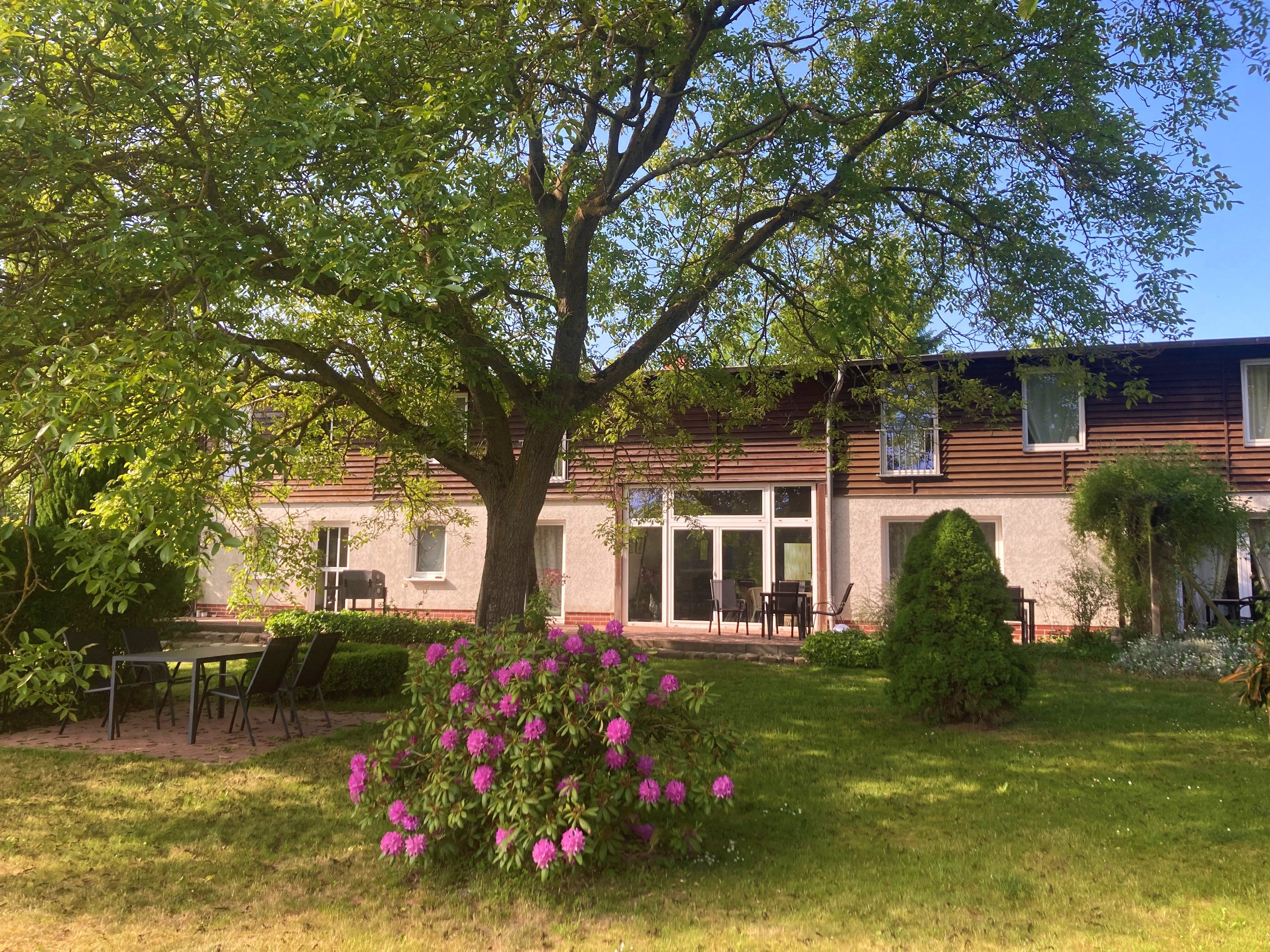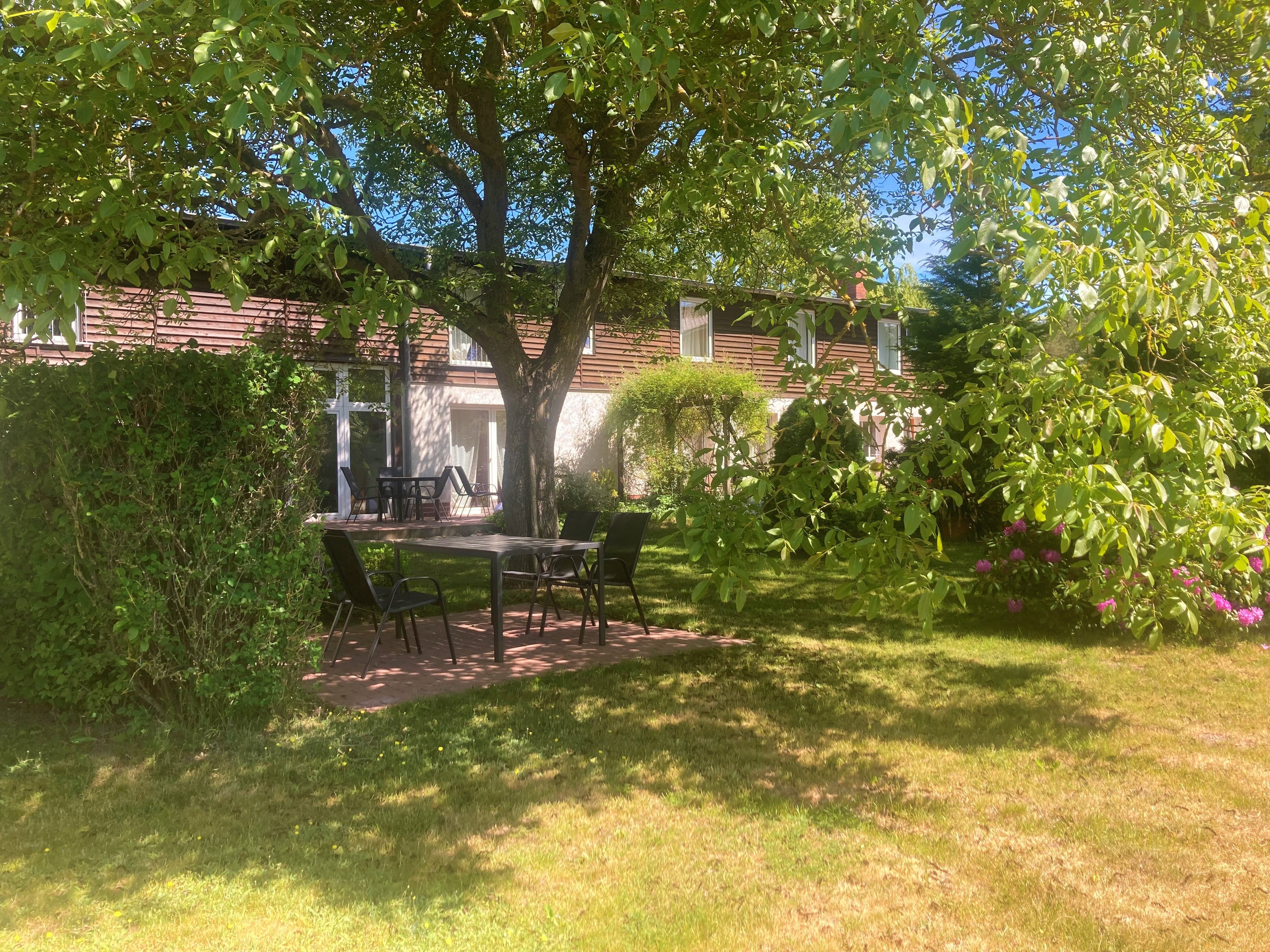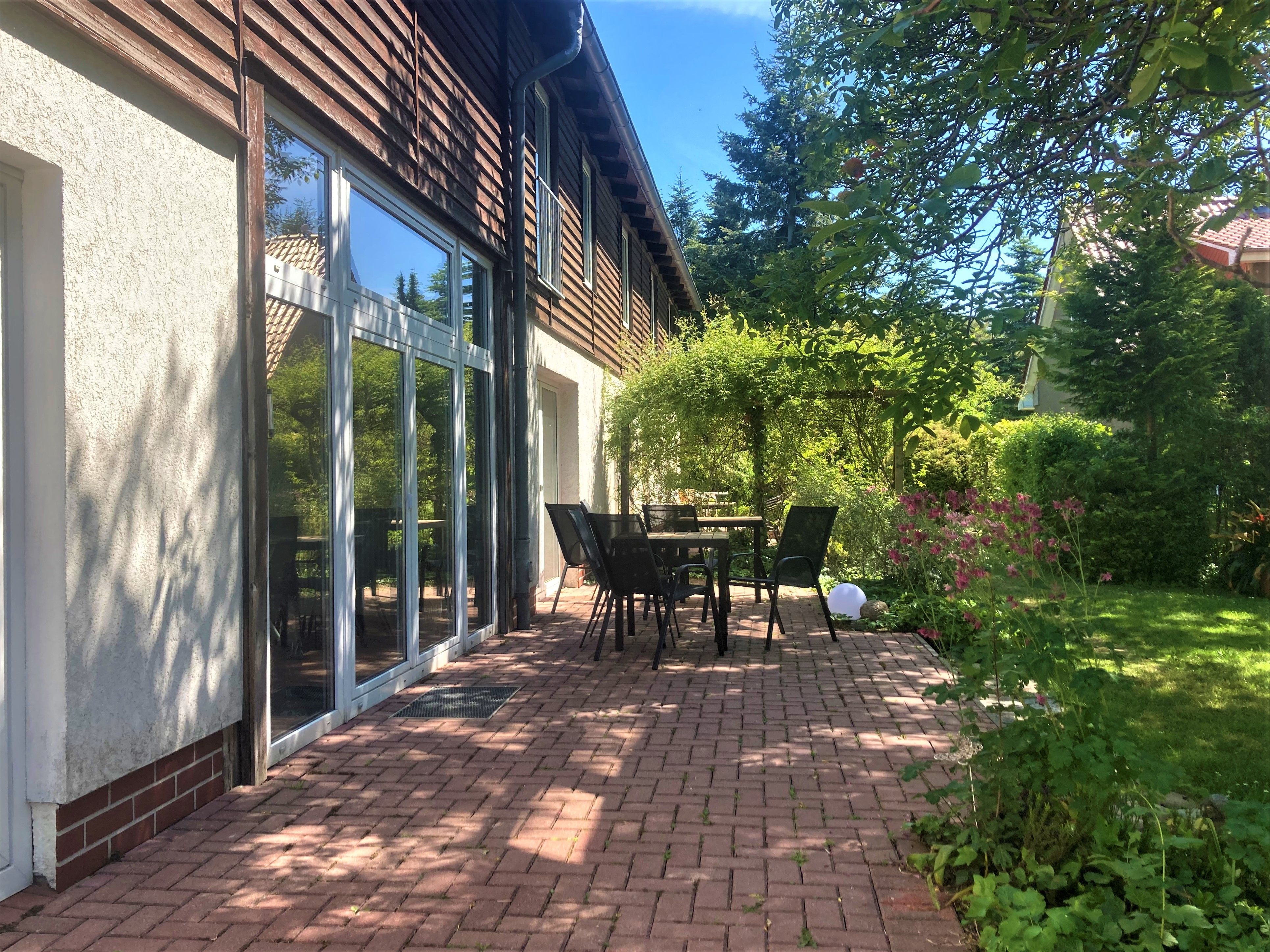 Die große Gemeinschaftsterrasse im Garten kann gern genutzt werden!