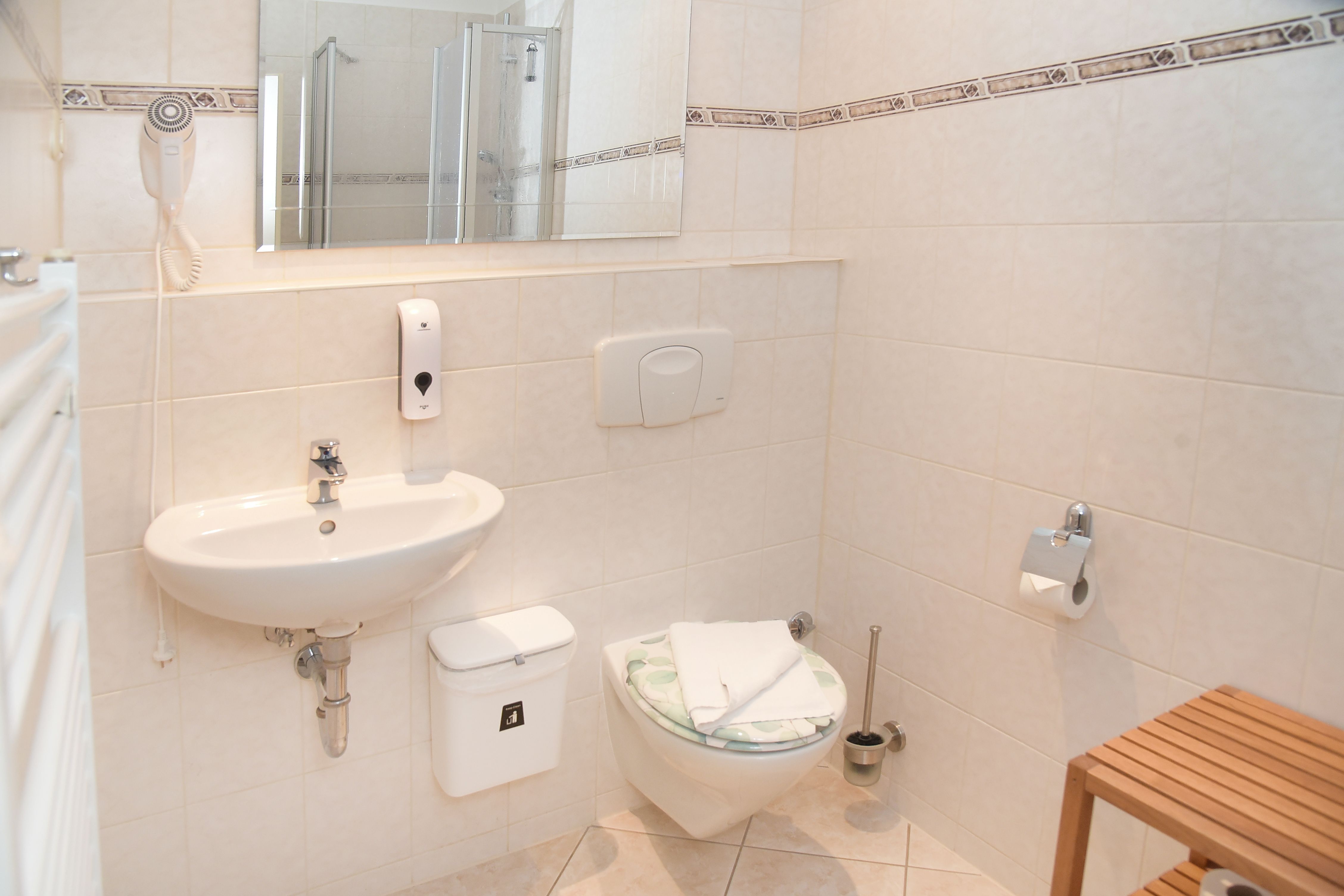 Wasserkocher, Toaster und Kaffeemaschine ausgestattet. Das Badezimmer