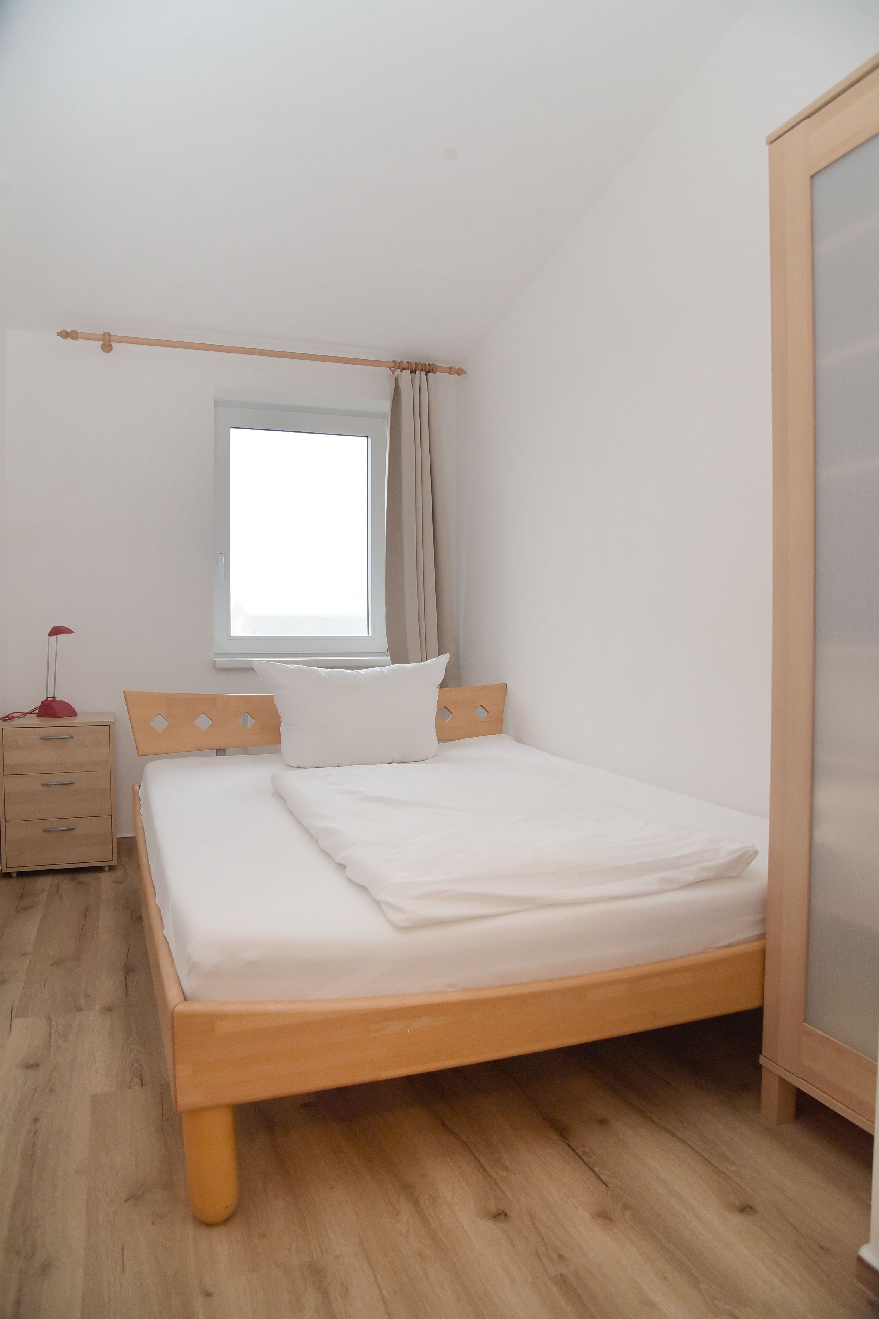 Das erste Schlafzimmer ist mit einem Doppelbett und Kleiderschrank ausgestattet. Das zweite Schlafzimmer verfügt über ein ausziehbares Einzelbett. Auf der unteren Hälfte kann eine zweite Person schlafen.