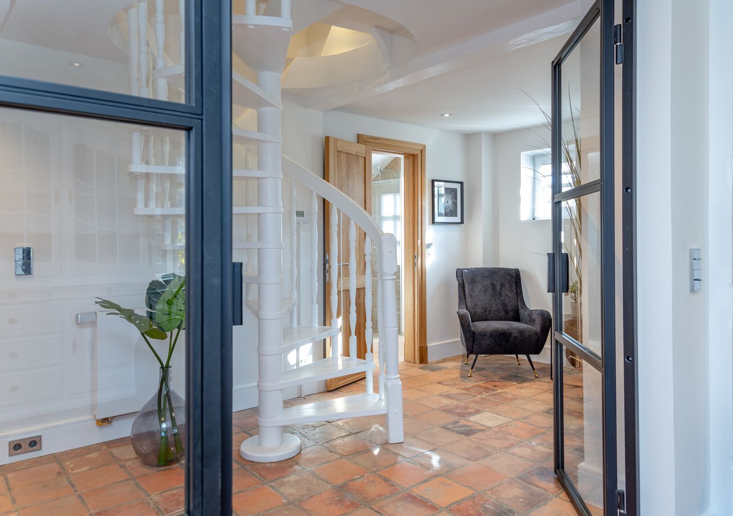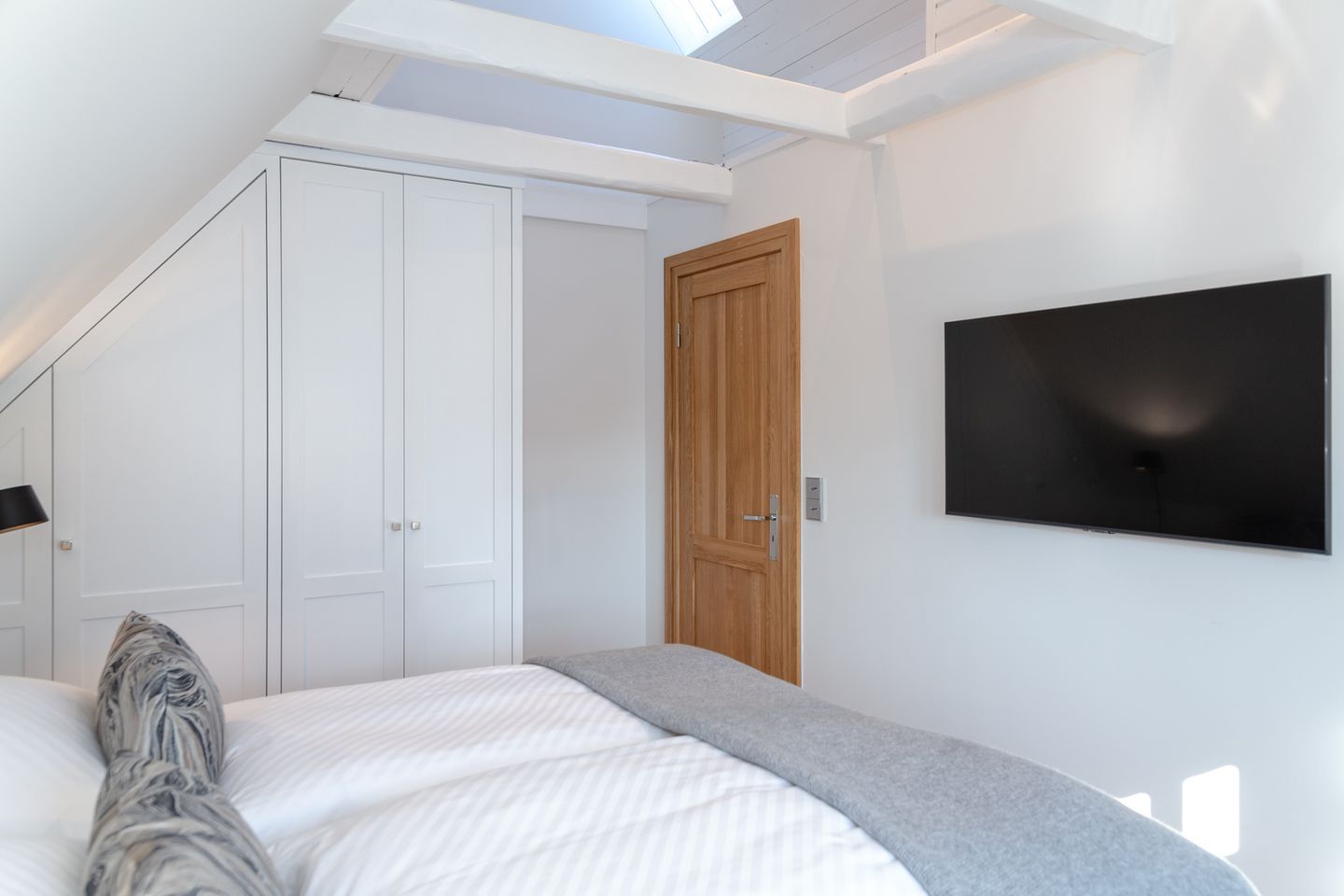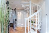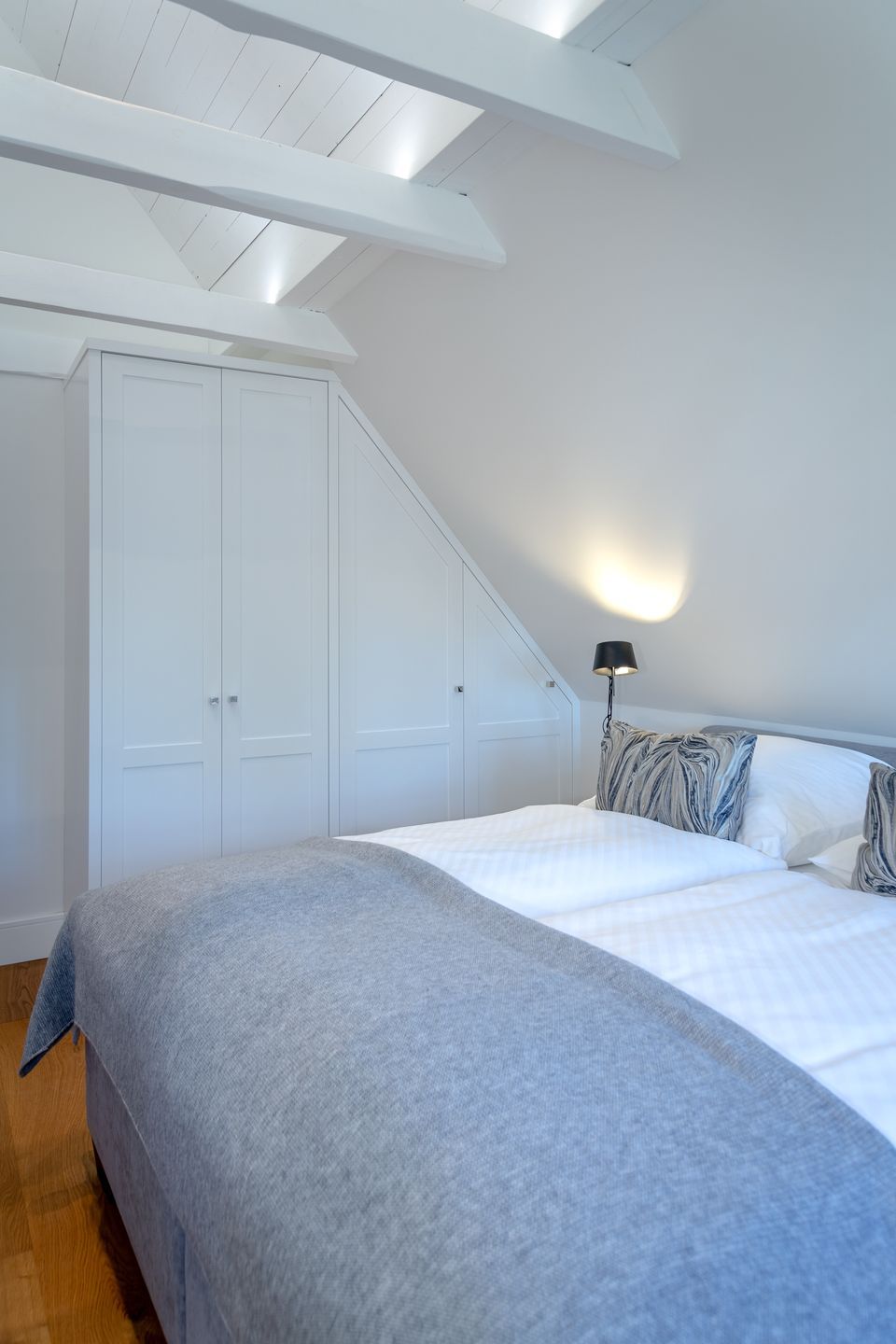 Über die Wendeltreppe gelangen Sie in das Obergeschoss, wo Sie zwei stilvolle Schlafzimmer erwarten. Beide sind mit komfortablen Doppelbetten (1,80 x 2,00 m) ausgestattet und verfügen jeweils über ein eigenes Badezimmer – eines mit Dusche, das andere mit Duschbadewanne. So genießen alle Gäste ein hohes Maß an Privatsphäre – ideal für Paare oder auch für Familien. Hochwertige Tischlereinbauten sorgen für viel Stauraum und unterstreichen den gehobenen Wohnkomfort.