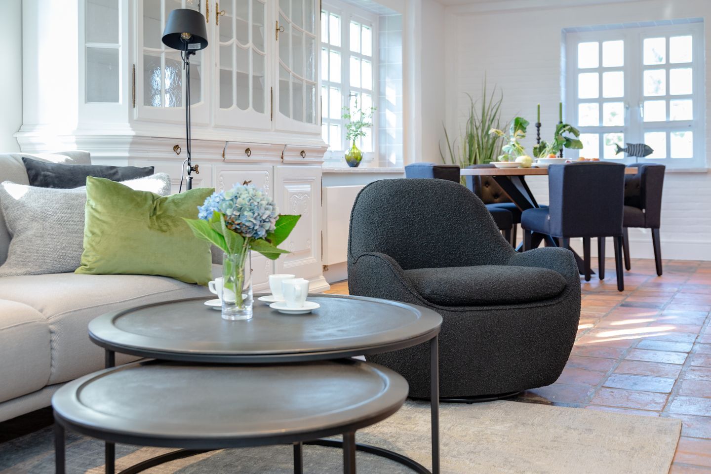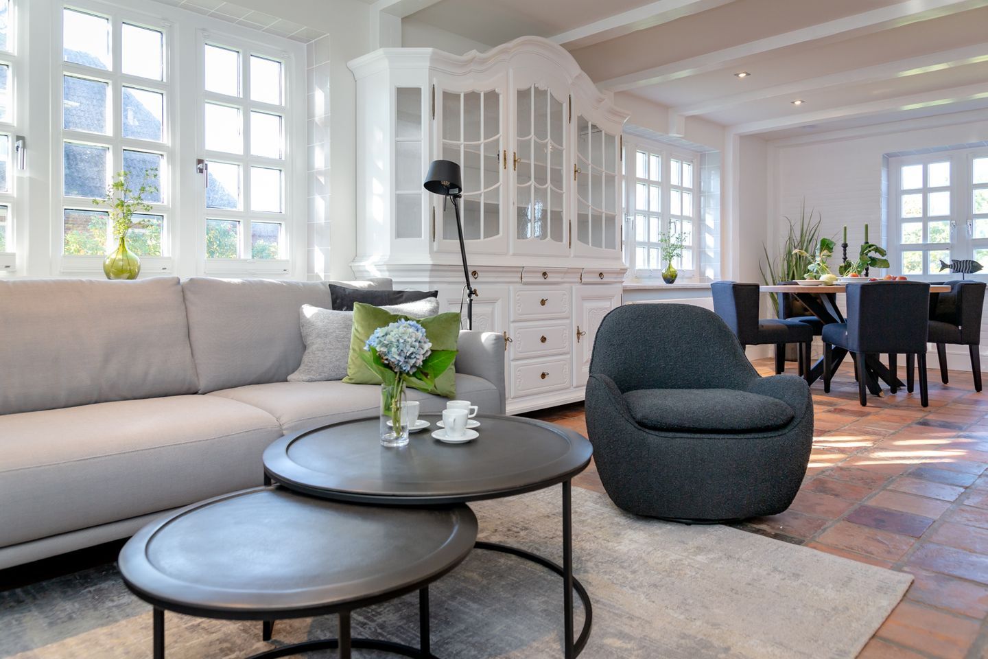 Schon beim Ankommen spüren Sie die besondere Atmosphäre dieses Hauses: lichtdurchflutete Räume, hochwertige Materialien und ein harmonisches Zusammenspiel aus modernem Komfort und klassischem Sylt-Charme schaffen einen Ort, an dem man sofort zur Ruhe kommt.