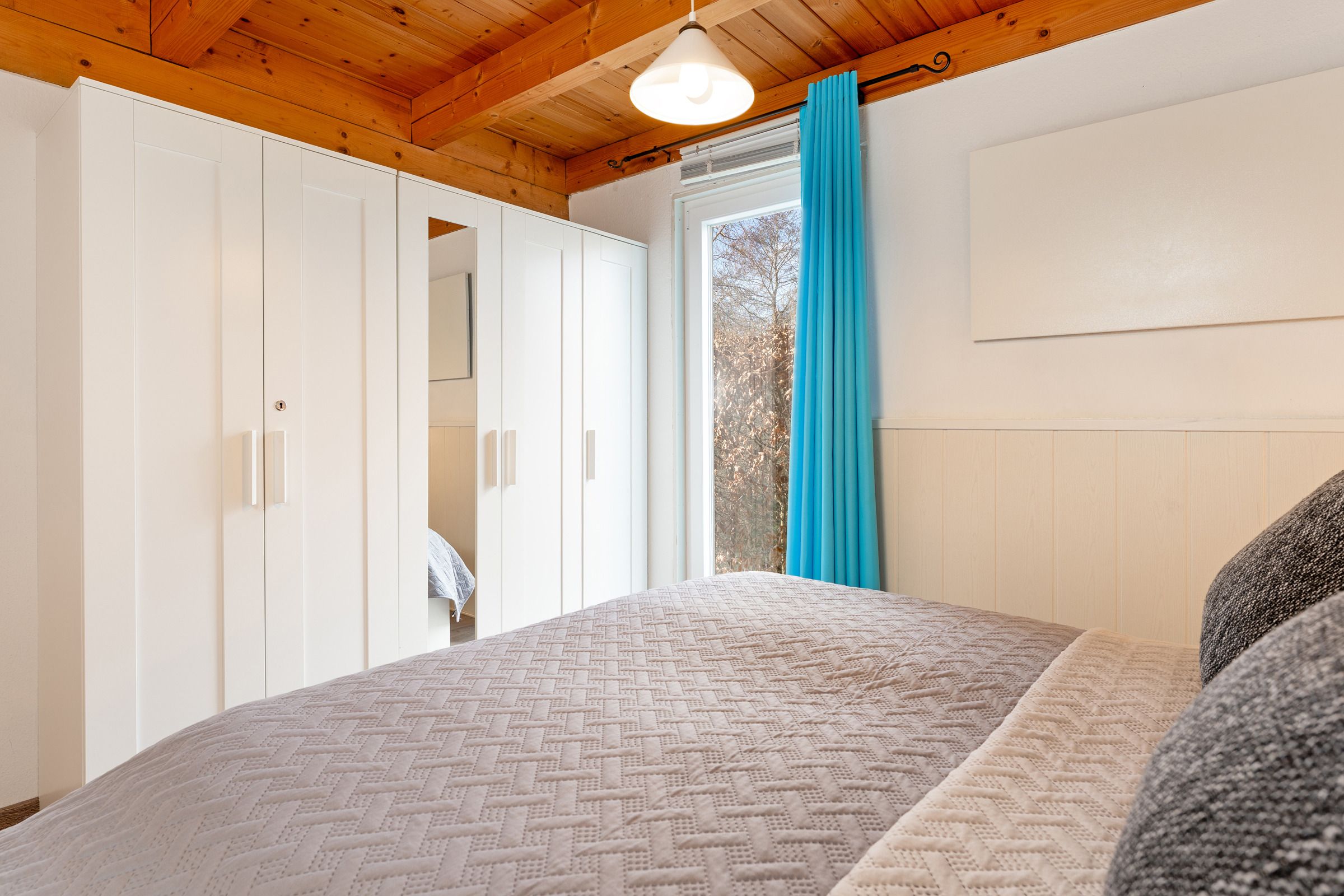 Schlafzimmer 1: 1 Doppelbett (2x 90x200 cm), Kleiderschrank, Verdunkelung: Vorhang und Lamellenvorhang, Platz für ein Babybett vorhanden