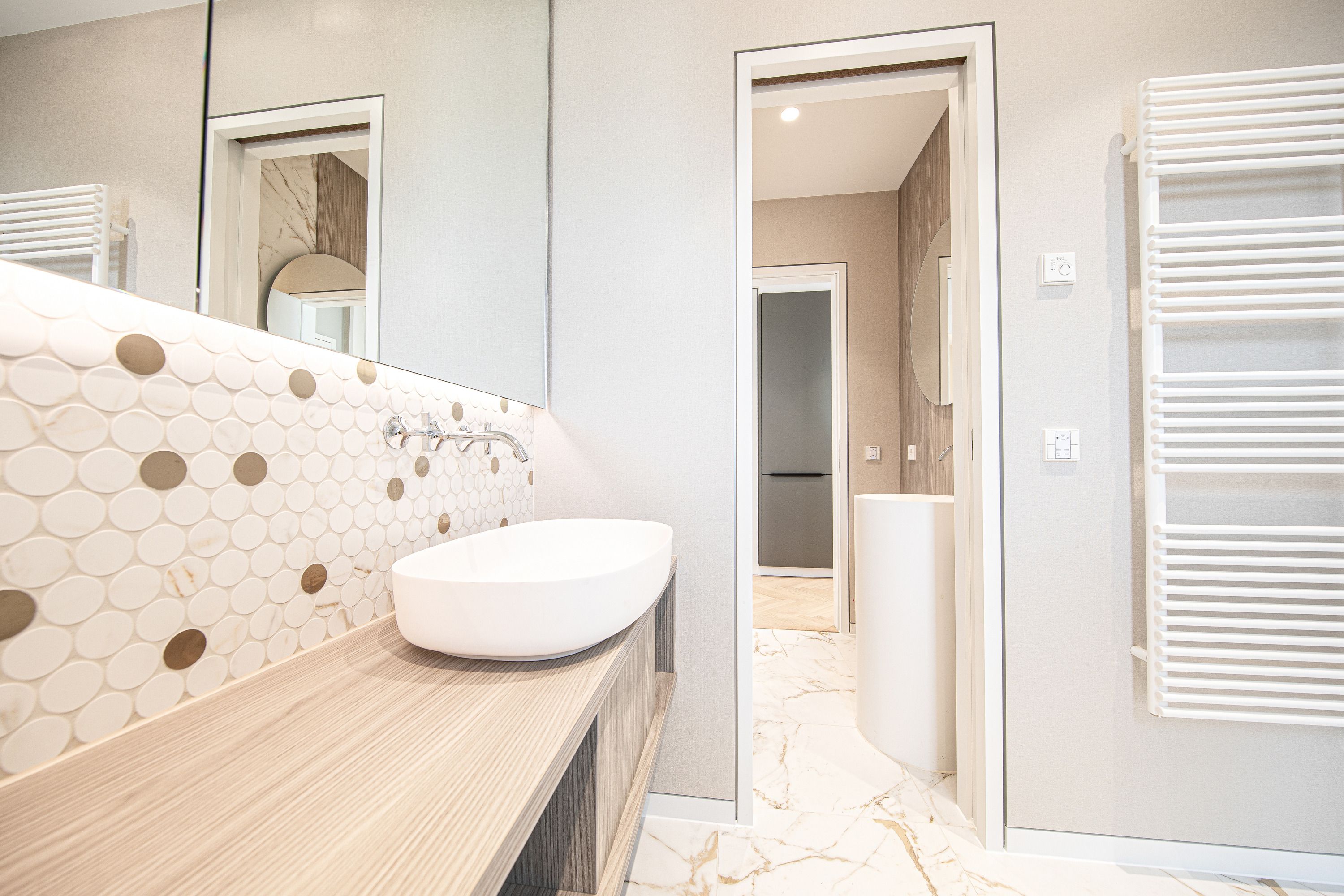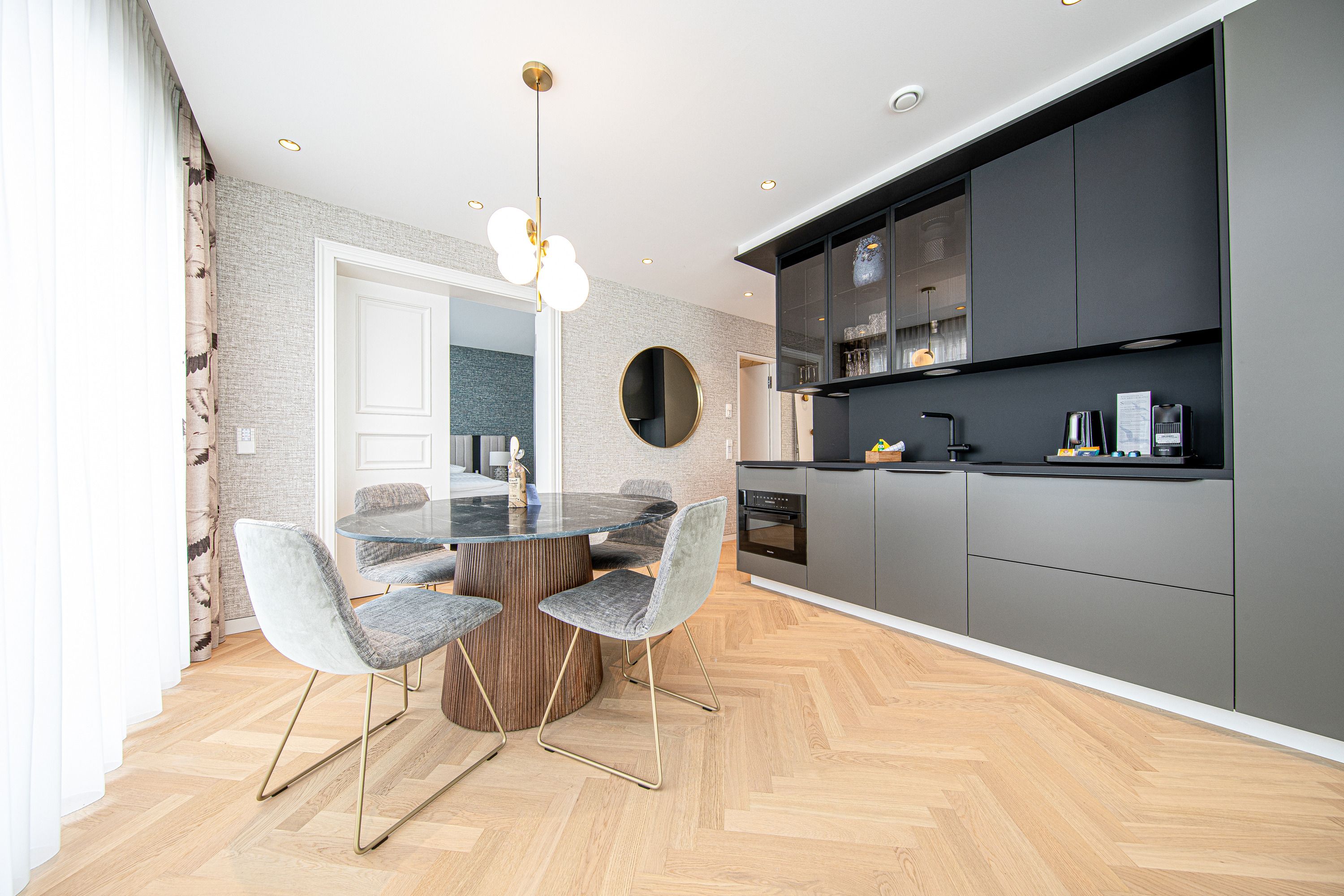 Der erste Eindruck zählt, heißt es. Über diesen Anspruch geht Arielle Suites weit hinaus. Das Niveau der Einrichtung und das durchdachte, atmosphärische Design bezaubern beim ersten Betreten – und überzeugen bis zum letzten Moment des Aufenthalts. Arielle Suites ist ein Architektonisch anspruchsvoller Neubau im Herzen des Ostseebad Sellin, welcher Ende Dezember 2025 fertiggestellt wurde. Insgesamt 6 bis ins letzte Detail durchdachte Appartements stehen potentiellen Gästen zur Verfügung. Das Appartment Triton befindet sich im 1. OG der Villa. Der offene Wohn-, Essbereich überzeugt durch hochwertigste Materialien, welche ein sofortiges Wohlgefühl auslösen. Der an den Wohnbereich angrenzende Balkon lädt zum Sonnenbaden ein. Auch die beiden Schlafzimmer, sowie die beiden Bäder mit Dusche und privater Sauna verwöhnen Sie mit Qualtität und Komfort. Die Kombination aus Lage, Architektur und dem seinesgleichen suchenden Design lassen Arielle Suites die Top-Adresse für Ihre nächste ganz persönliche Auszeit sein.