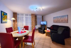 Die 2 Raum Appartements der Kategorie B sind ca. 50 qm groß und befinden sich im Erdgeschoß sowie im 1. und 2. Obergeschoß mit Terrasse oder Balkon. (Die Lage EG - 2. OG wird am Anreisetag nach Verfügbarkeit vergeben)