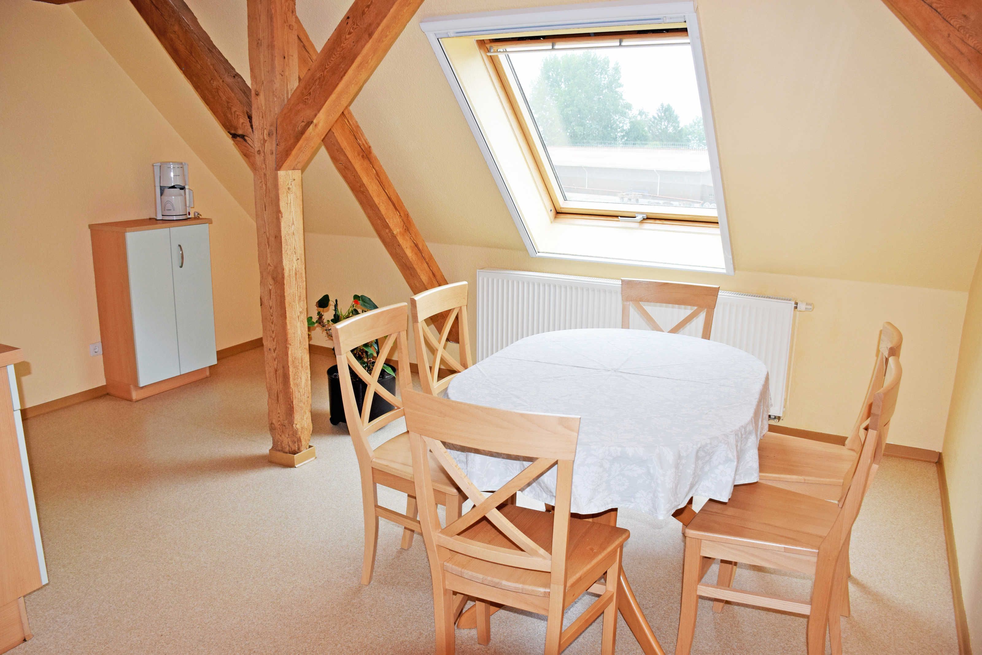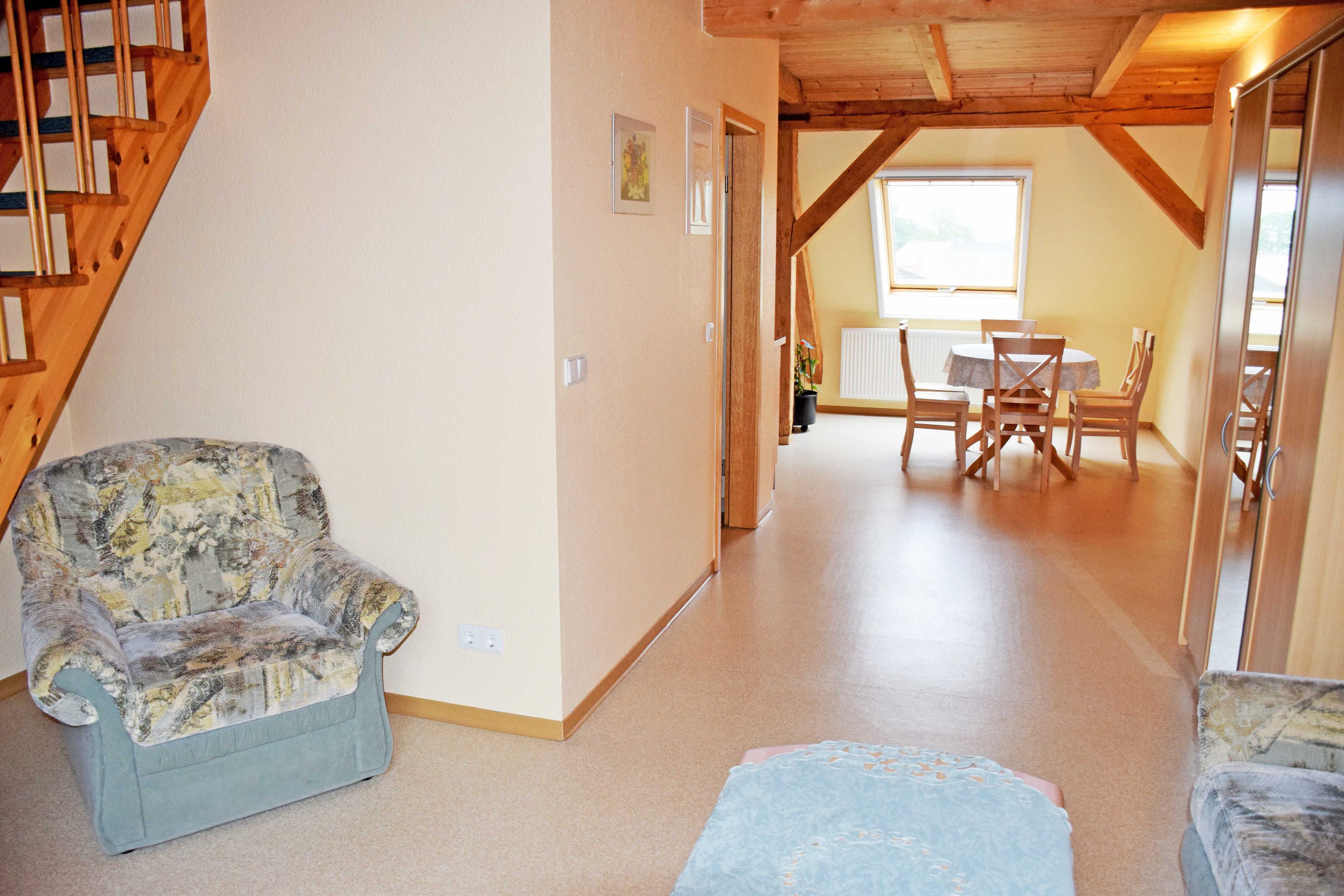 Unsere Ferienwohnung IV liegt im Obergeschoss eines Wohnhauses und ist über einen separaten Eingang zu erreichen. Sie ist ca. 62 qm groß, hat Platz für maximal 5 Erwachsene und 1 Kind im Kinderreisebett bis 3 Jahre. Die Wohnung wurde modern und komfortabel eingerichtet und verfügt über einen WLAN-Internetanschluss.