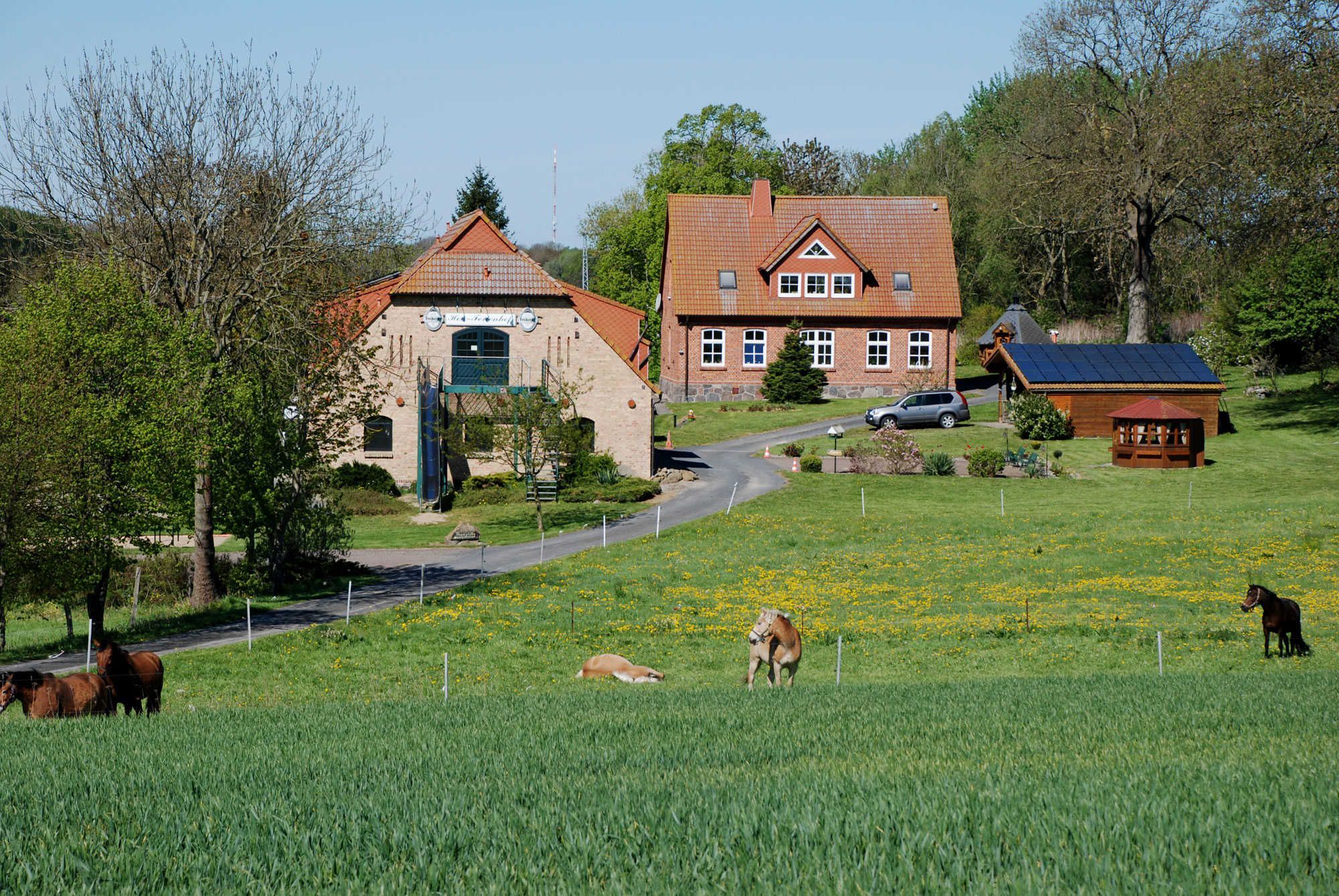 Die großzügige Terrasse mit Blick auf die Pferdekoppeln und ein kleiner Spielplatz laden zum Verweilen ein. Für Pferdeliebhaber bietet der angrenzende Reiterhof Reitunterricht, Ausritte und Kutschfahrten. Auf dem Gelände kann gegrillt werden.