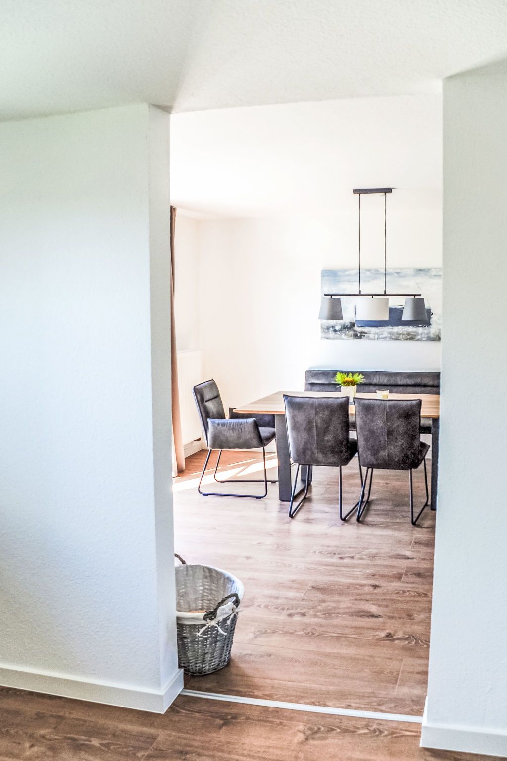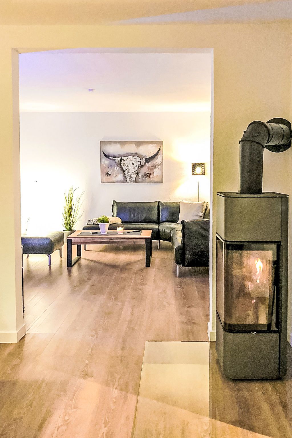Westerdeich, 4-Zimmer-Haus 125 m2 auf 2 Stockwerken. Geschmackvoll und gemütlich eingerichtet: Wohnzimmer mit Schwedenofen und Sat-TV (Flachbildschirm), Radio. Ausgang zur Terrasse. 2 Zimmer, jedes Zimmer mit 1 Doppelbett (2 x 90 cm, Länge 200 cm). Offene Küche (Backofen, Geschirrspüler, 4 Glaskeramikplatten, Toaster, Wasserkocher, Mikrowelle, elektrische Kaffeemaschine). 2 Bäder/WC, Sauna. Obergeschoss: 1 Zimmer mit 1 Doppelbett (2 x 90 cm, Länge 200 cm). Terrasse. Terrassenmöbel, Gartengrill. Zur Verfügung: Haartrockner. Internet (WLAN, gratis). Bitte beachten: Nichtraucher-Haus.