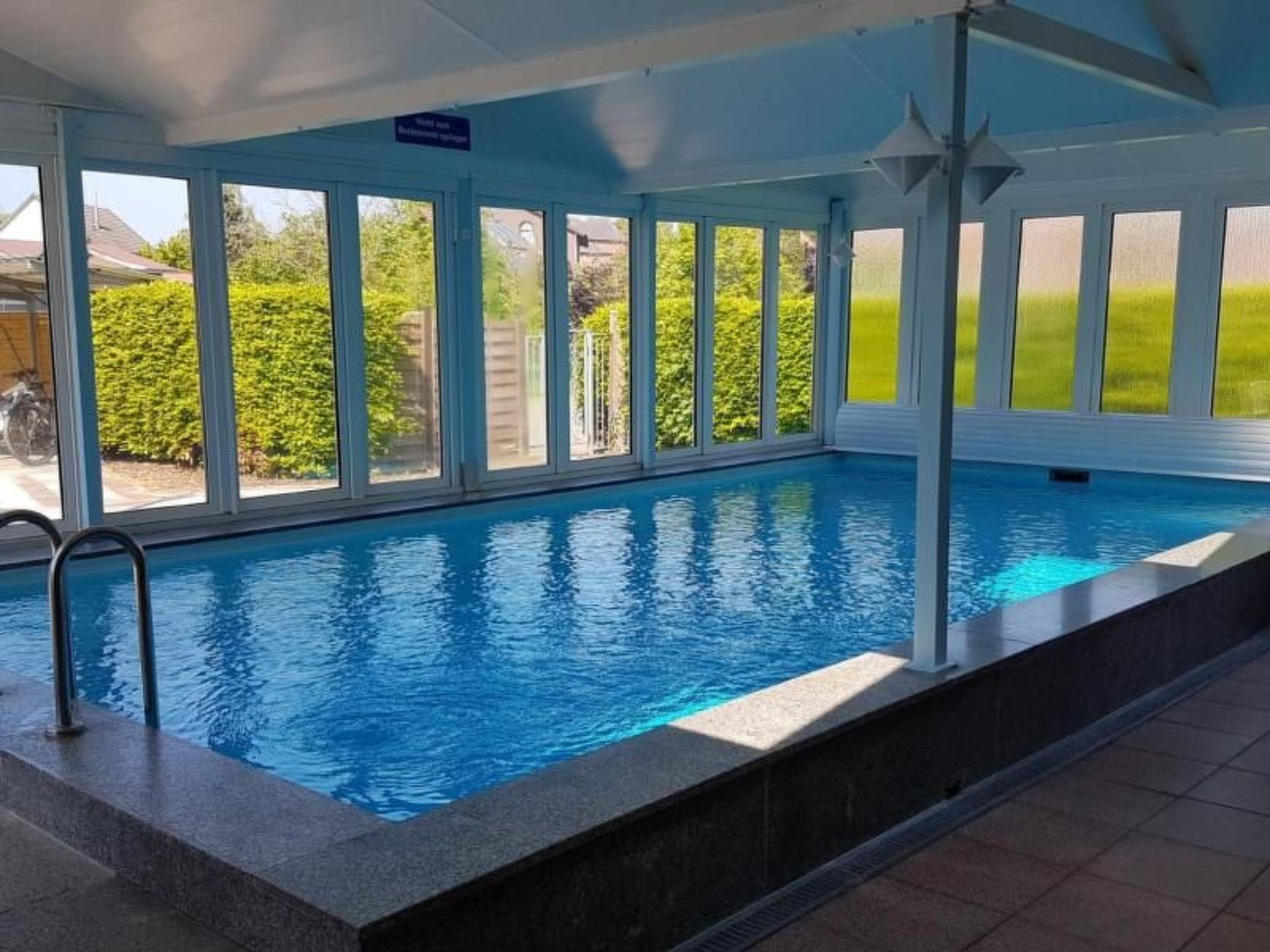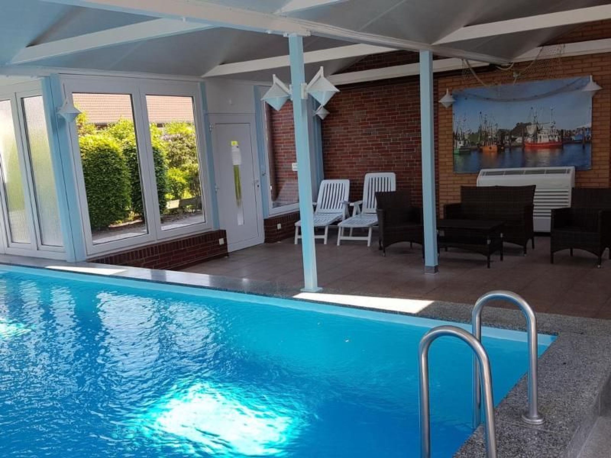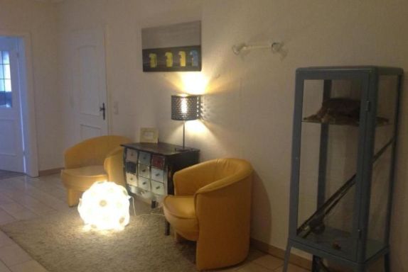Bei dem Feriendomizil handelt es sich um eine große ca. 140 qm Große Ferienwohnung im Erdgeschoss. Die Wohnung verfügt über eine eigene Terrasse die nur von unseren Feriengästen genutzt wird. Die Ferienwohnung ist die größte Ferienwohnung der kleinen privaten Ferienanlage Erika/Windrose mit ca. 20 Wohnungen. Die Wohnung befindet sich im Haus Windrose und verfügt über einen eigenen PKW-Stellplatz in direkt am Haus Windrose. Die Ferienanlage liegt ca. 800m vom Nordseestrand Burhave entfernt. Die großzügige Erdgeschossferienwohnung befindet in einer kleinen Apartmentanlage mit Flair und bildet hier die größte Wohneinheit. Ausgestattet mit kostenlosem WLAN und zwei Fernsehern (im Hauptschlafzimmer und im Wohn-Essbereich) besticht die Wohnung durch ein Einrichtungs- und Gestaltungskonzept im Kontext der Wattenmeerlandschaft. Neben den zwei großzügigen Schlafzimmern mit je einem Doppelbett befindet sich in einem vorgelagerten Duchgangszimmer (=3. Schlafzimmer) zum Masterbedroom ein Etagenbett für 2 weitere Personen bei 6-7 Personenbelegung. Bei einer Belegung von 7 Personen bietet das großzügige Sofa noch 2 weitere Schlafplätze im Wohnbereich. Ebenfalls dem Hauptschlafzimmer zugeordnet ist ein Bad en suite welches nur vom Masterbedroom zugänglich ist. Dieses Bad ist mit Dusche und WC ausgestattet. Ein weiteres Bad (Dusche und Badewanne) sowie eine externe Toilette sind vom geschmackvoll gestalteten Empfangsraum zu erreichen. Zum Garten hin öffnet sich der große Wohn- und Essbereich, der von einem großen nicht mehr in Betrieb befindlichen Kachelofen geprägt wird. Die private Gartenterrasse zwischen Pflanzen und Blumen regt zum Entspannen und gemeinsamen Essen an. Der Indoorpool im Gemeinschaftsbereich der Ferienanlage ist wieder von März bis Oktober geöffnet. Bitte beachten sie das durch Wartung/ Reperratur und sonstige Vorkommnisse (Pandemie ecet.) der Pool kurzzeitig oder im Falle einer Pandemie langfristig geschlossen sein kann. Wir bitte hier um Verständnis versuchen dies selbstverständlich von März bis Oktober zu Vermeiden. Auf den gemeinschaftlichen Freiflächen können ebenfalls von den Gästen eine Grillterrasse, Federballwiese bzw. Liegewiese, Fahrradstellplätze, und ein Tischtennis,- Aufenthaltsraum mit Kamin genutzt werden. Die Wohnung verfügt über einen eingangsnahen Parkplatz. Basisinformationen - Erlaubte Haustiere: 1 - befindet sich in: Anlage - Etage, auf der sich das Objekt befindet: EG - Gesamtanzahl d. Stockwerke im Gebäude über EG: 1 - letzte umfassende Renovierung: 2019 - keine Einsicht von der Straße - Schlafzimmeranzahl: 2 - Badezimmeranzahl: 2 Top Merkmale - WLAN - Heizung: überall - Fußbodenheizung: überall - Terrasse - Garten: zur gemeinschaftlichen Nutzung - Indoorpool - Private PKW-Stellplätze insgesamt für diese Unterkunft: 1 - ㄴ davon Garagenstellplätze: keinen - ㄴ davon Carport-Stellplätze: keinen - ㄴ davon private Außenstellplätze: 1 Schlafen im Wohnbereich - Schlafsofa 2 Personen Schlafzimmer 1 - Doppelbett (1,80m Breite) - Schlafzimmer abdunkelbar Schlafzimmer 3 - Doppelbett (1,80m Breite) - Etagenbett - Kinder-/Babybett - Schlafzimmer abdunkelbar Badezimmer Badezimmer 1 - Dusche - Badewanne - Waschbecken Badezimmer 3 - Dusche - Waschbecken - Toilette sanitäre Einrichtungen in der Nähe - Toilette Kochen/Wohnen - Kaffeemaschine: Espressokanne, Kaffeemaschine - Kühl-/Gefrierschrank: Gefrierfach, Kühlschrank - Herd: Elektroherd, Herd - Dunstabzugshaube - Backofen - Wasserkocher - Spülmaschine - Anzahl Esstische: 1 - Gesamtzahl Sitzplätze: 3 - Anzahl Wohnzimmer: 1 - Wohnzimmer abdunkelbar Entertainment - Fernseher: TV, Sat.-TV Für Kinder - Kinderstuhl Hauswirtschaft - Staubsauger Außenbereich - Grill: Grill Umgebung - Aussicht: Garten, Wald, Wiese - Lebensmittelhandel: 500 m - Cafés/Restaurants: 300 m - Flughafen: 29,0 km - Autobahn: 25,0 km - Hafen: 3,5 km - Hundestrand: 800 m - Grasstrand: 800 m - Wasser (Meer, See etc.): 800 m - Meer: 800 m - Fahrrad-Verleih: 1 m Besonderheiten - Anglerfreundlich - Inmitten der Natur gelegen