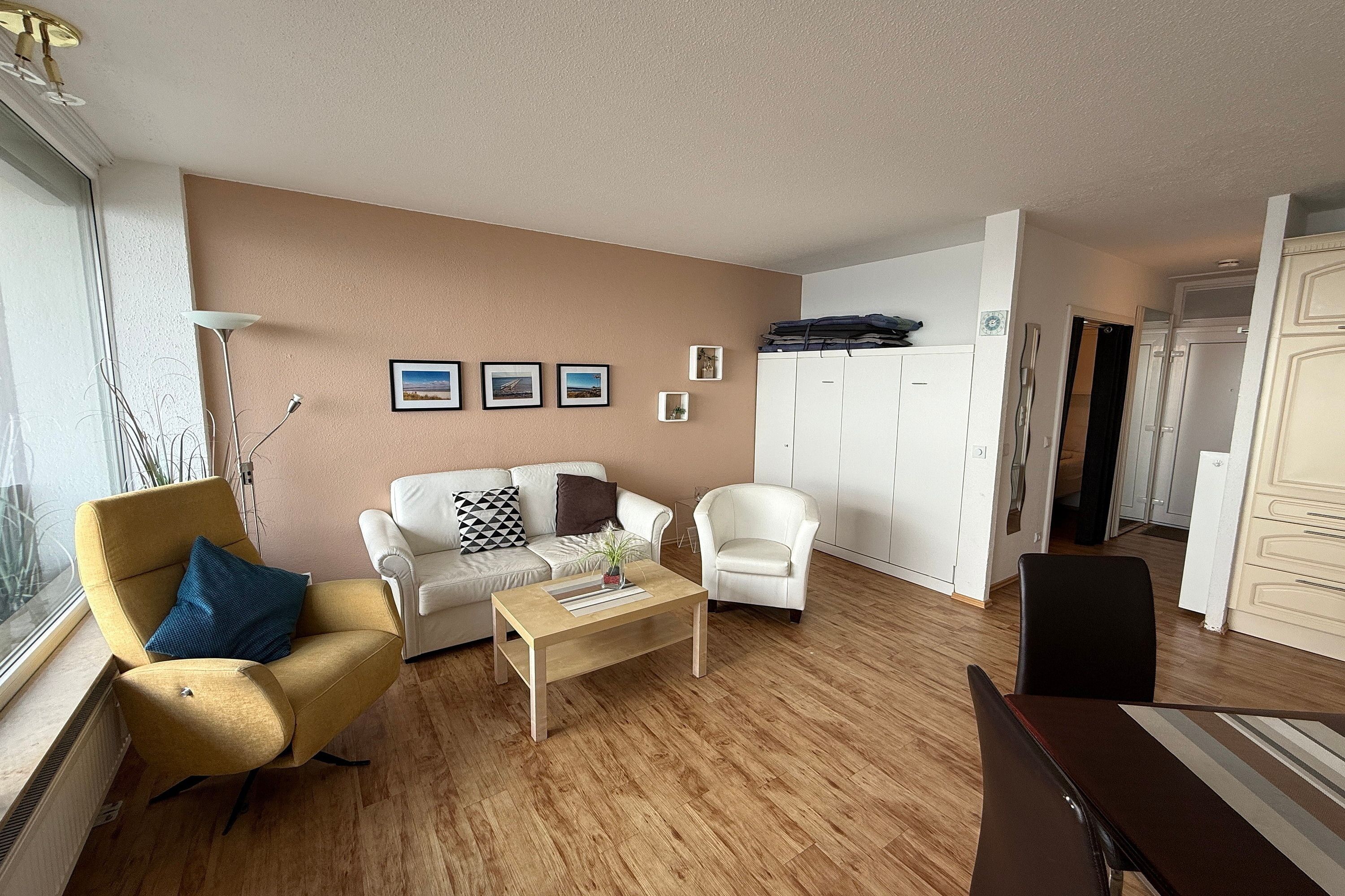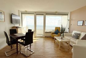 Die im Ferienpark Sierksdorf gelegene Ferienwohnung ist mit einem Fahrstuhl zu erreichen und bietet mit einer Wohnfläche von 40 Quadratmetern Platz für 4 Feriengäste. Die im Ferienpark Sierksdorf gelegene Ferienwohnung bietet von der 10. Etage aus einen beeindruckenden Panoramablick über die Lübecker Bucht. Das gemütliche Wohnzimmer ist mit einer zum relaxen hervorragend geeigneten Polstergarnitur eingerichtet, welche auch einen Urlaub mit 4 Personen möglich macht, und verfügt über einen kleinen Essbereich. Zum Wohnkomfort des Ferienapartments gehört ebenfalls ein großer Flachbildfernseher. Obwohl es sich empfiehlt, die kulinarischen Highlights der Region in den vielen nahegelegenen Restaurants zu probieren, können auch in der komplett eingerichteten Küche leckere Gerichte zubereitet werden. Das Schlafzimmer ist mit einem komfortablen Doppelbett ausgestattet. Das Badezimmer verfügt über eine Dusche. Von dem Parkplatz aus kann die Ferienwohnung direkt mit dem Fahrstuhl erreicht werden. Haustiere sind in der Wohnung leider nicht erlaubt. Für das Auto steht ein Garagenstellplatz bereit. Da Rauchen in der Ferienwohnung nicht erwünscht ist, wird gebeten, Zigaretten nur auf dem Balkon mit Traumblick auf die Ostsee zu rauchen.
