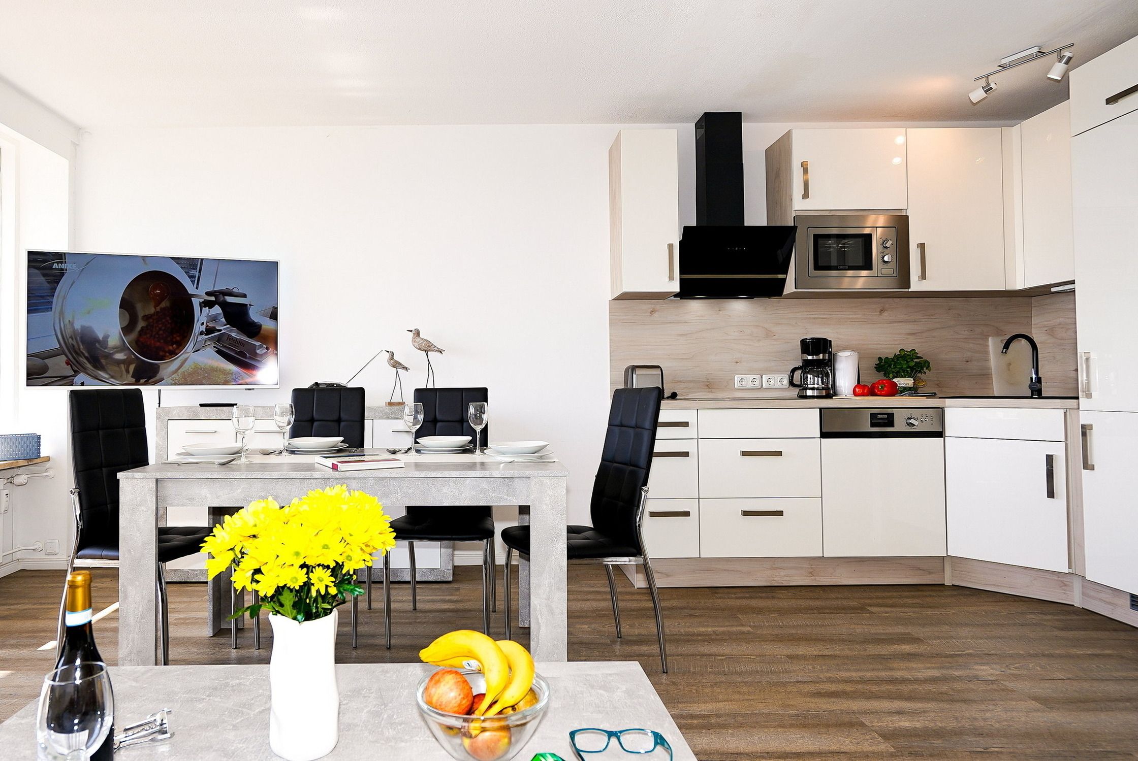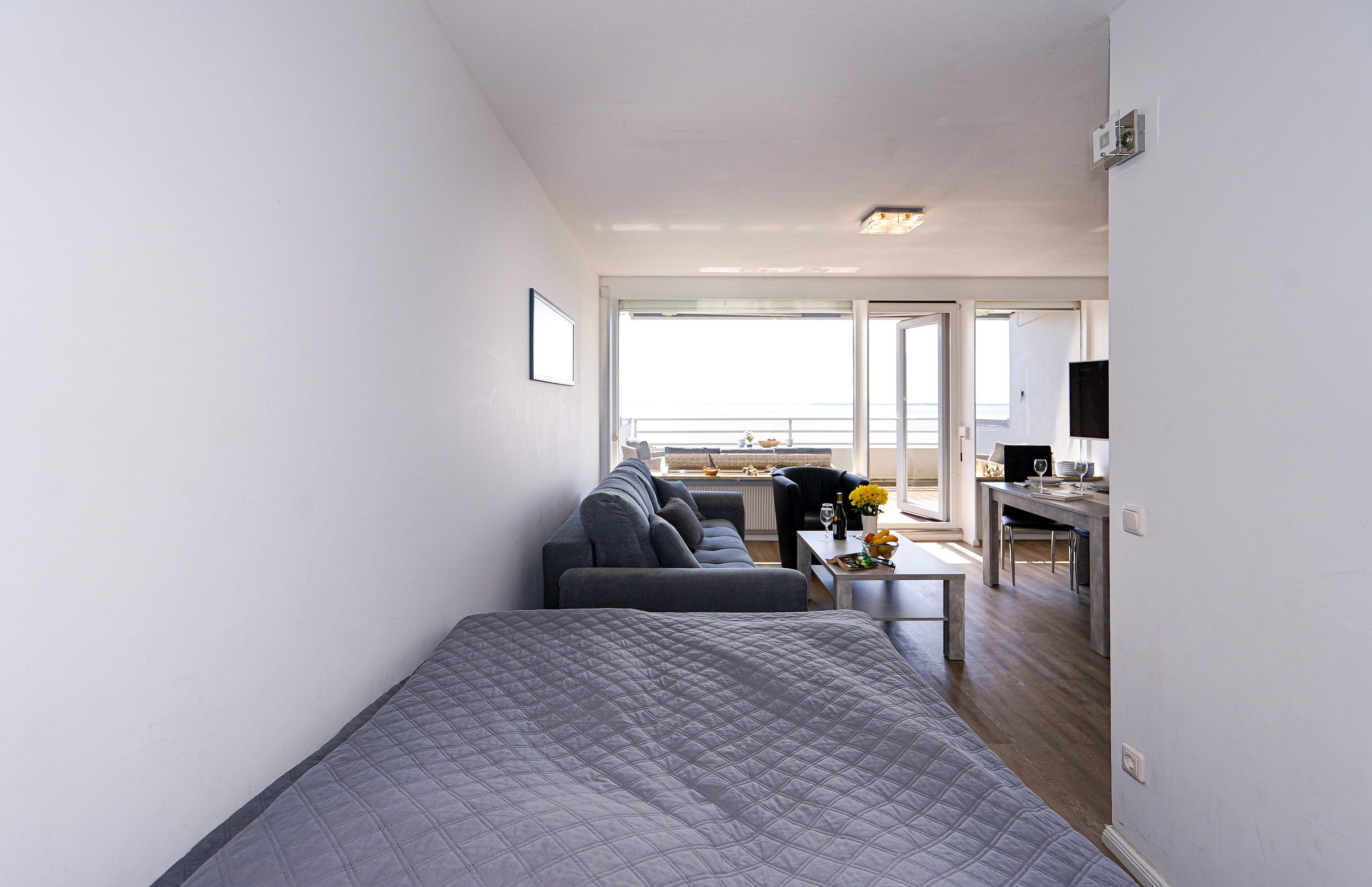 Das gepflegte und ruhig gelegene Apartment hat eine Größe von etwa 40 Quadratmetern und bietet 4 Urlaubsgästen Platz. Der Wohnraum verfügt über einen Essbereich sowie über eine offene Küche. Von der bequemen Polsterlandschaft (Schlafsofa) aus kann die Lieblingsserie auf einem großen Flachbildfernseher verfolgt werden. Der offene Schlafbereich ist mit einem bequemen Boxspringbett (1,40 x 2 m) ausgestattet. Die moderne Küchenzeile gibt Gelegenheit, eigene Mahlzeiten zuzubereiten und verfügt auch über eine Mikrowelle. Das moderne Badezimmer ist mit einer Dusche ausgestattet. Der mit wetterfesten Gartenmöbeln versehene Balkon bietet neben der Möglichkeit im Freien zu Frühstücken auch eine Aussicht auf die Lübecker Bucht. Haustiere sind in der Wohnung leider nicht willkommen. Für das Auto steht ein Stellplatz in der Parkgarage bereit. Da rauchen in der Ferienwohnung nicht erwünscht ist, wird gebeten, Zigaretten nur auf dem Balkon mit Traumblick auf die Ostsee zu rauchen. LAGE Die im Ferienpark Sierksdorf liegende Wohnung befindet sich direkt am Strand. Auf dem Weg bis zum 100 Meter entfernten Ostseestrand muss keine störende Straße überquert werden. Um die benötigten Utensilien für ein morgendliches Frühstück auf dem Balkon zu besorgen, genügt ein kurzer Spaziergang zum Kiosk des Ferienparks. Weitere Einkaufsmöglichkeiten und Supermärkte liegen etwa 3 Kilometer entfernt. Für einen abwechslungsreichen Urlaub an der Ostsee sorgen die zahlreichen Attraktionen in der Umgebung. Ein Sportflugplatz mit Rundflugangebot, Schwimmbäder, Restaurants mit einem vielfältigen Angebot an fangfrischem Fisch sind nur einige Möglichkeiten, den Ostseeurlaub erlebnisreich zu gestalten. Nahegelegene Sport- und Freizeitmöglichkeiten bereichern die Ferientage auf vielfältige Weise. Ob Bowling, Tennis, Wandern, Segeln oder Rundflüge über die Lübecker-Bucht, der erlebnisreichen Gestaltung des Ostseeurlaubs sind kaum Grenzen gesetzt. Zu den größten Attraktionen gehört der Hansapark, ein familienorientierter Freizeitpark, der weit über die Grenzen der Region bekannt ist und nur wenige Gehminuten entfernt liegt. Zahlreiche Restaurants für den Hunger zwischendurch wie auch mit einem Angebot an regionalen Gerichten befinden sich an der nahegelegenen Strandpromenade & in der näheren Umgebung. Sierksdorf ist auch ein idealer Startpunkt um die Lübecker Bucht zu entdecken. So lassen sich beispielsweise viele Badeorte bequem von Sierksdorf aus erreichen.
