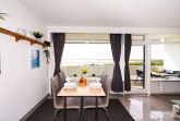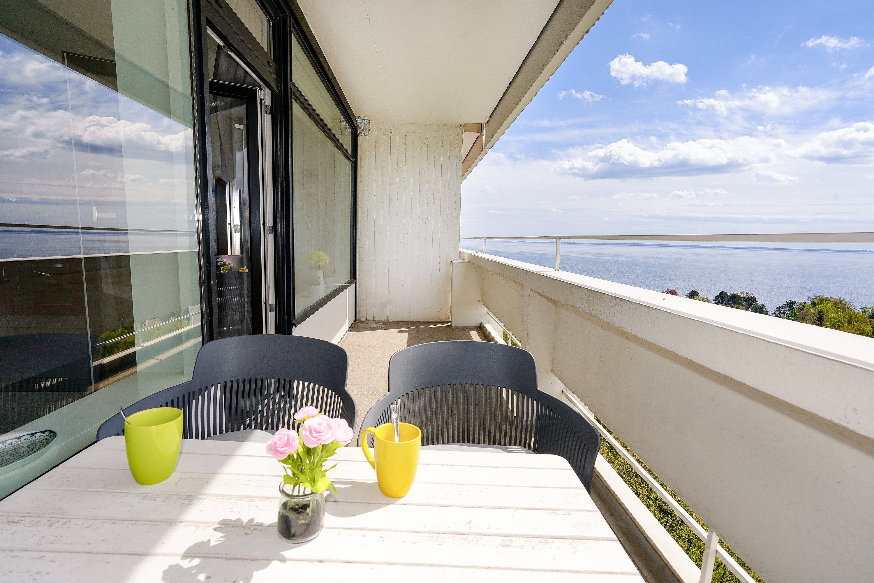 Mit Traumblick über die Ostsee den Urlaub bei einem Kaffee oder Gläschen Rotwein genießen, ein schöne Vorstellung. Ausgiebige Spaziergänge am feinsandigen Strand, auf dem Balkon die Sonne genießen oder in der nahe gelegenen Strandbar den Abend ausklingen lassen und dem Wellenrauschen zuhören. Nur 500 Meter trennen Sie von der Ostsee, der Blick ist bereits da. Das behaglich eingerichtete und etwa 40 m² große Apartment befindet sich in der 12. Etage in der Panoramic-Anlage, direkt neben dem Hansapark. Die kürzlich modernisierte Wohnung verfügt über ein Schlafzimmer mit Doppelbett und ein ausziehbares Schlafsofa, eine moderne, offene Küche mit großzügigem Essbereich sowie ein modernes Badezimmer mit Dusche. Gourmets und Feinschmeckern bietet die praktische und voll ausgestattete Einbauküche Gelegenheit, auch leckere Gerichte zuzubereiten. Der Balkon mit Traumblick über die Lübecker Bucht ist mit wetterfesten Möbeln eingerichtet. Ein großer Flachbildfernseher gehört ebenfalls zur Einrichtung der Ferienwohnung. Bettwäsche und Handtücher bringen Sie bitte selbst mit oder buchen diese bequem gegen Aufpreise hinzu. Haustiere sind in der Wohnung nicht erlaubt. Für das Auto steht ein privater Stellplatz bereit. W-Lan steht in dieser Wohnung ebenfalls zur Verfügung. In der Anlage können Sie das Schwimmbad mit einem 25-Meter-Becken gegen Gebühr nutzen. Auf dem Gelände befindet sich eine Grünanlage mit Tischtennisplatten, Tennis- (gegen Gebühr), Basketball-, und Boccia-Platz zur gemeinschaftlichen Nutzung.