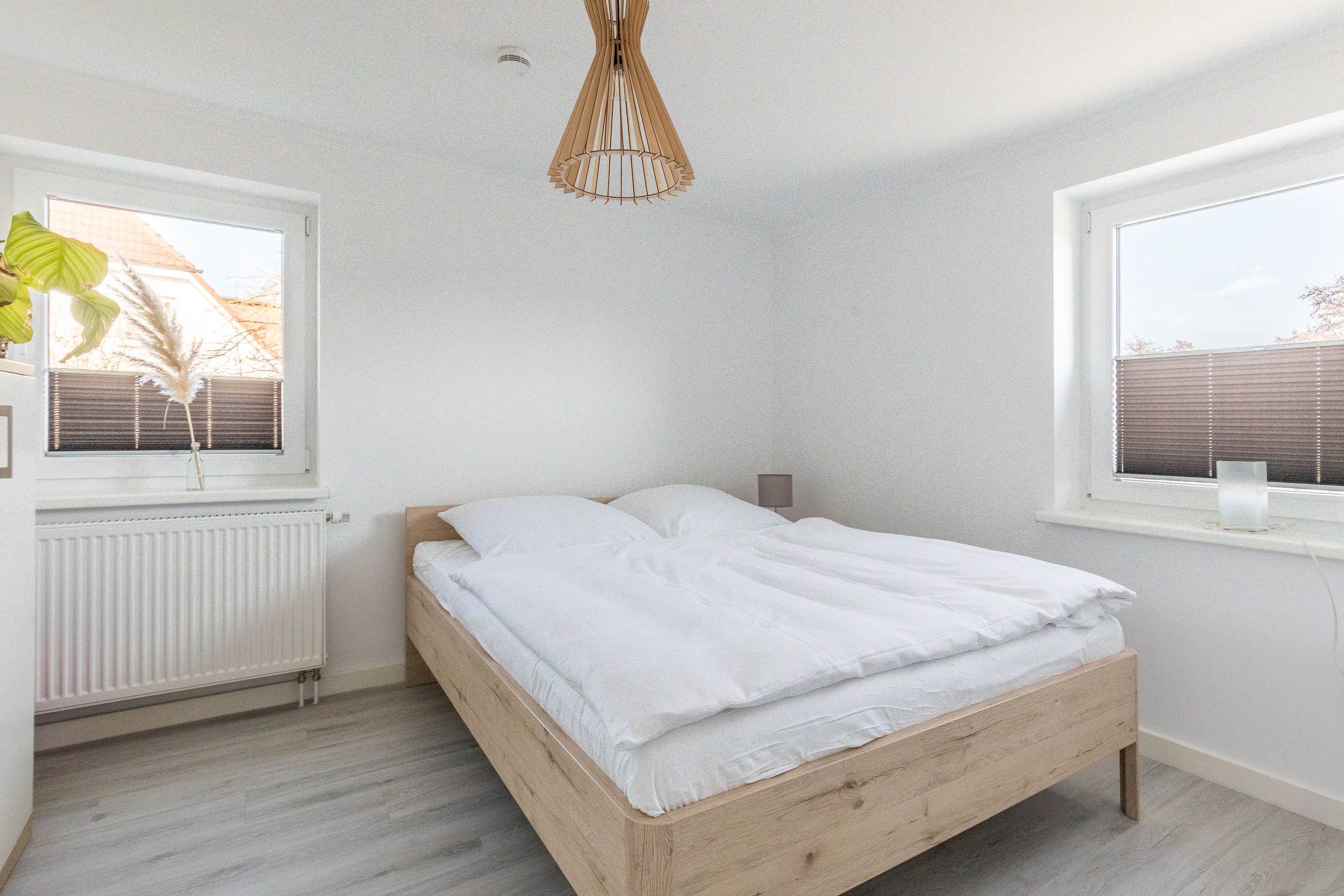 Die Wohnung verfügt über ein separates Schlafzimmer, das Platz für zwei Personen bietet und für erholsame Nächte sorgt.