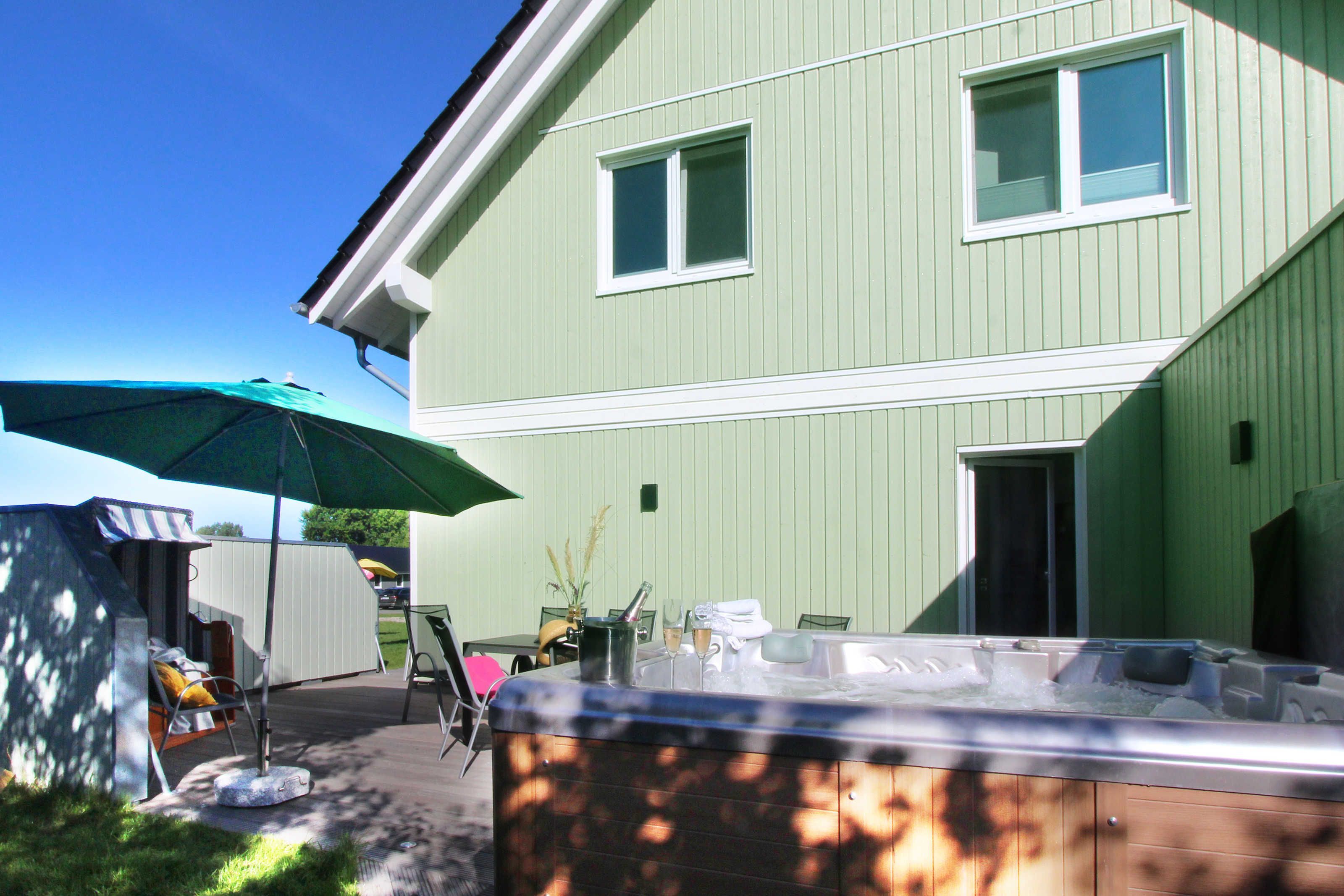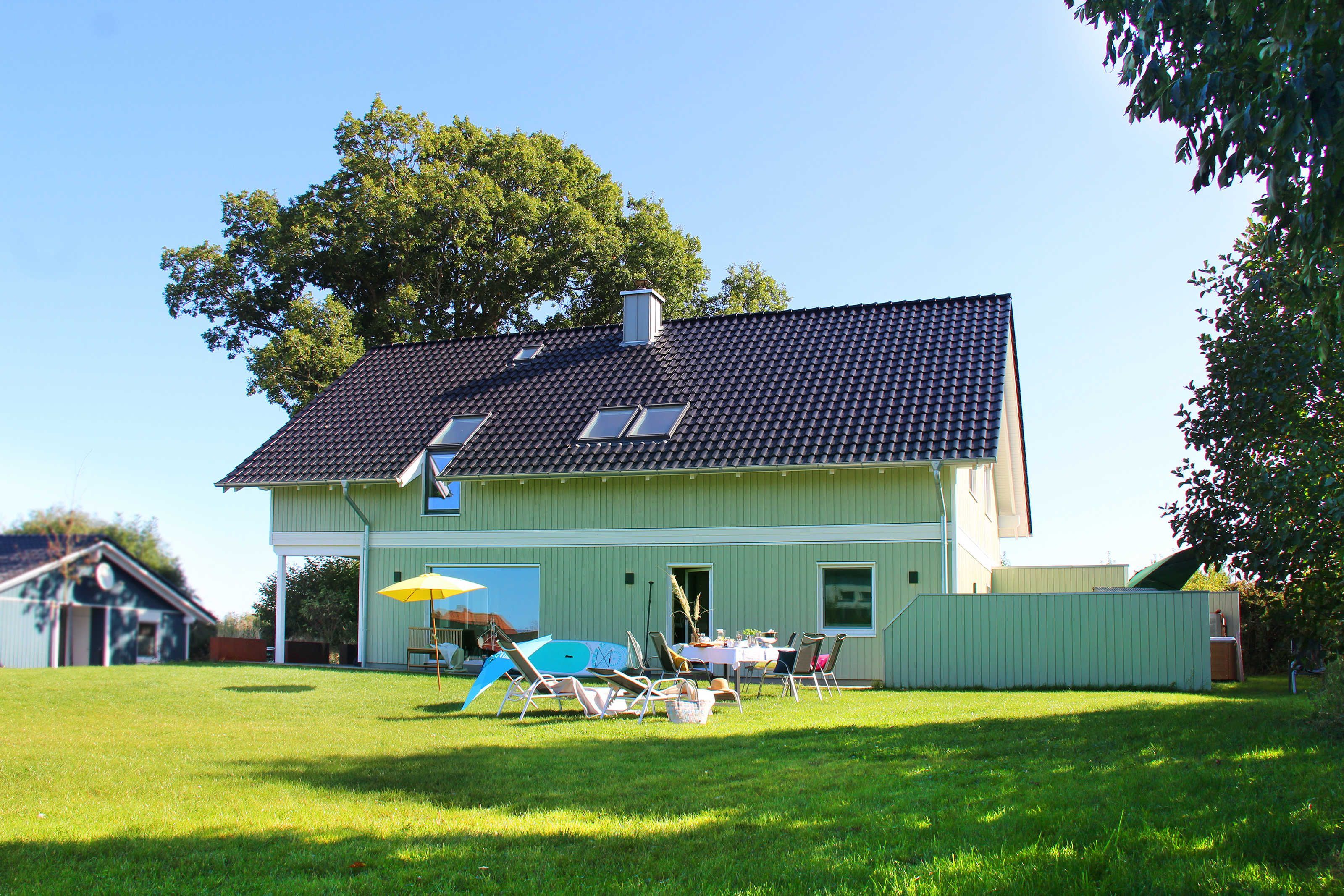 Herzlich willkommen in unserem exklusiven Ferienhaus für 14 Personen im skandinavischen Stil direkt an der Ostsee mit Panoramablick, eigenem Strandzugang, Bootsliegeplatz, Jacuzzi für 6 Personen und Komfortausstattung