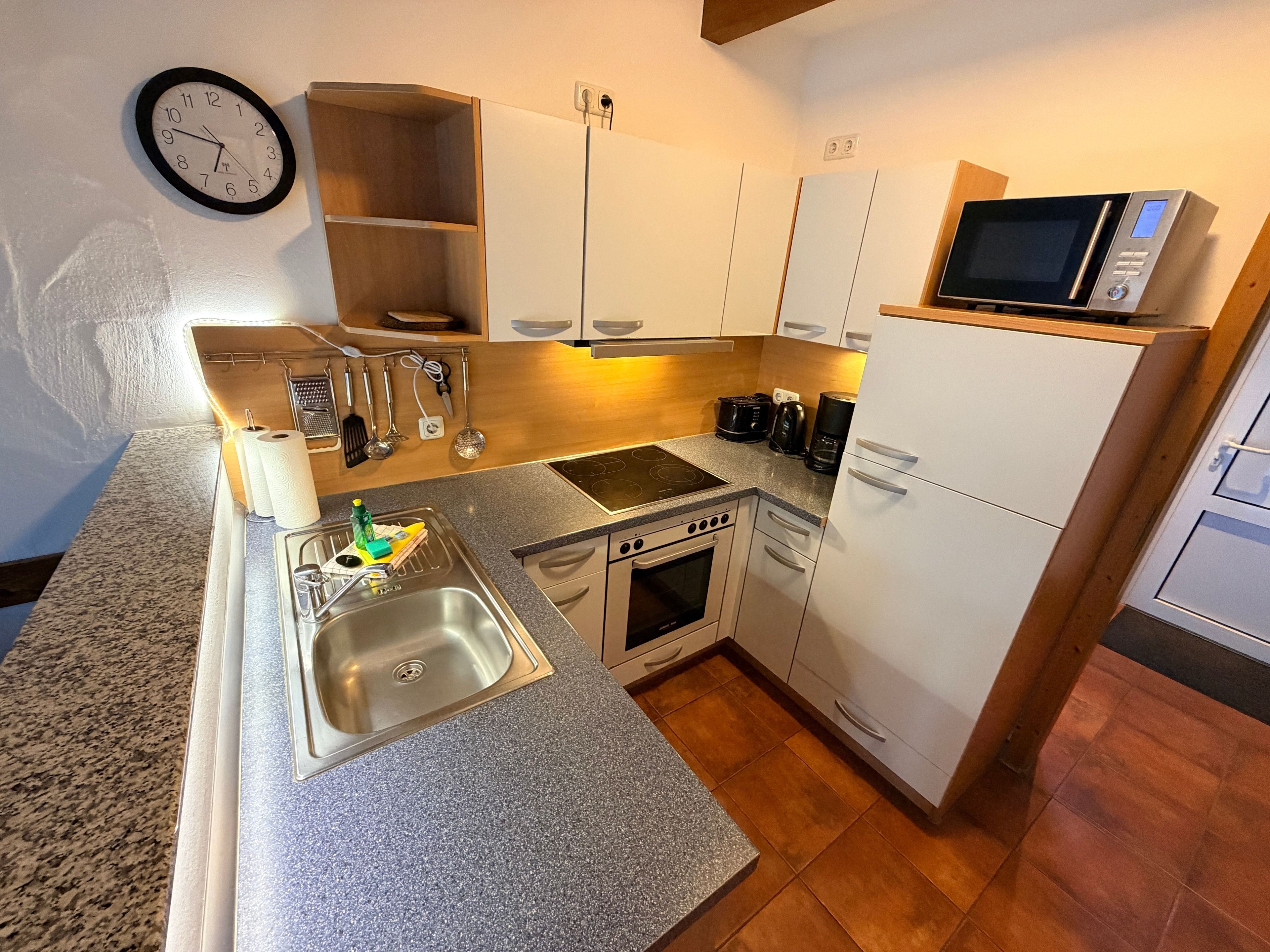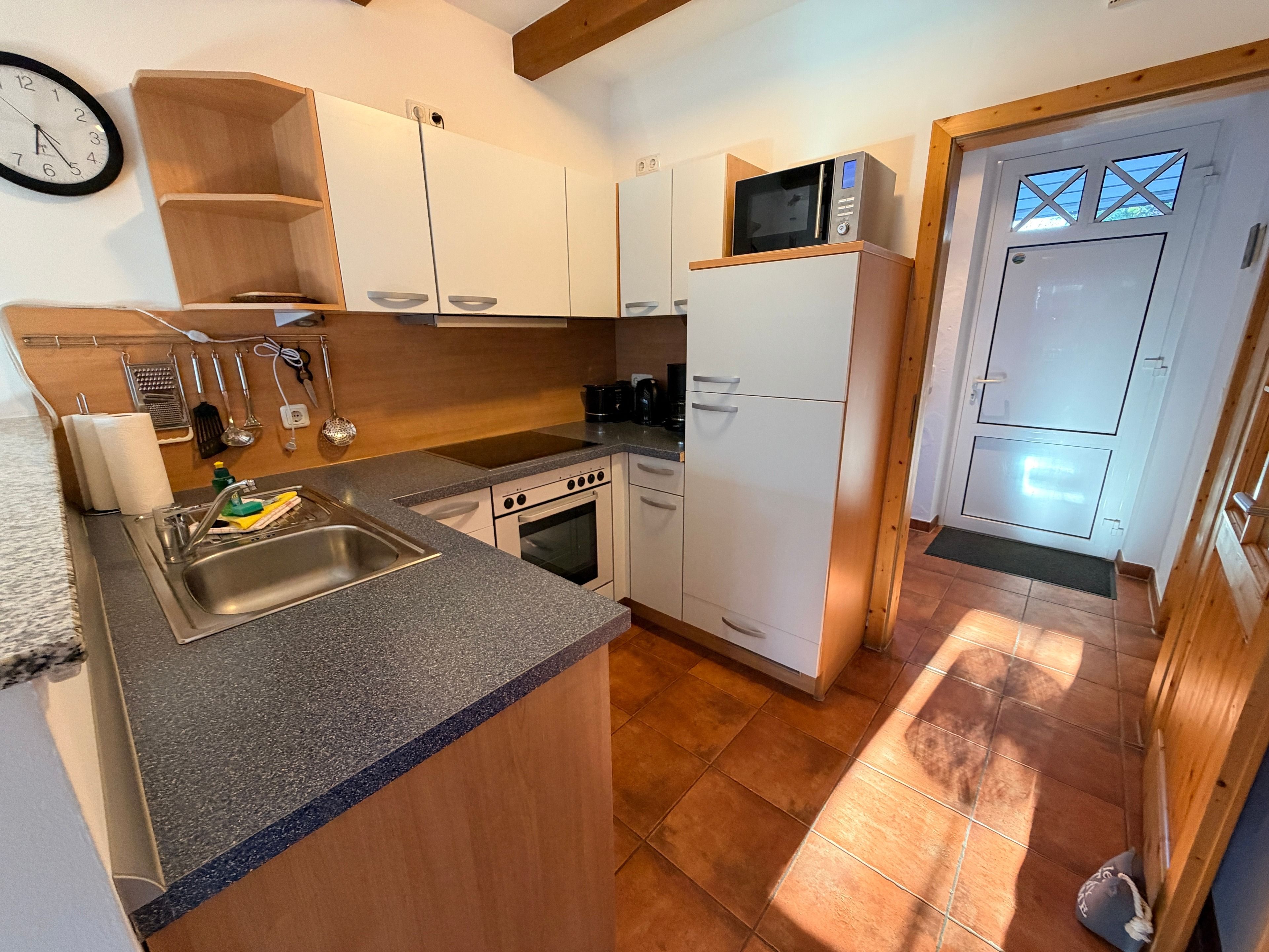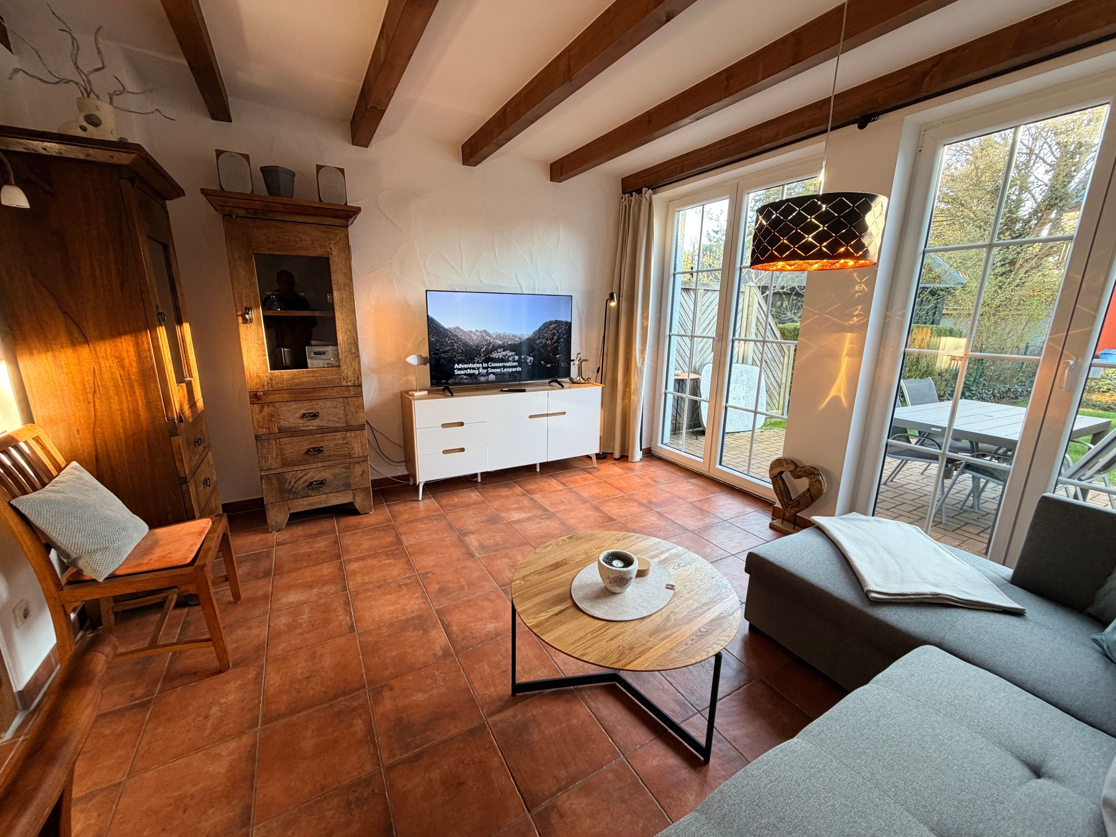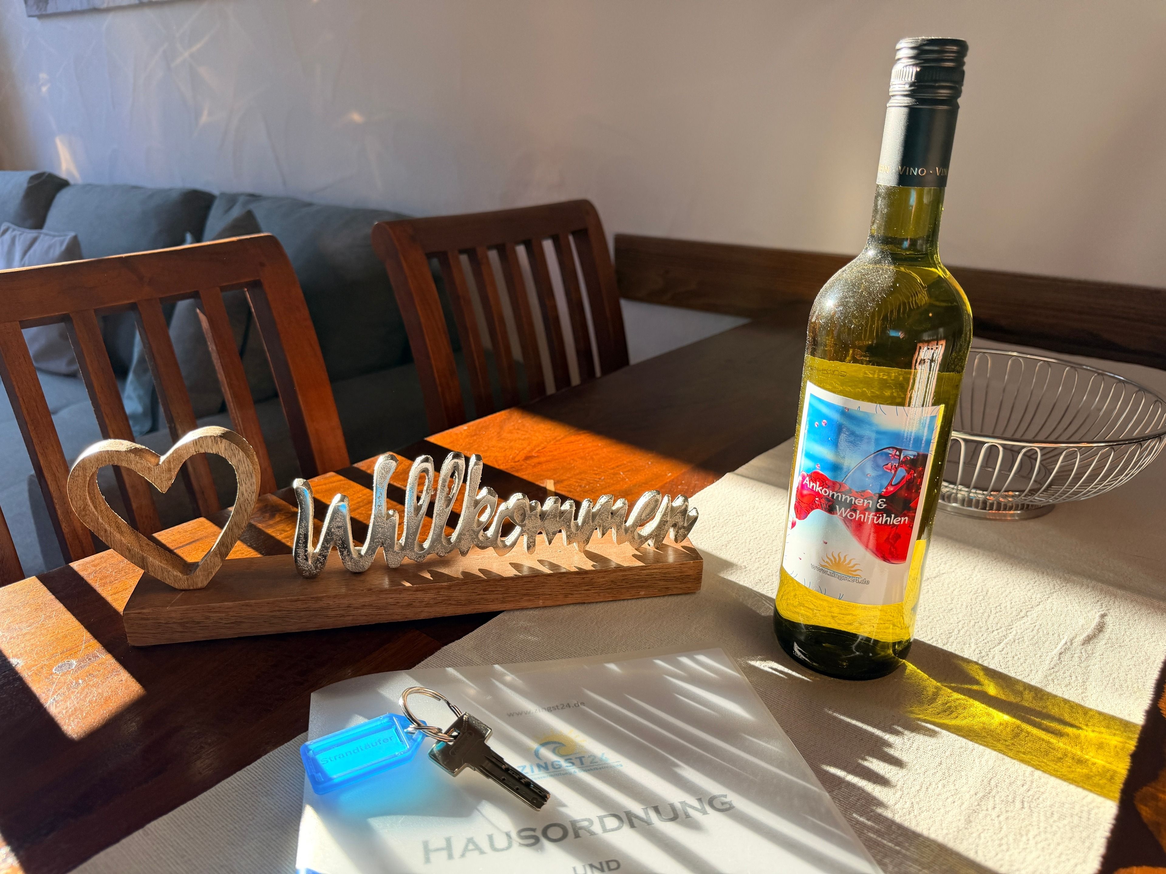 Schon beim Eintreten spüren Sie die behagliche Atmosphäre. Das geschmackvoll eingerichtete Wohnzimmer lädt zu entspannten Abenden nach einem erlebnisreichen Strandtag ein, während die voll ausgestattete Küche alles für gemeinsame Kochmomente bietet – vom Familienfrühstück bis zum gemütlichen Abend-