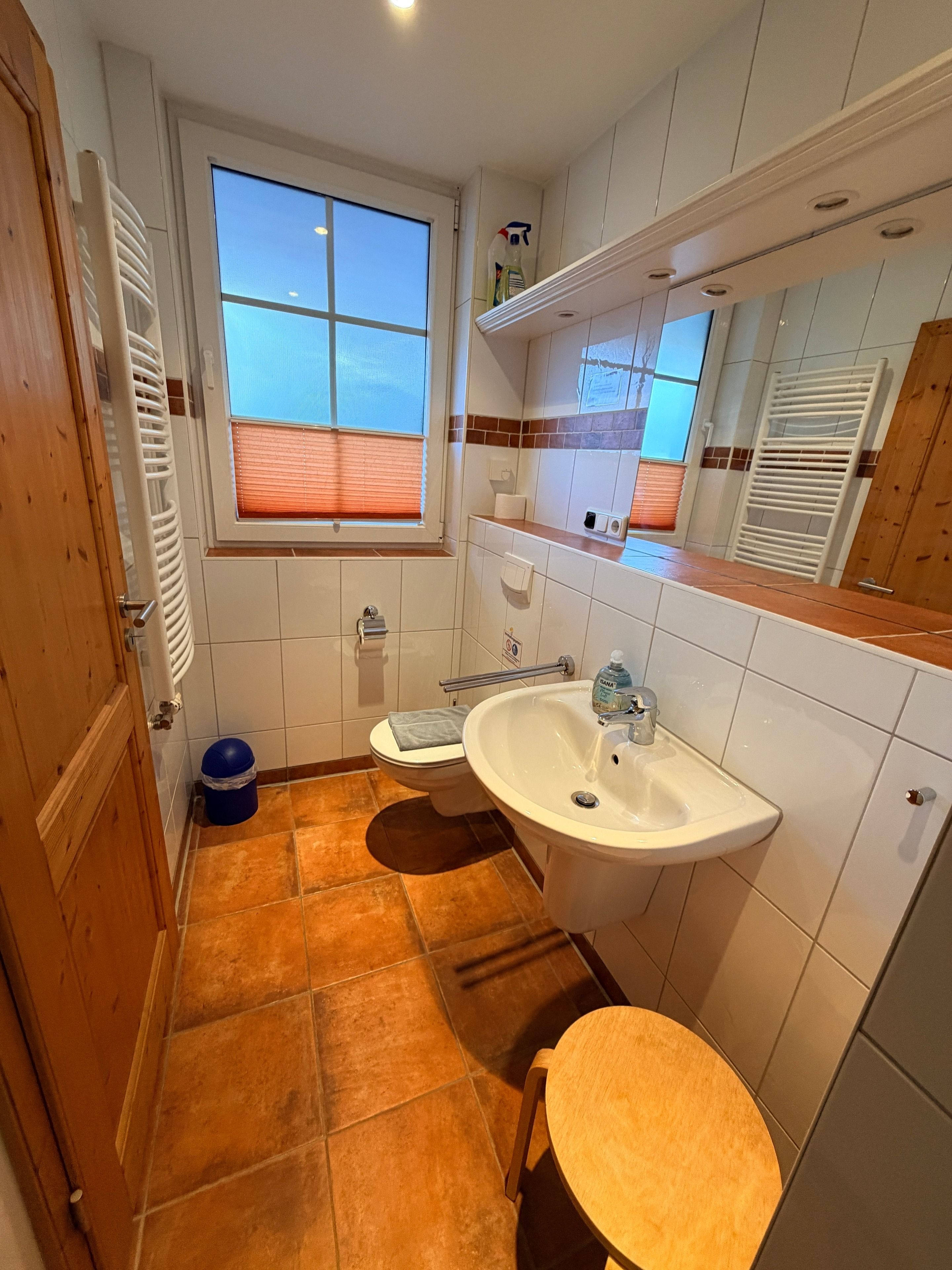 Ein PKW-Stellplatz sowie Waschmaschine und Trockner im Nebengebäude ergänzen die praktische Ausstattung.