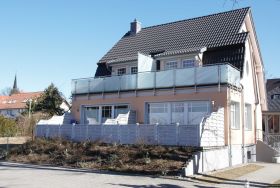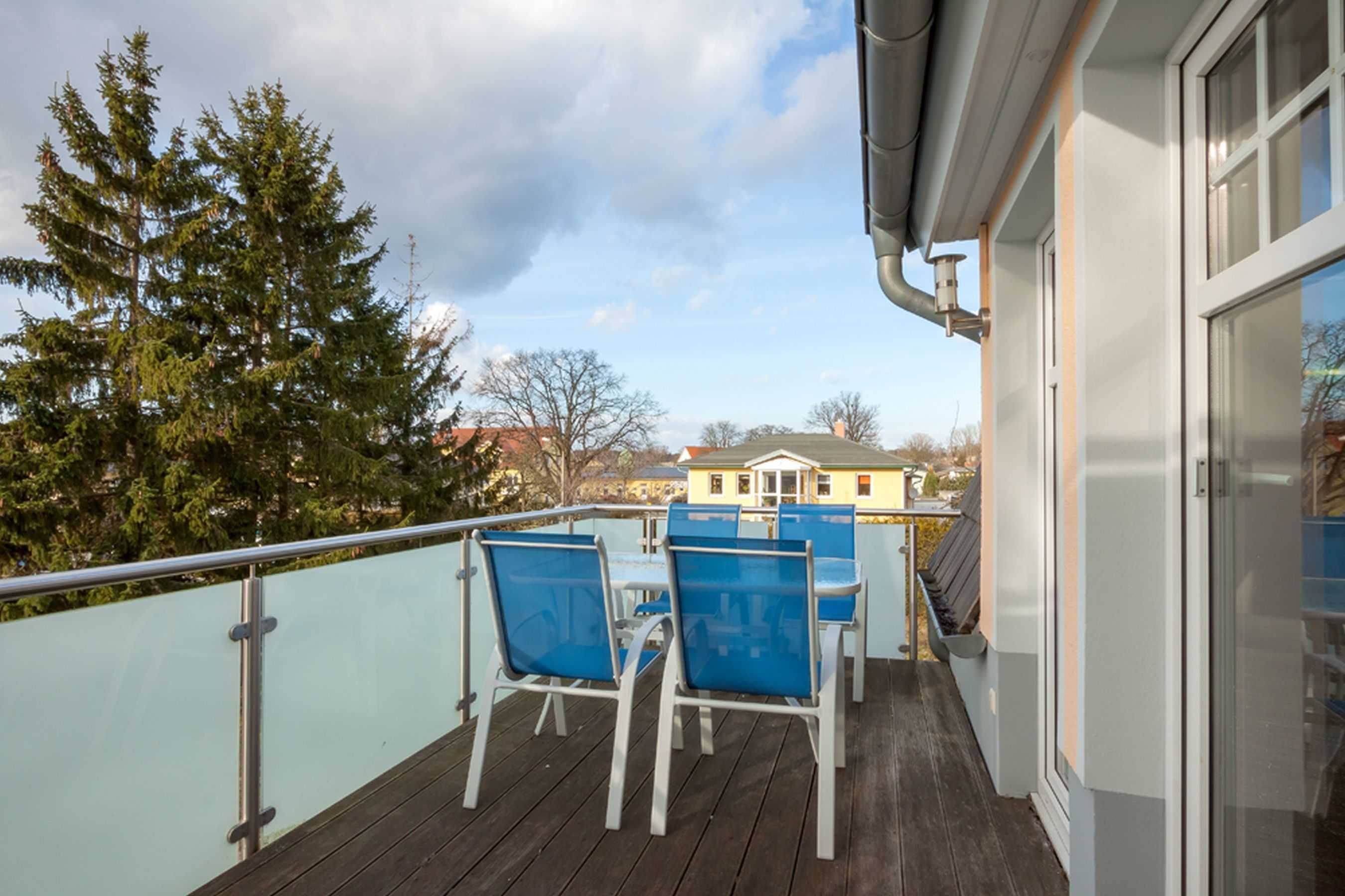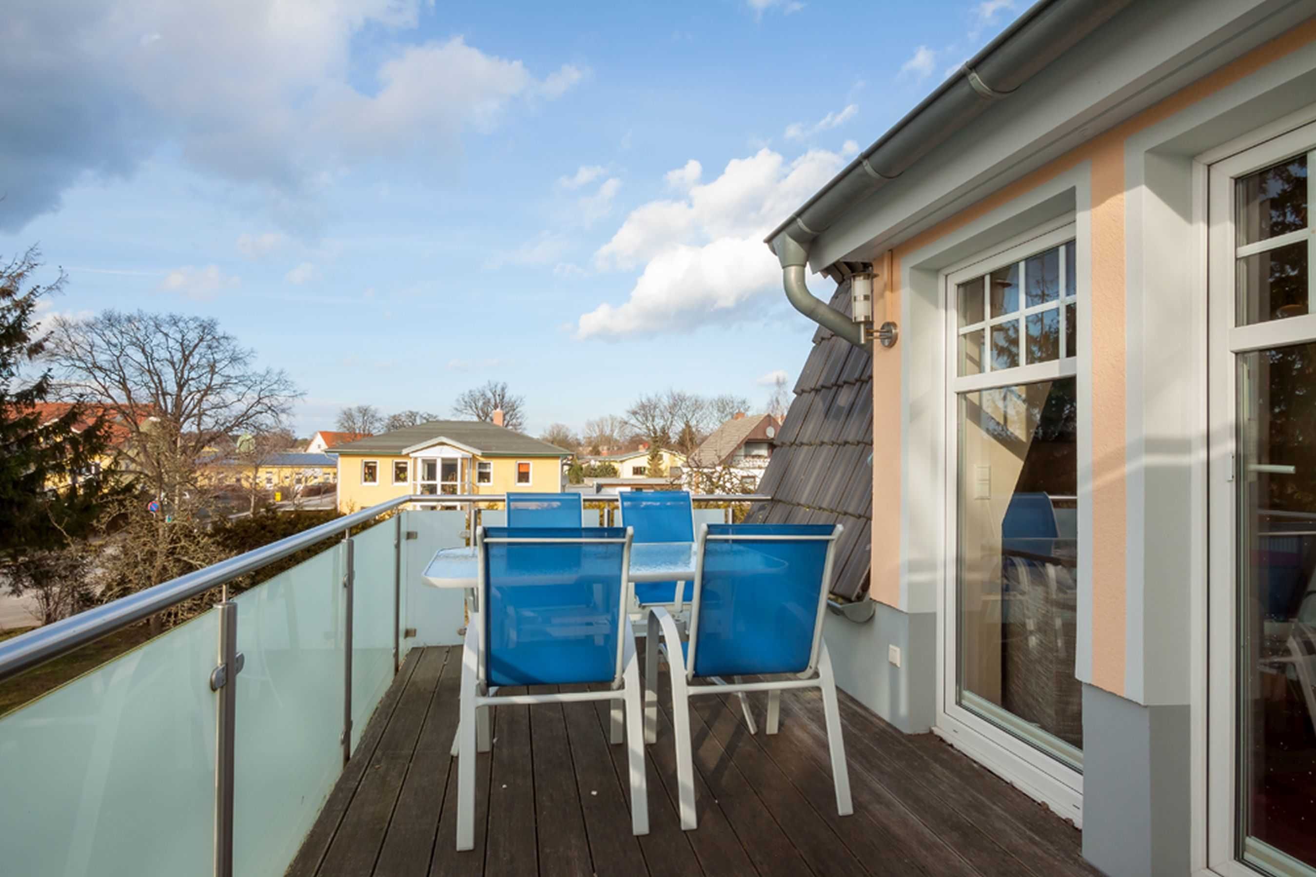 Vom Wohnzimmer aus gelangen Sie auf den geräumigen Balkon (Balkonmöbel-Kombination vorhanden), ein idealer Platz zum Relaxen, zum Frühstück bei Sonnenschein oder für ein Glas Wein am Abend.