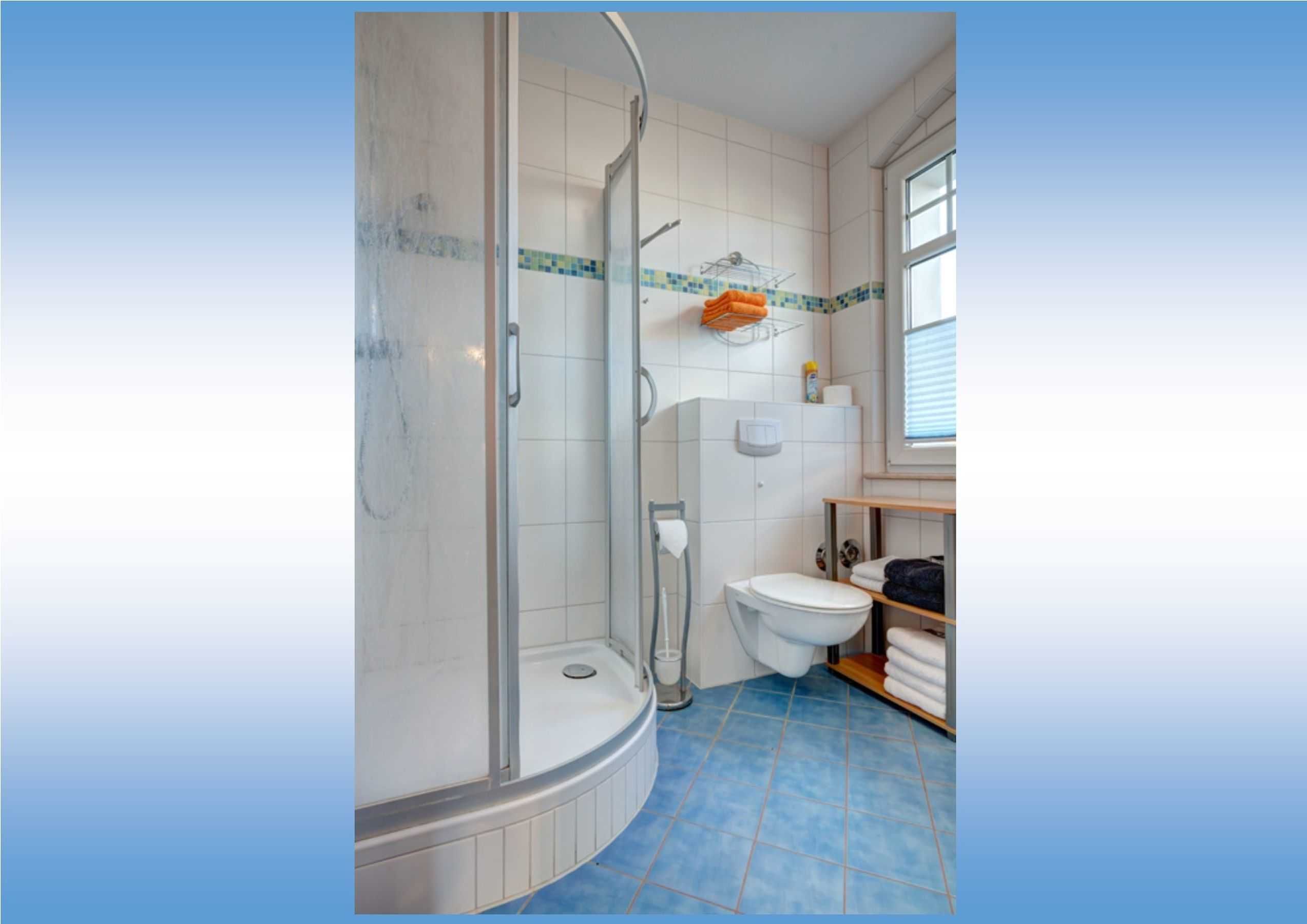 Unser Badezimmer ist komplett ausgestattet mit Dusche, WC, Waschbecken.