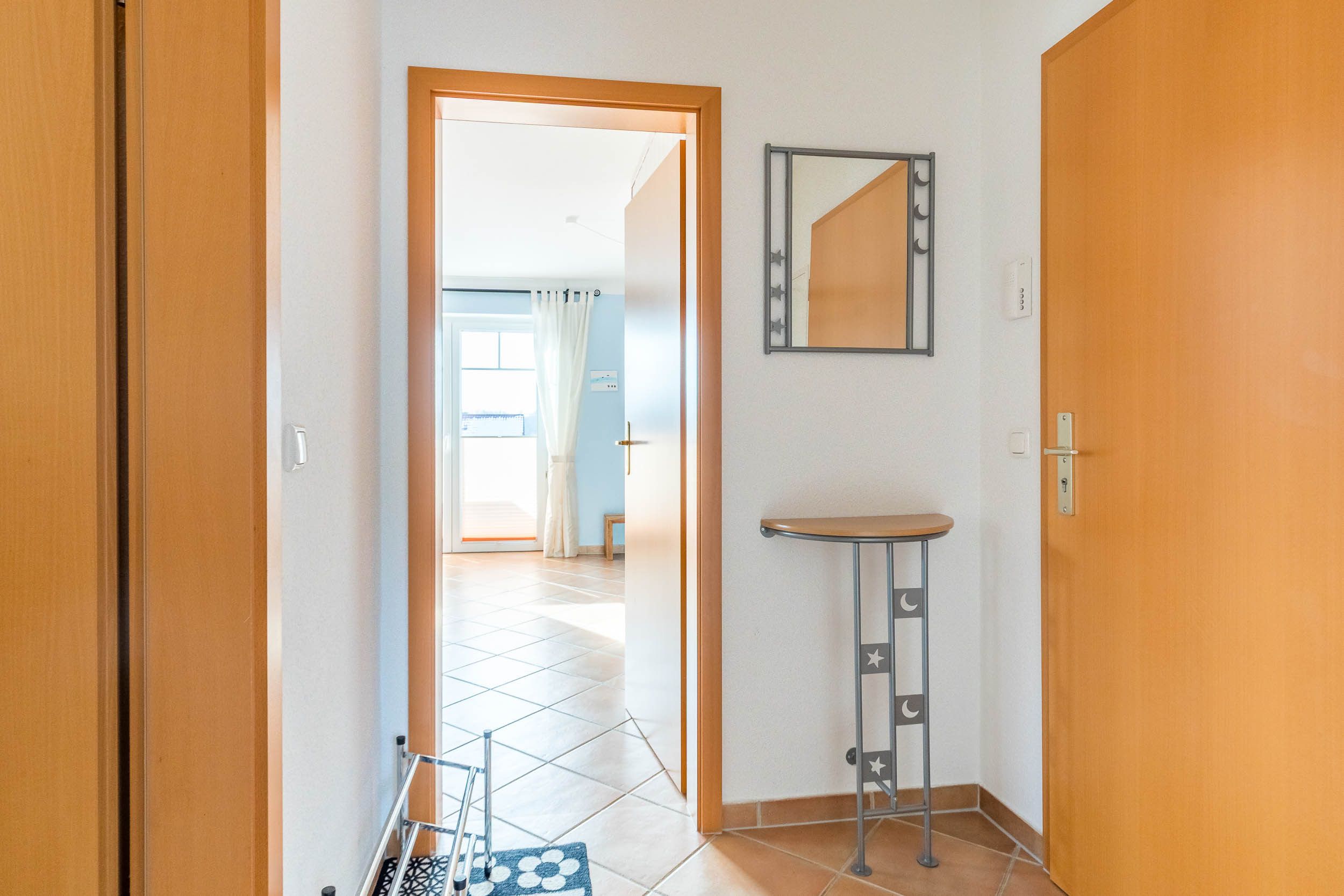 Das Tageslichtbad ist mit Dusche, WC, Föhn und Handtuchtrockner ausgestattet. Zusätzlich steht Ihnen hier eine Waschmaschine zur Verfügung.
