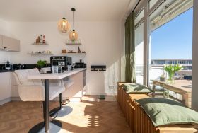 Design trifft Meer! Diese top-moderne 2-Zimmer-Wohnung im 2. OG bietet neuesten Komfort für bis zu 2 Personen und einen Hund.