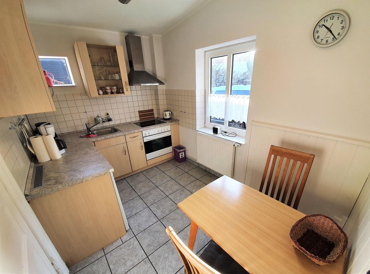 Für Selbstversorger steht Ihnen eine geschlossene Küche mit Esstisch zur Verfügung. Sie ist mit einem 4-Platten-Herd, Backofen, Mikrowelle, Kühlschrank mit Gefrierfach (Fach im Kühlschrank), Spülmaschine, Kaffeemaschine und Wasserkocher ausgestattet. Geschirr, Besteck und Küchenutensilien sind vorhanden, sodass Sie Mahlzeiten unkompliziert planen und zubereiten können.