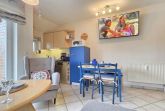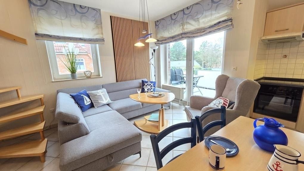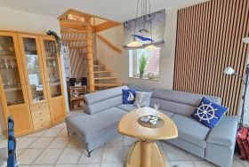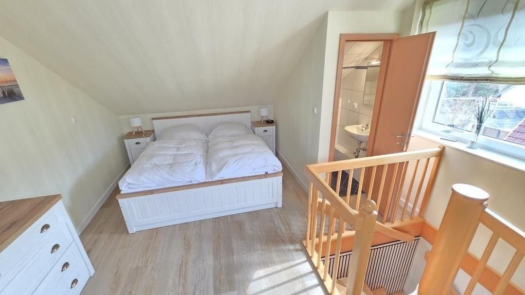 Diese liebevoll eingerichtete Ferienwohnung in Cuxhaven-Sahlenburg erstreckt sich über ca. 50 m² und bietet eine durchdachte Raumaufteilung auf zwei Ebenen. Im unteren Bereich befindet sich ein Schlafzimmer mit einem französischen Bett (1,40 x 2,00 m) sowie ein heller Wohnraum mit einer gut ausgestatteten Küchenzeile, inklusive Geschirrspüler, Mikrowelle, Backofen und Kühlschrank mit Gefrierfach. Ein komfortables Badezimmer mit Dusche und WC rundet den Bereich ab. Im offenen Obergeschoss ist ein weiteres großzügiges Doppelbett (1,80 x 2,00 m) und ein zusätzliches WC für mehr Privatsphäre verfügbar. WLAN und ein Parkplatz sind kostenlos. Hunde sind willkommen. Eine kleine Erstausstattung für den ersten Tag ist ebenfalls vorhanden. Der feine Sahlenburger Sandstrand ist nur etwa 1.000 Meter entfernt.